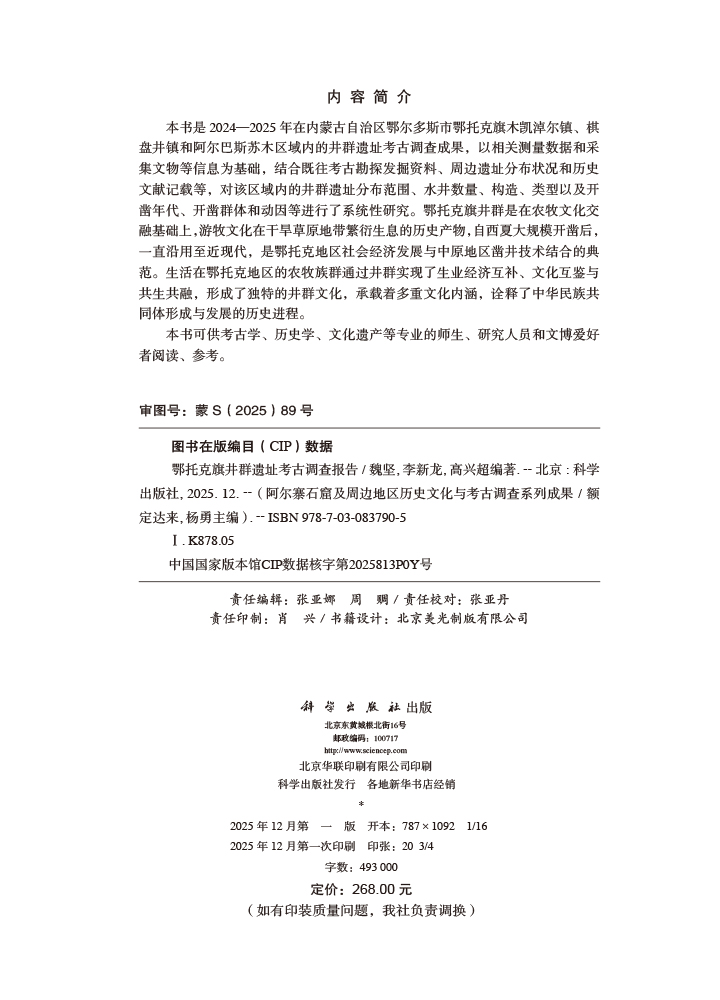 书名:鄂托克旗井群遗址考古调查报告