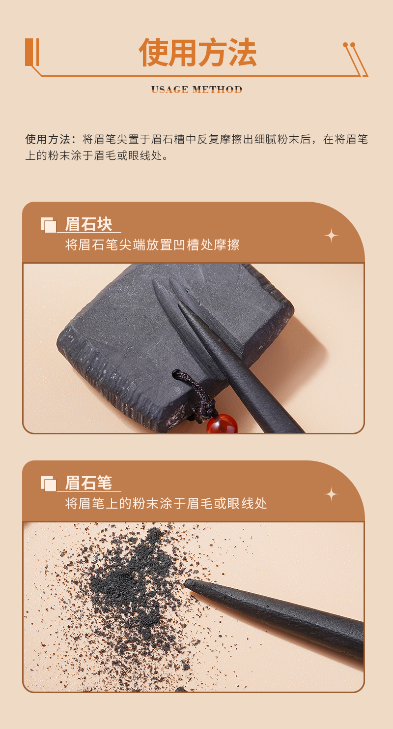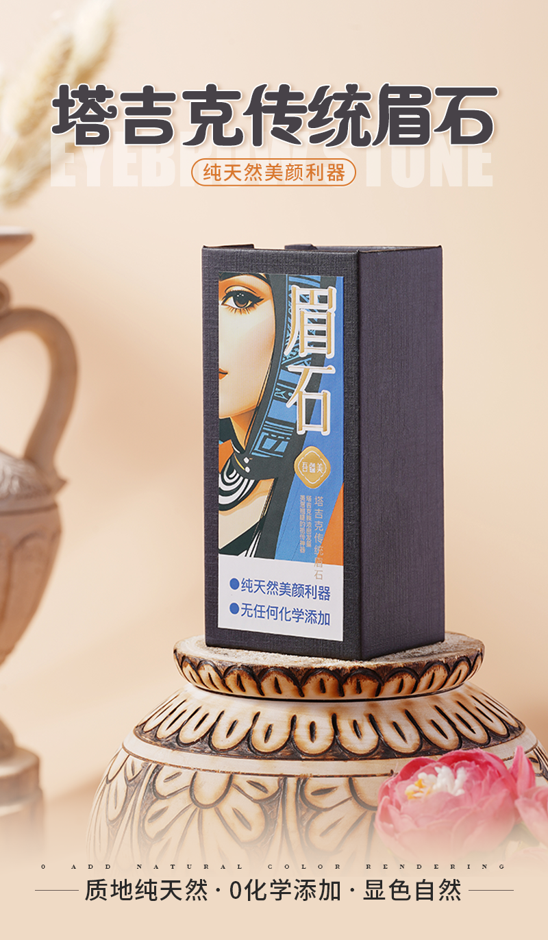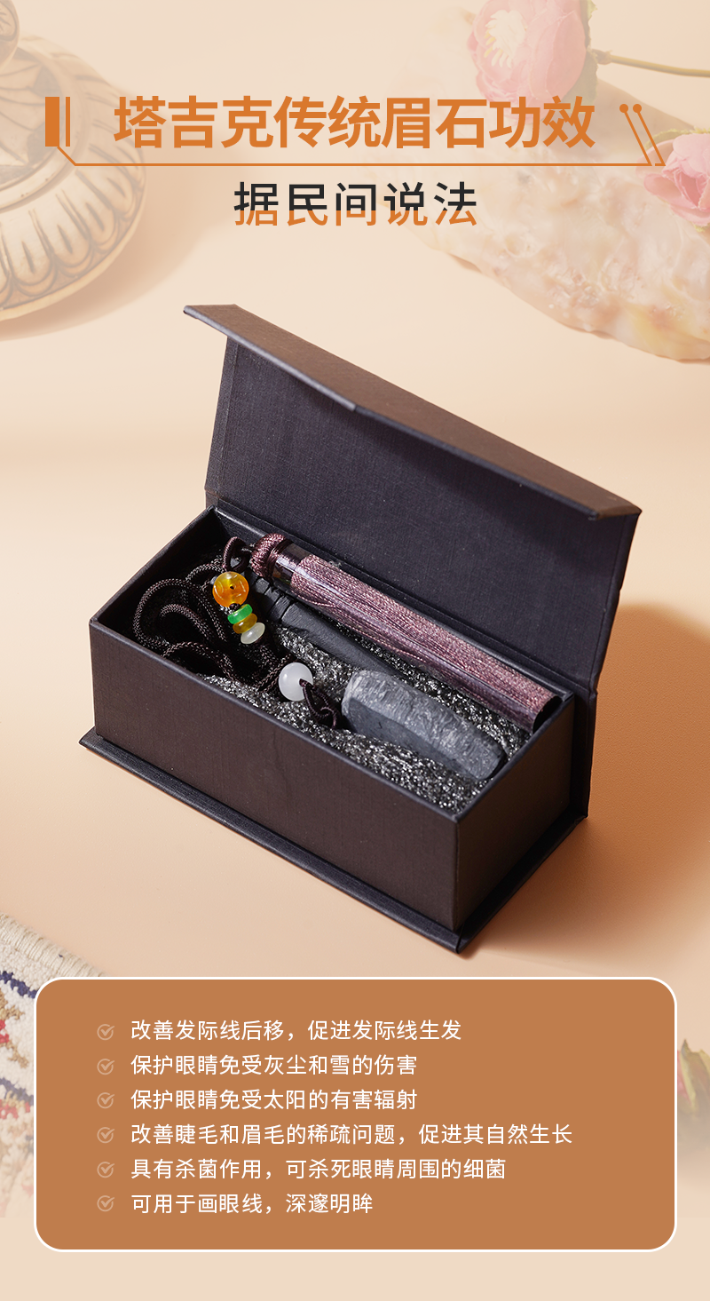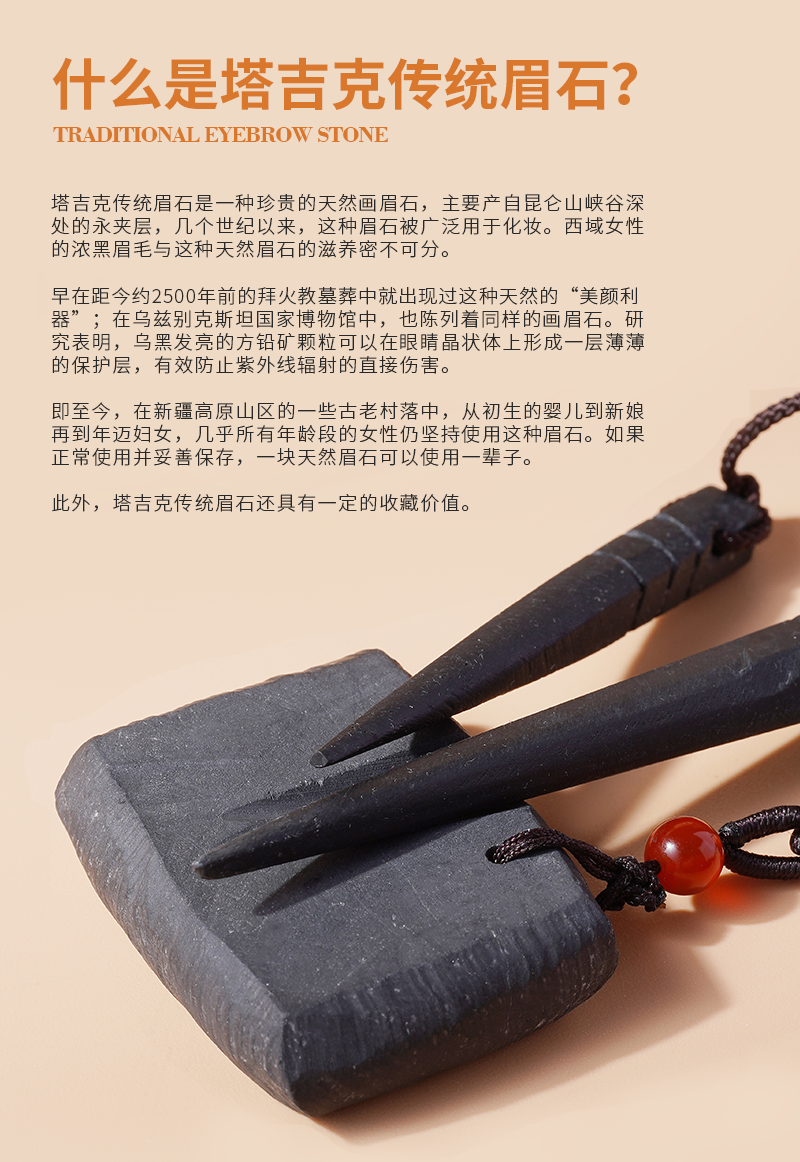 塔吉克传统眉石 【眉石槽一块+尖头眉笔两支 】天然美颜利器,