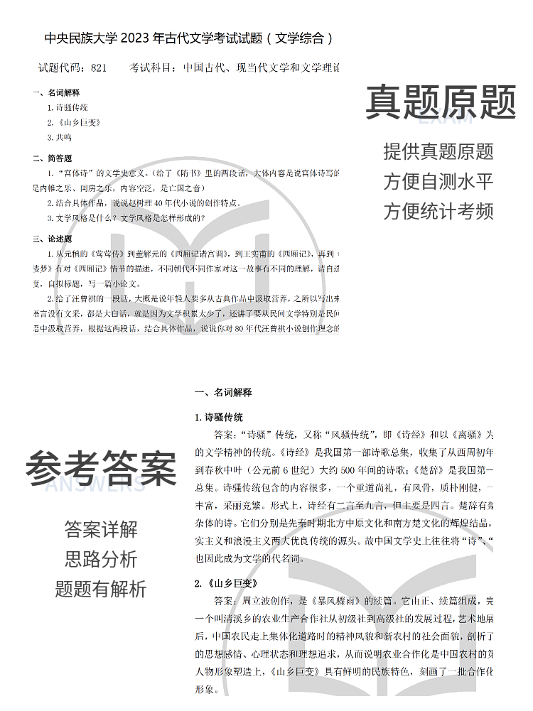 27版中央民族大学古代文学考研历年真题及答案详解09-26年