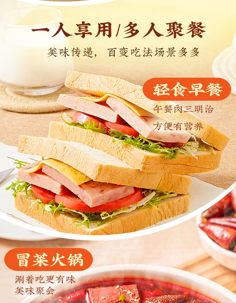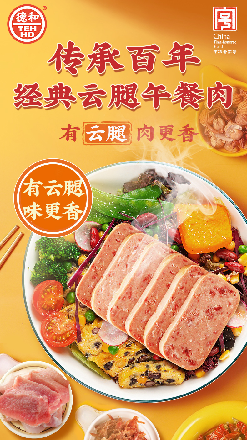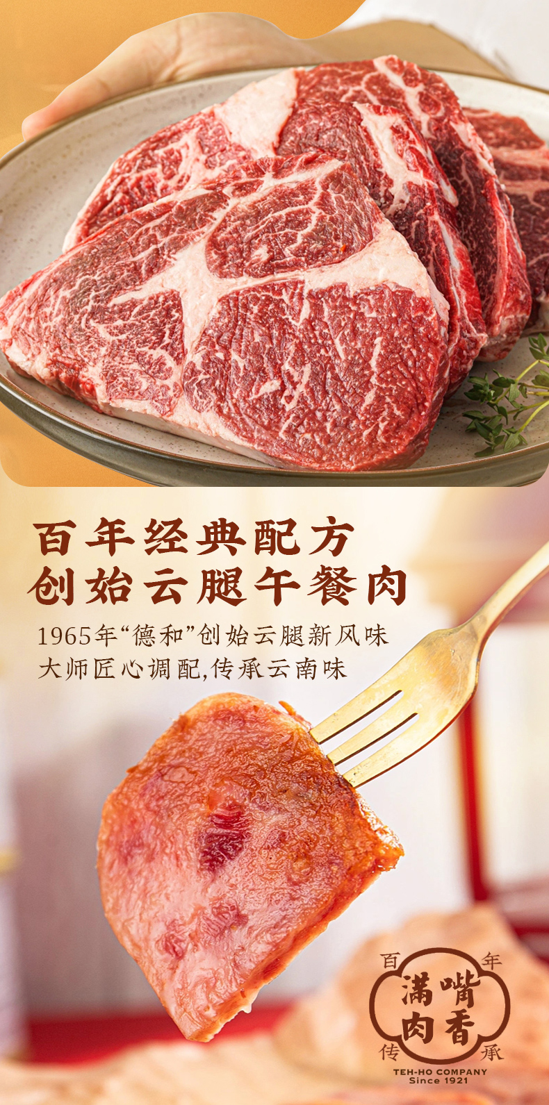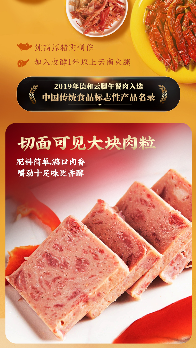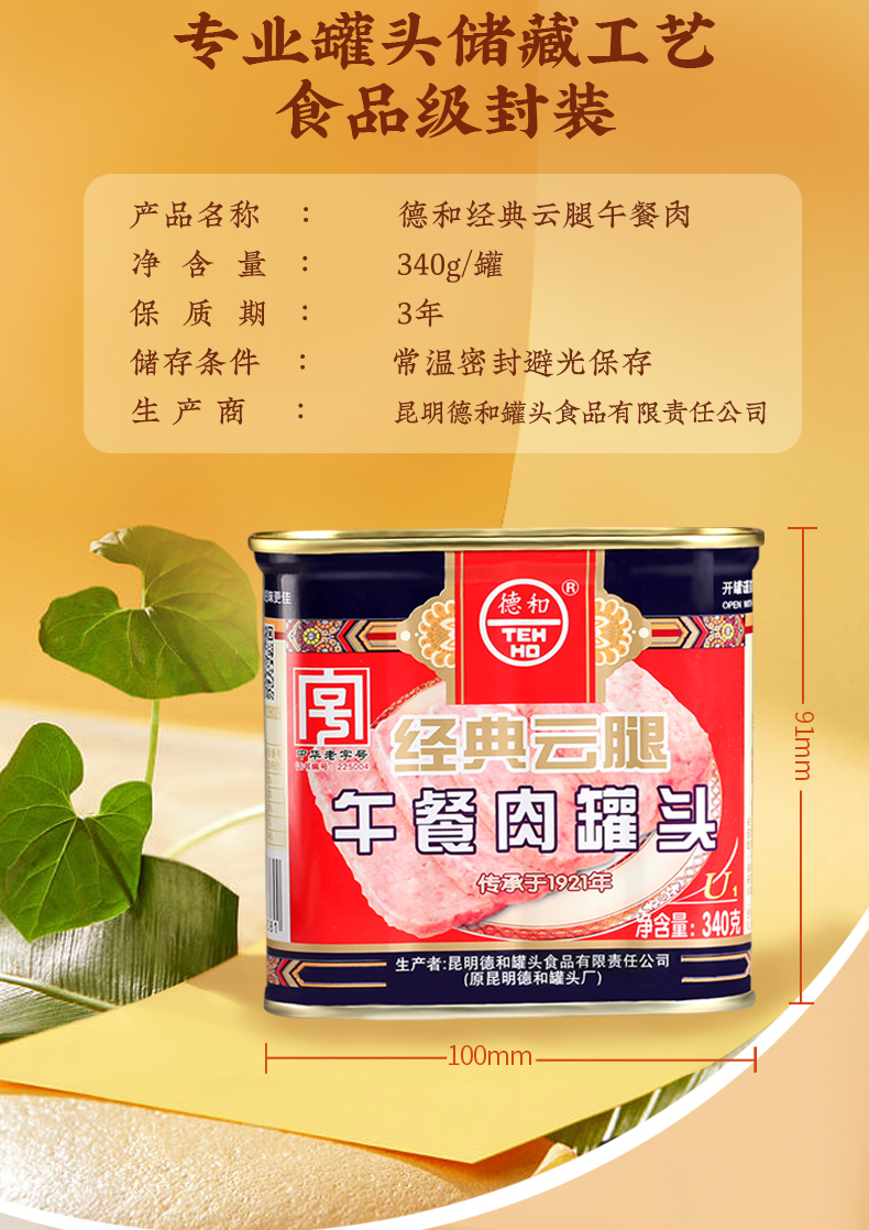 【超值囤货】德和经典云腿午餐肉340g*3罐 #午餐肉