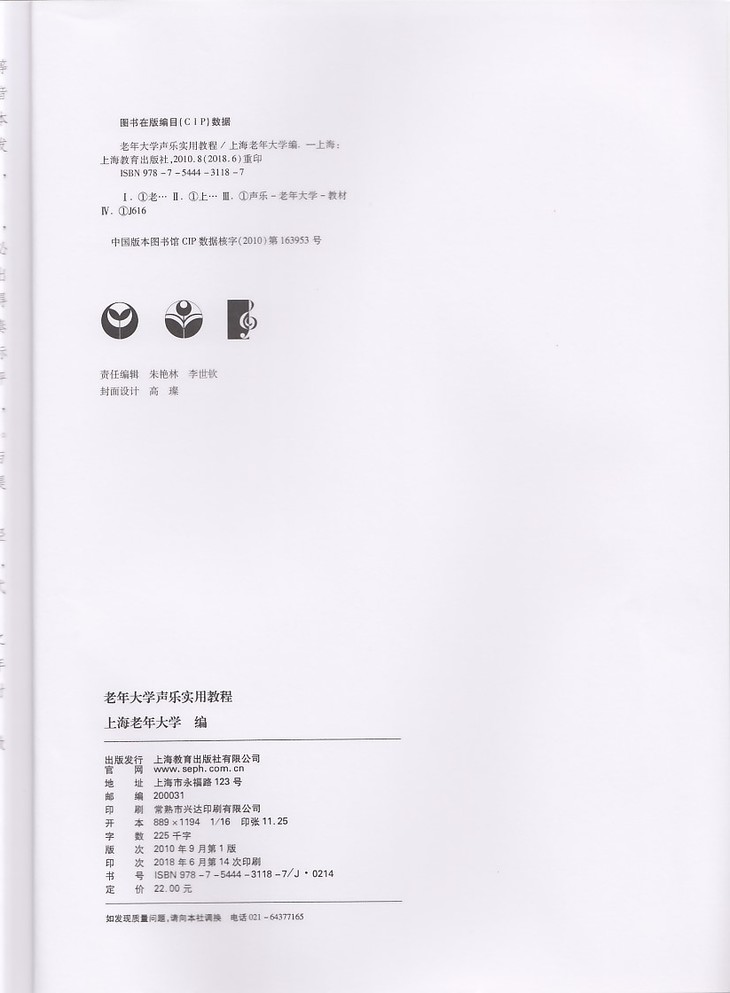 《老年大学声乐实用教程》声乐是一门在人间传播美的艺术,也是向人们呈现爱的艺术。正是因为有了这样的真情真爱,上海老年大学的声乐老师们集体编写了这本集子,奉献给大家,请大家欣赏品味,也供大家欢乐共享。