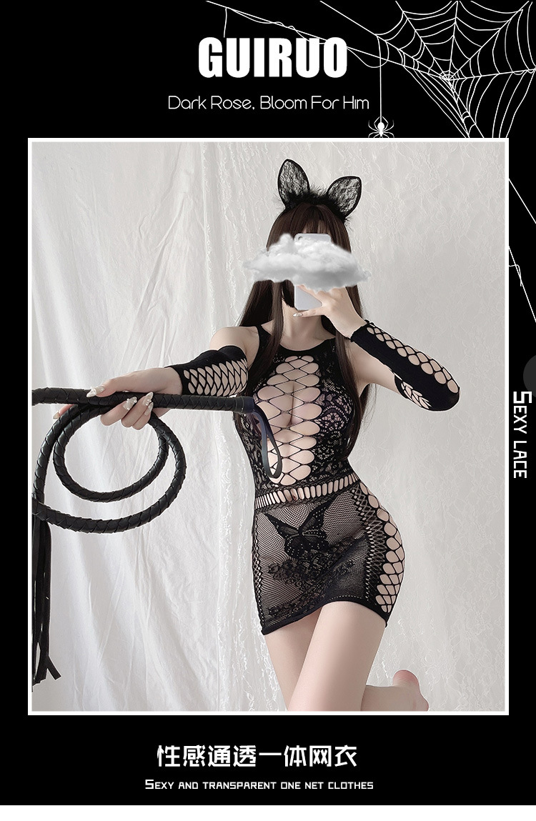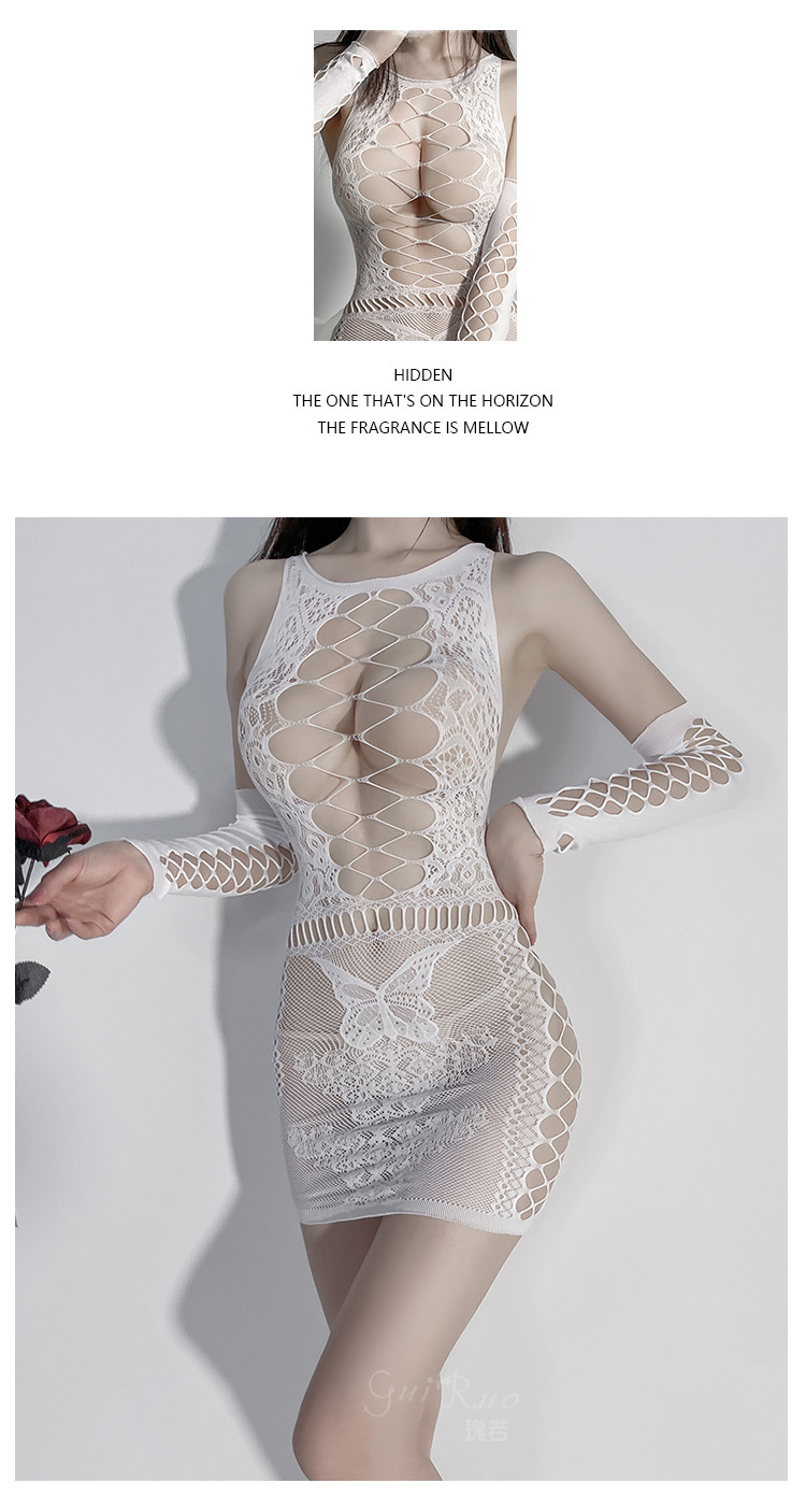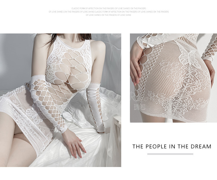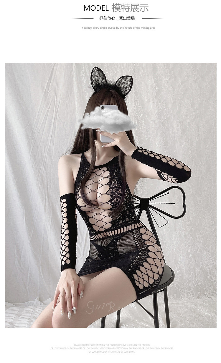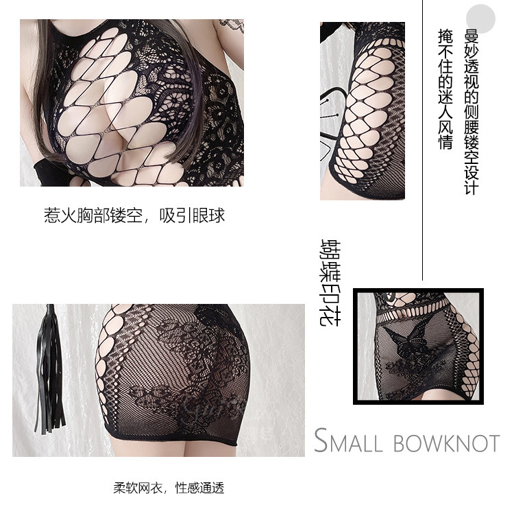瑰若情趣内衣性感连体网衣紧身镂空包臀短裙制服套装8068