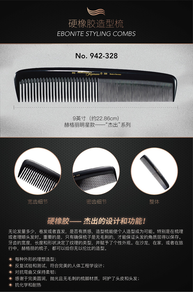 No. 942-328·9英寸 赫格丽杰出系列工具梳