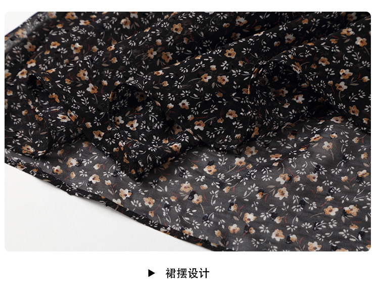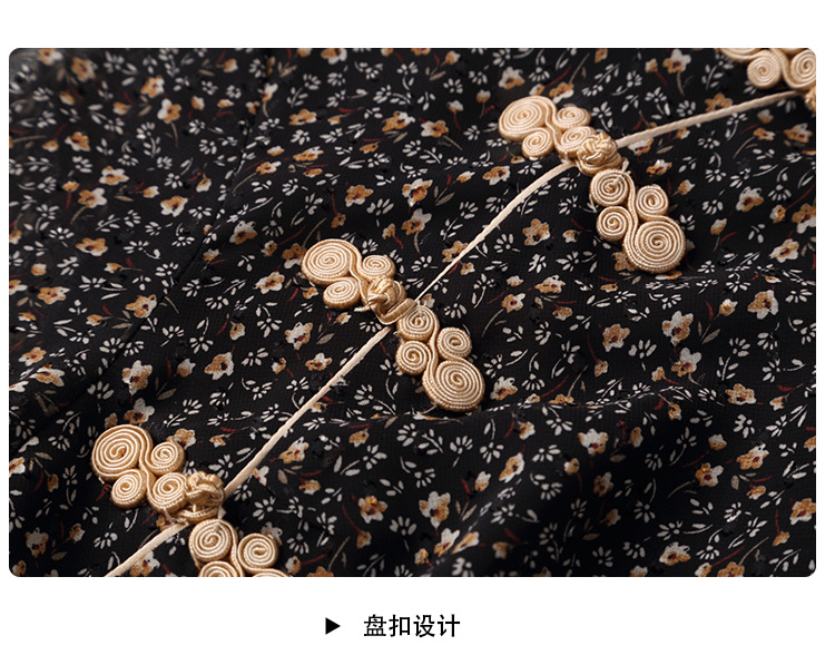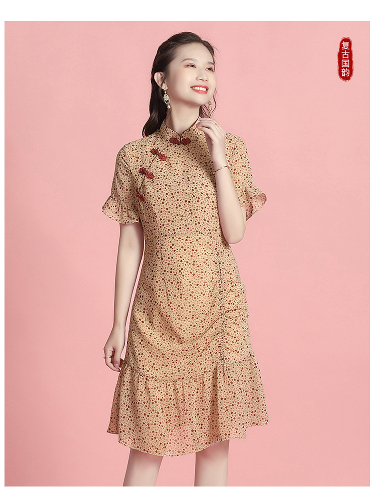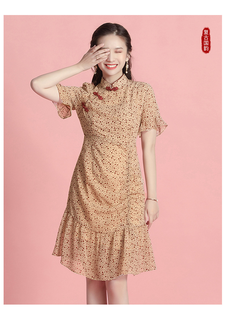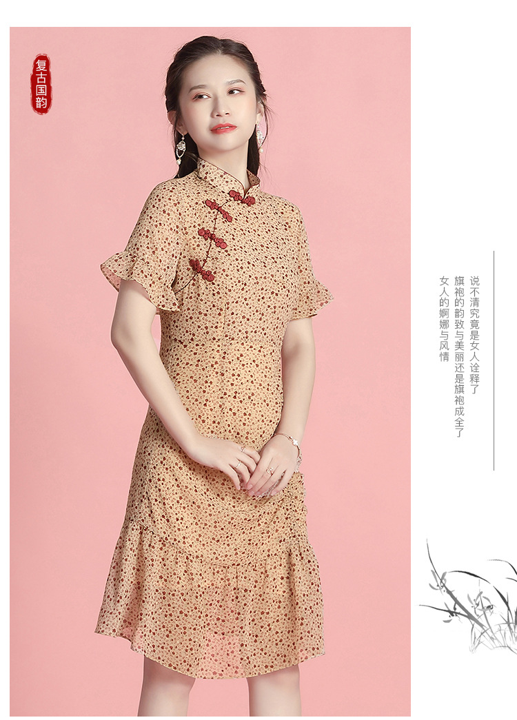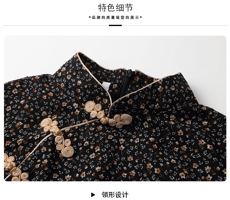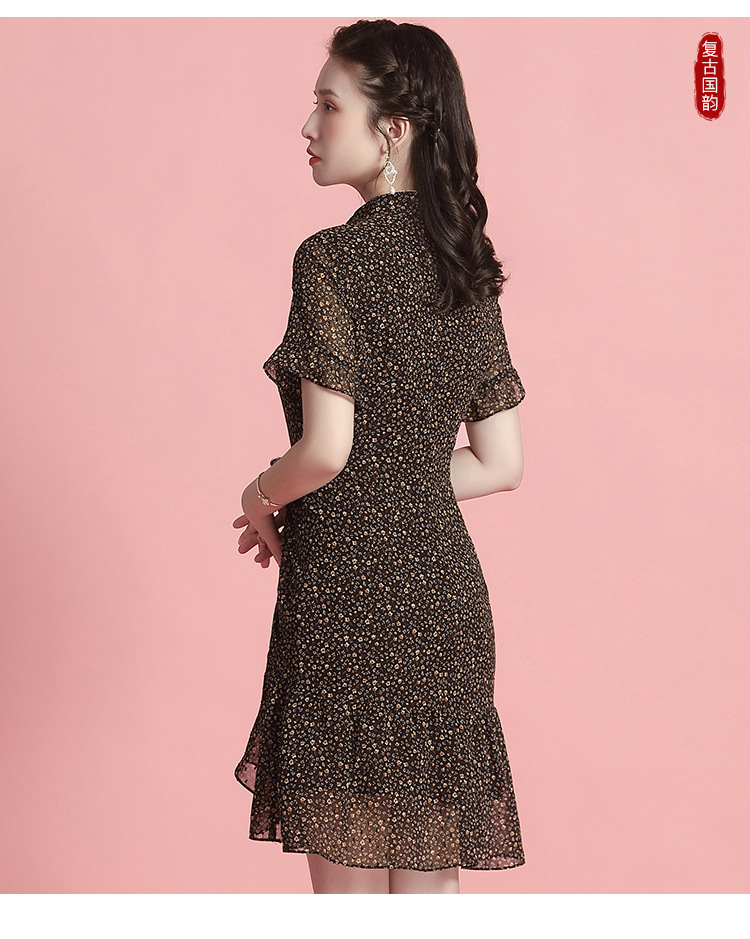 上海旗袍厂AYK-QF-210177雪纺小碎花改良旗袍立领时尚连衣裙不规则裙摆修身旗袍夏季女装