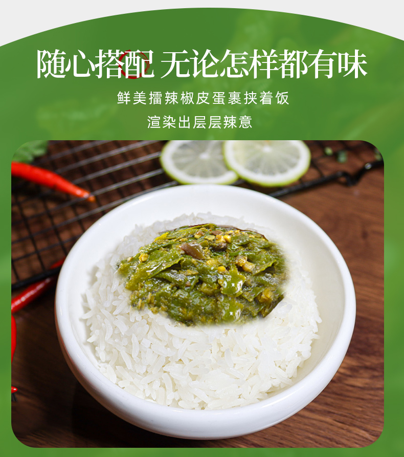 擂辣椒皮蛋 皮蛋与鲜椒清香融合,香辣油润,开胃又舒爽