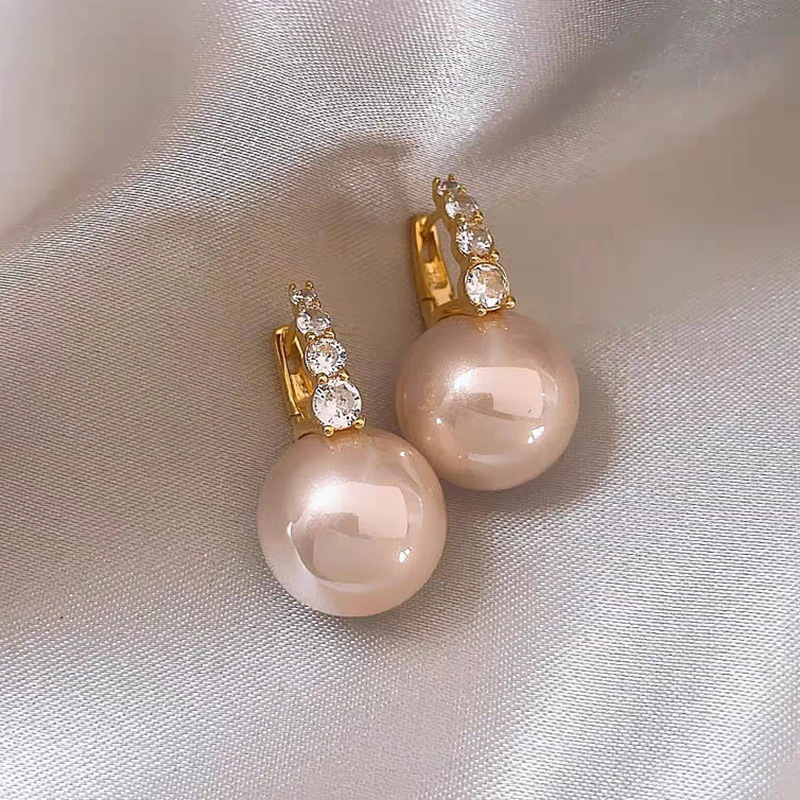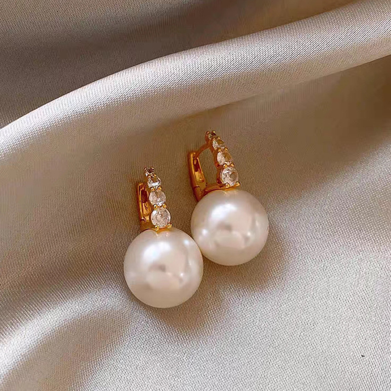 JU-C00310新款简约锆石灰色珍珠耳扣耳环女小众设计感秋冬百搭耳钉耳饰