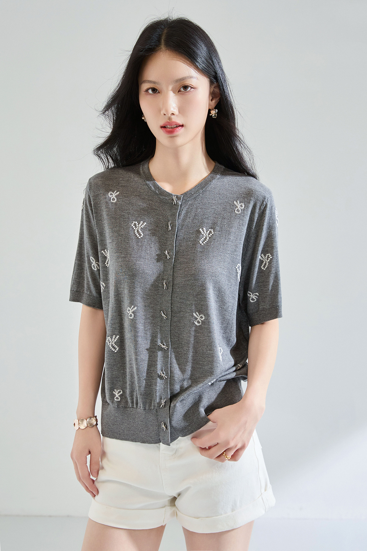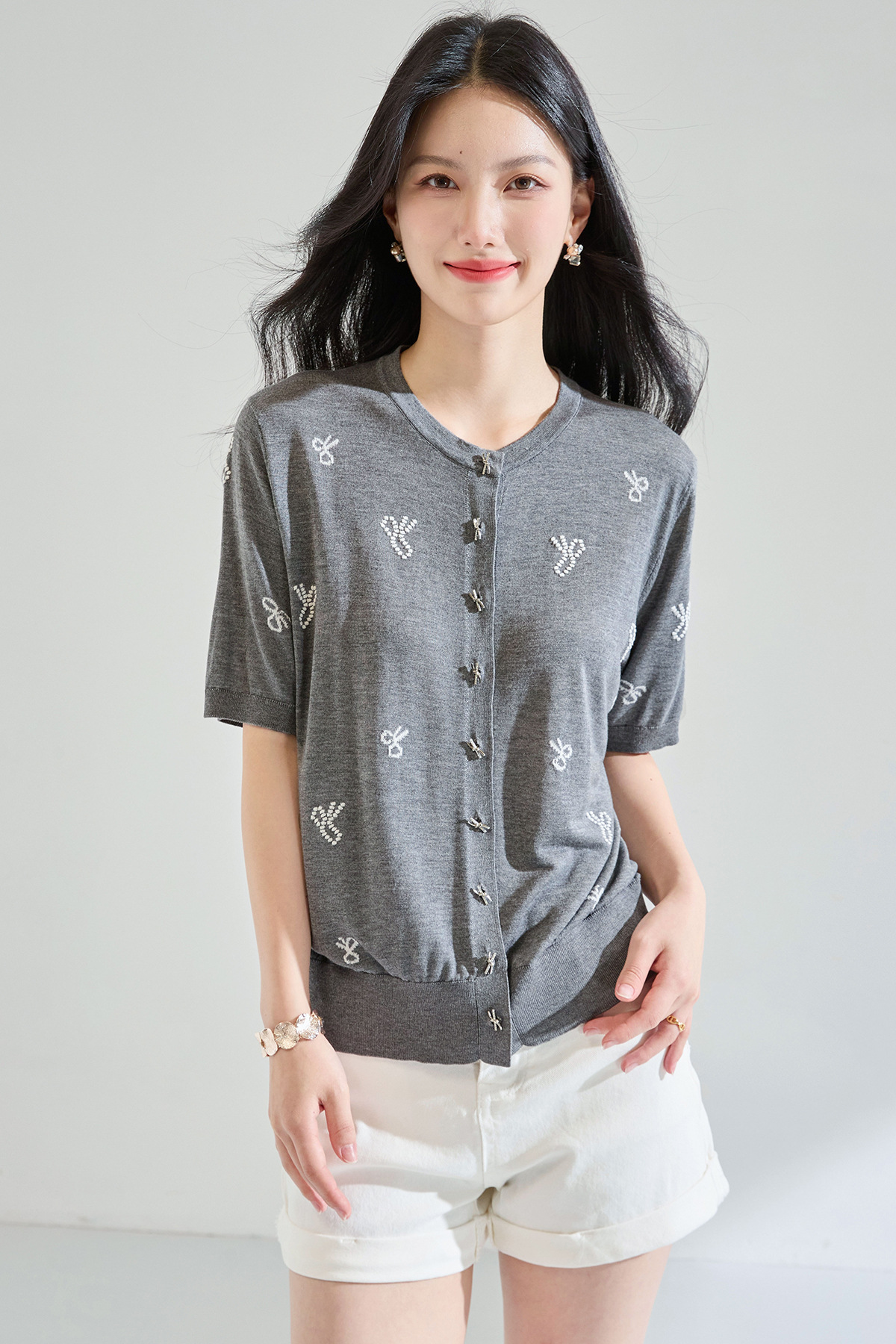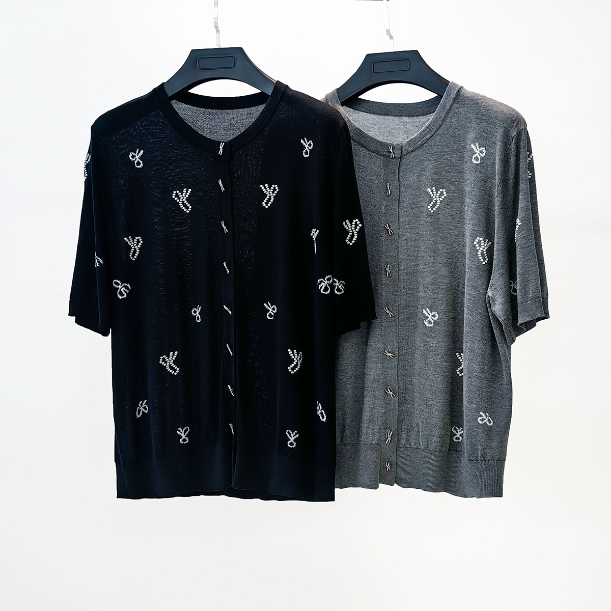 「高货sh」全新升级【铂金会员238/天猫319/差价81】(51231)洛诗琳夏季精致蝴蝶绣花天丝上衣2025夏季圆领针织开衫