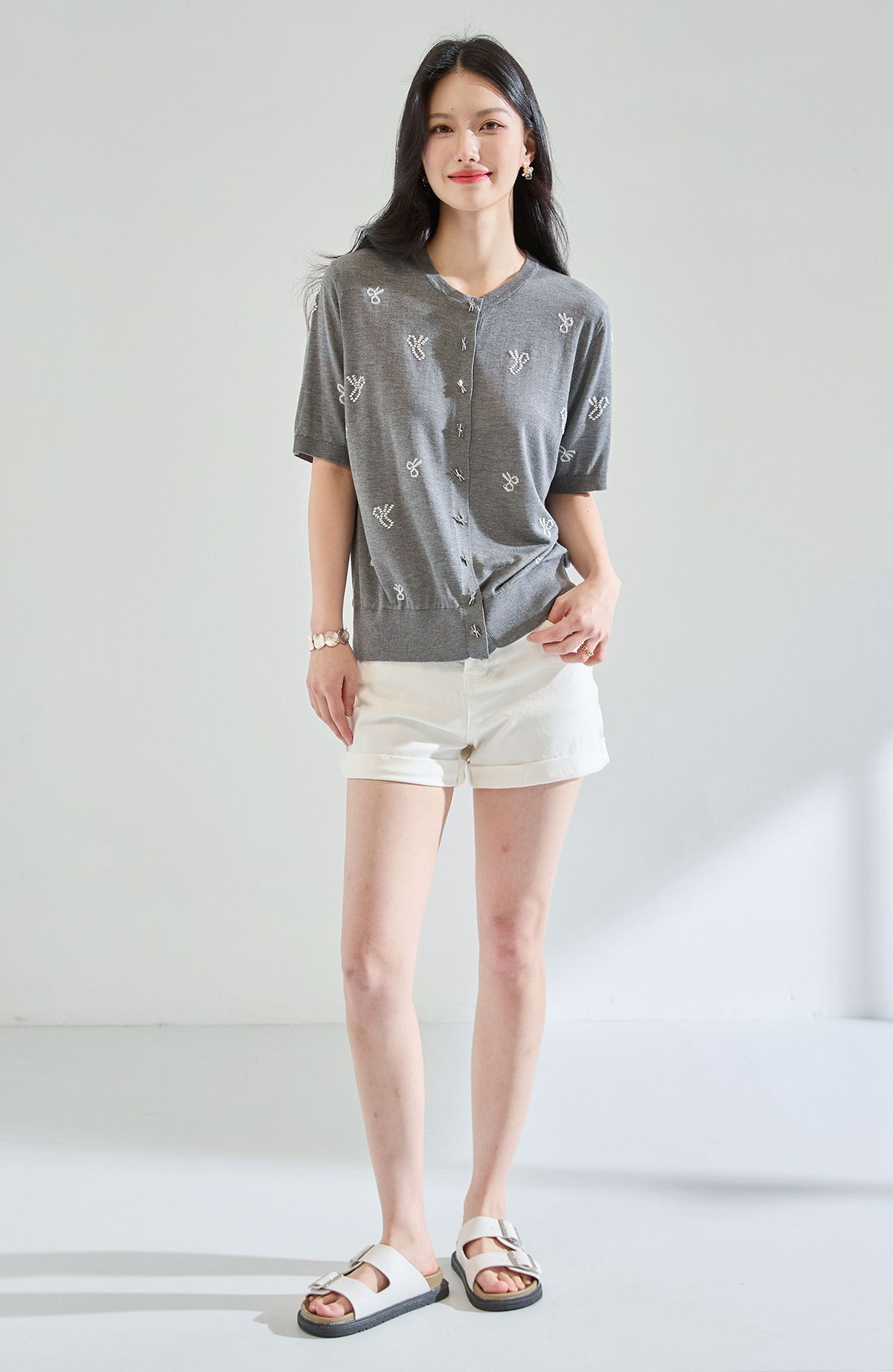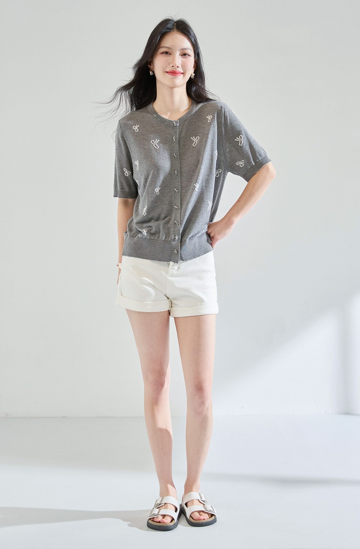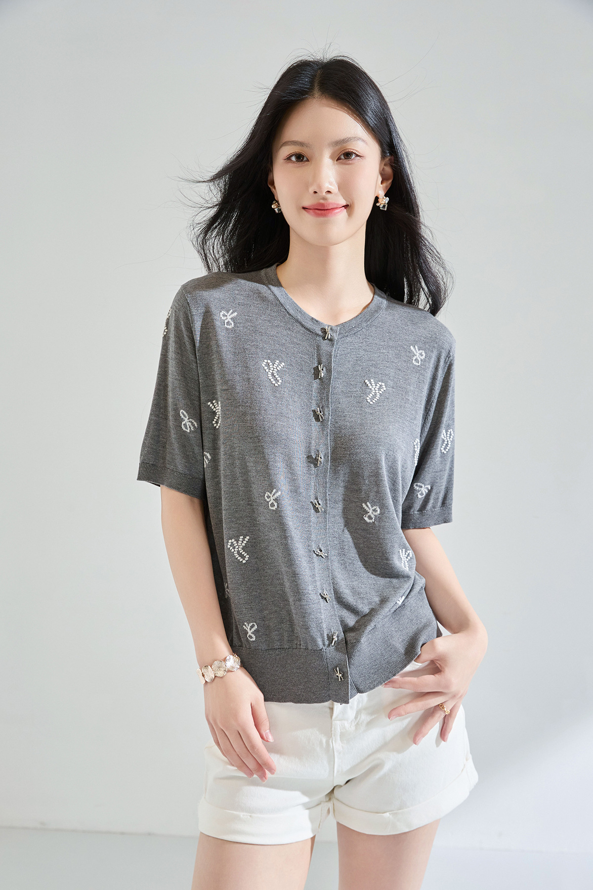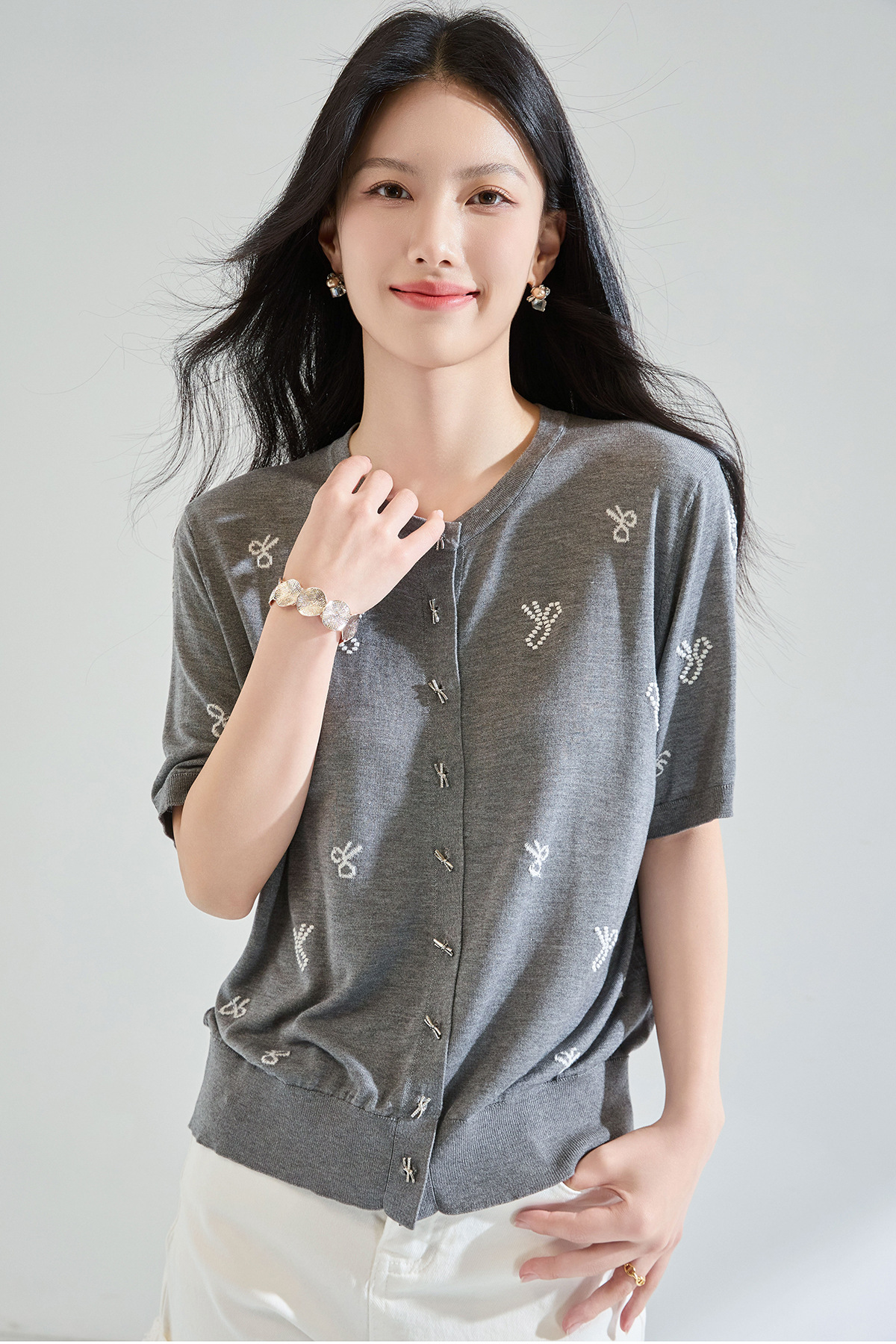 「高货sh」全新升级【铂金会员238/天猫319/差价81】(51231)洛诗琳夏季精致蝴蝶绣花天丝上衣2025夏季圆领针织开衫