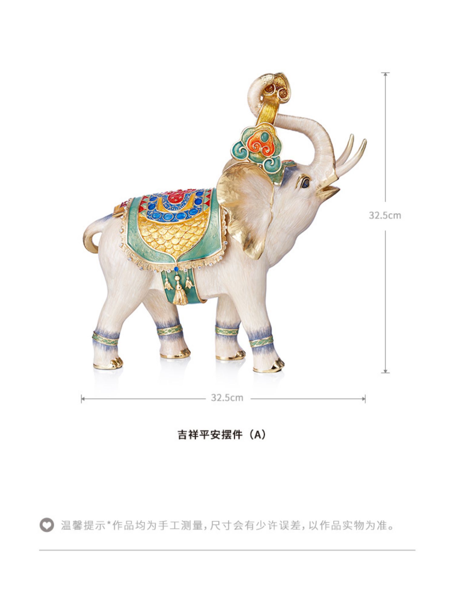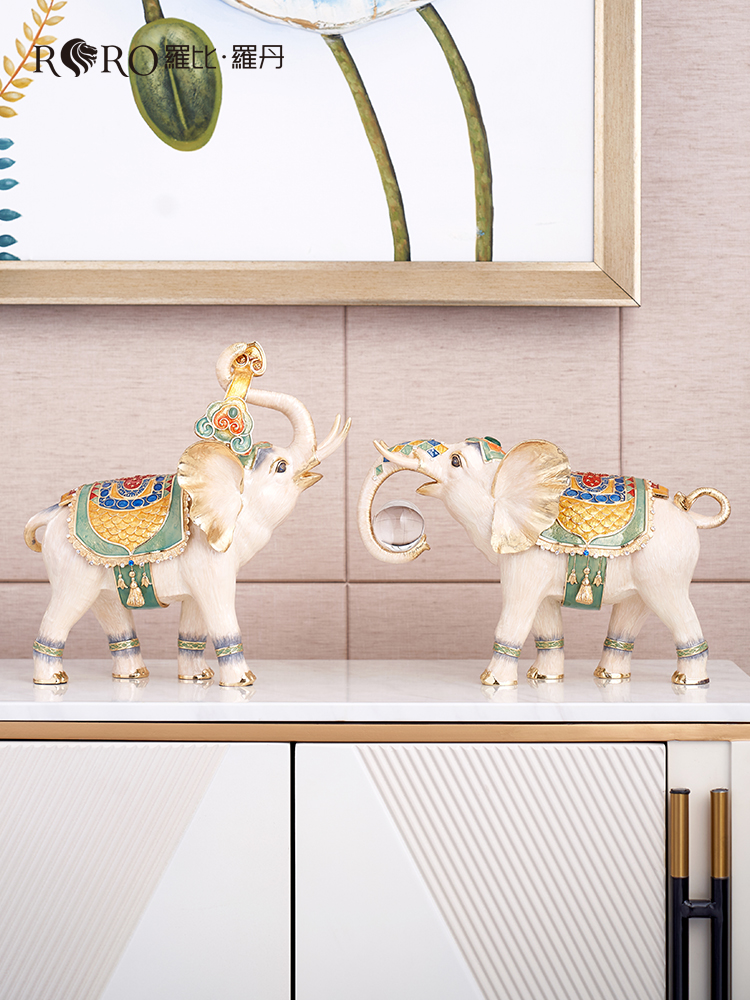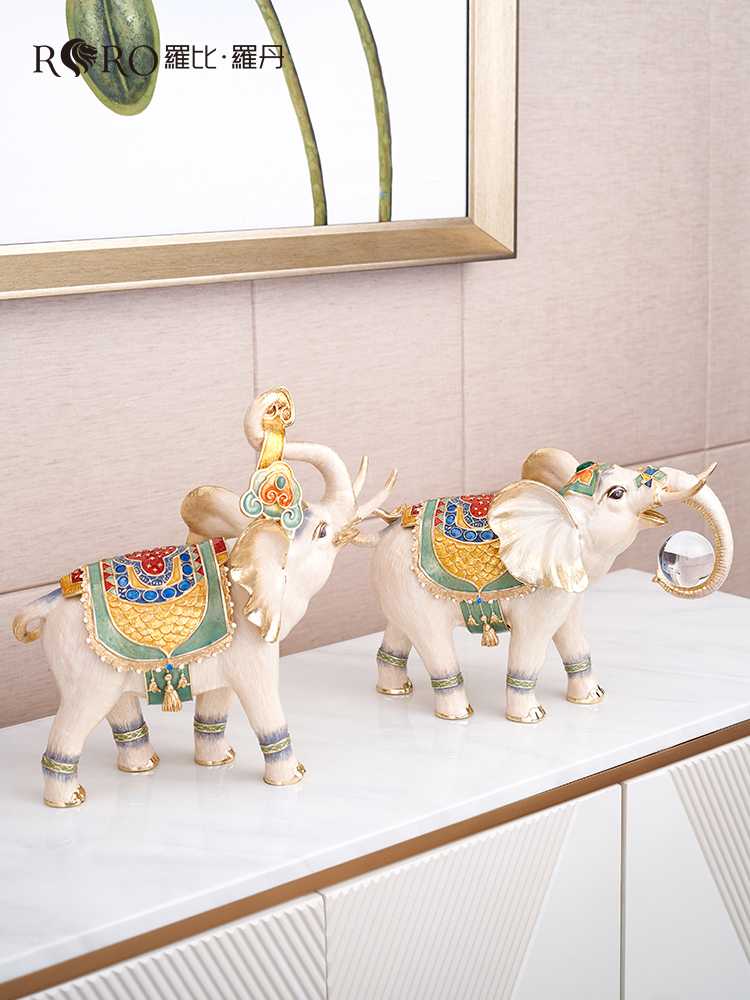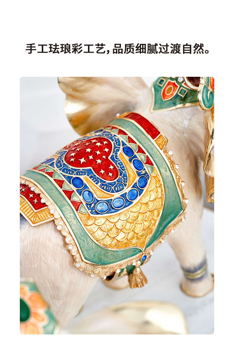 【彼达思】罗比罗丹 吉祥如意珐琅彩工艺大象摆件家居客厅玄关招财一对装饰品开业礼品