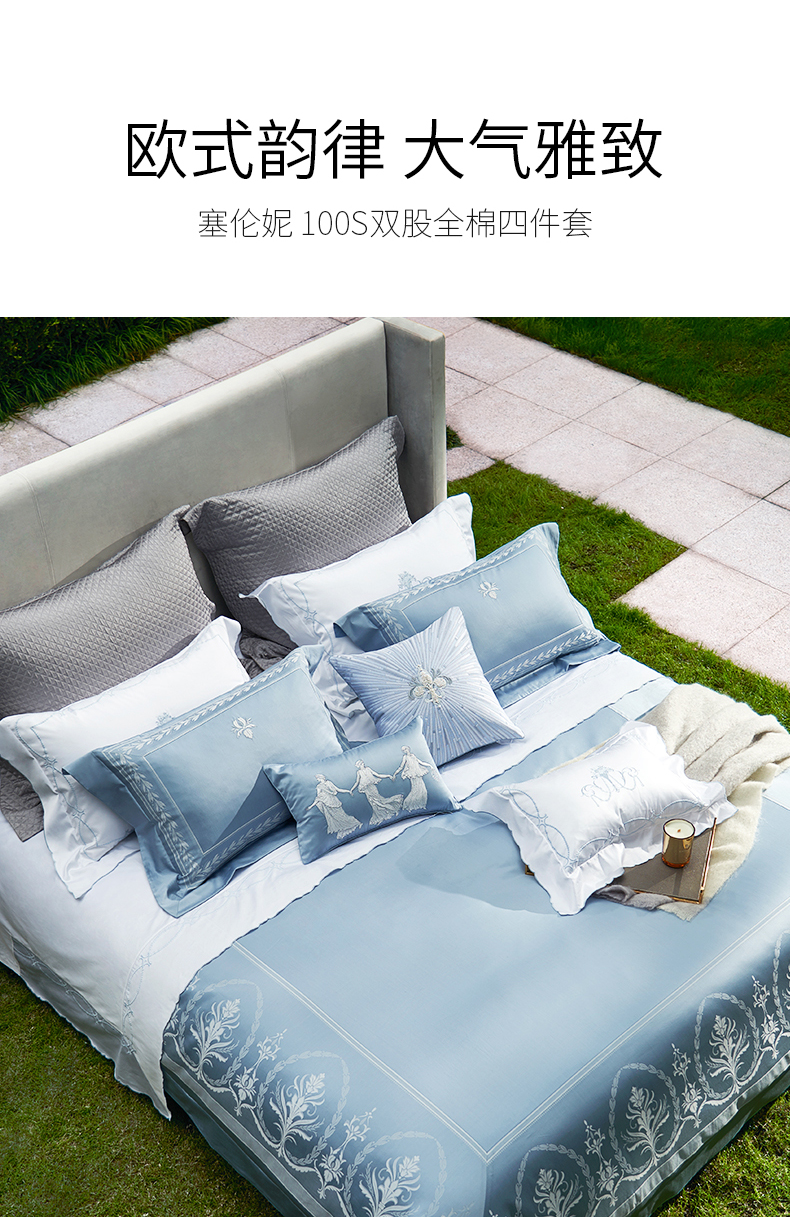 【ROYALCOVER】罗卡芙欧式刺绣100S双股贡缎套件新疆棉四件套 塞伦妮