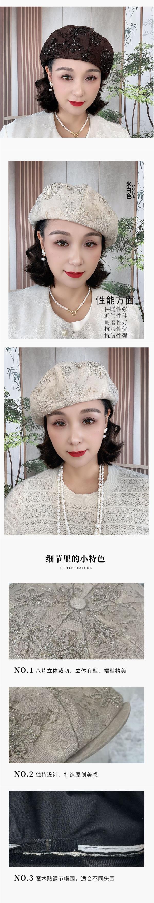LM02853822642秋冬新款蕾丝前进帽立体刺绣时尚显脸小遮白发贝雷帽百搭帽