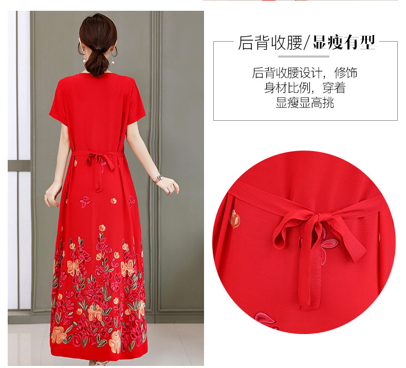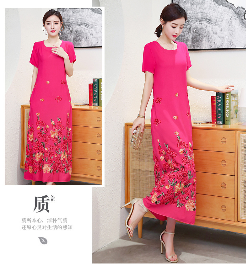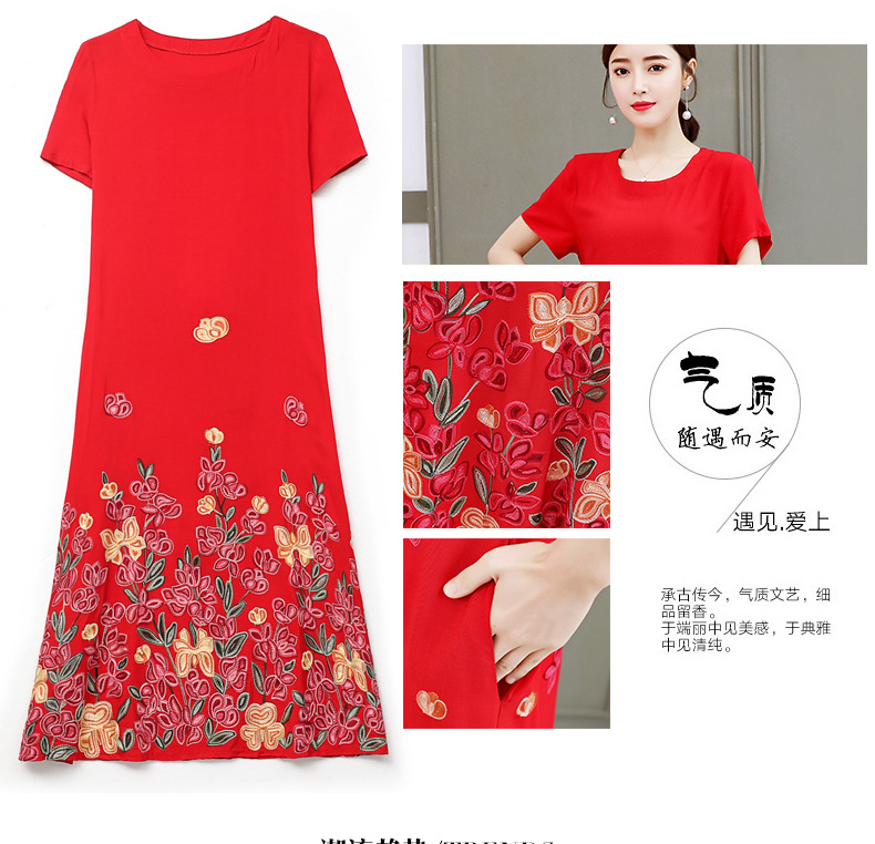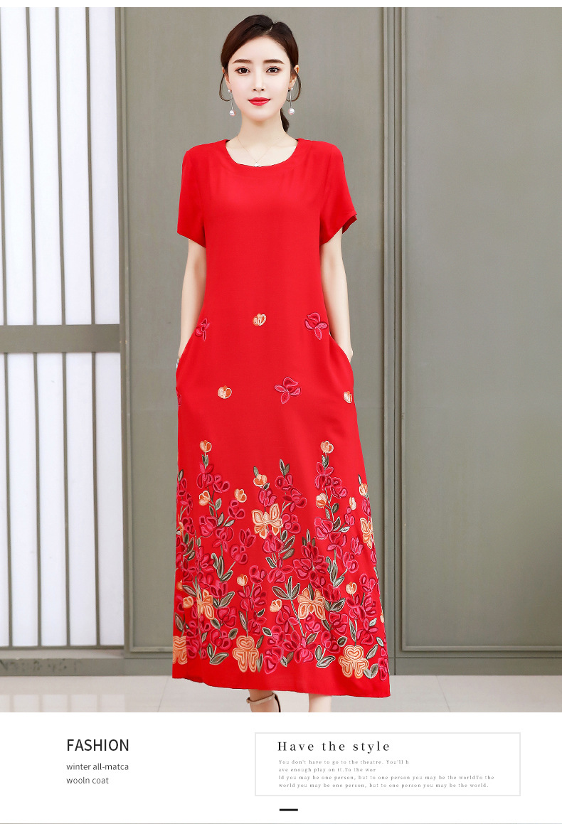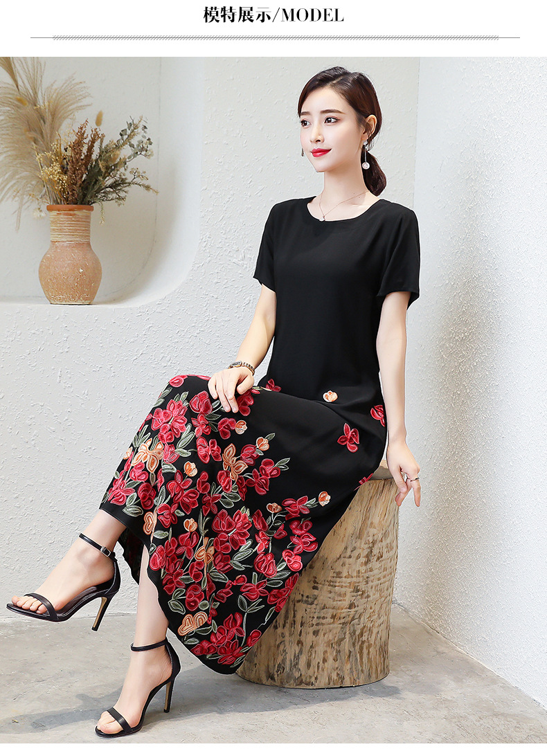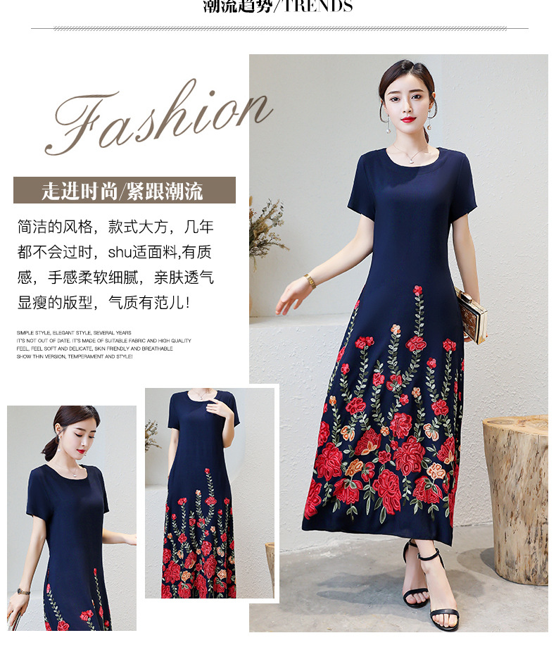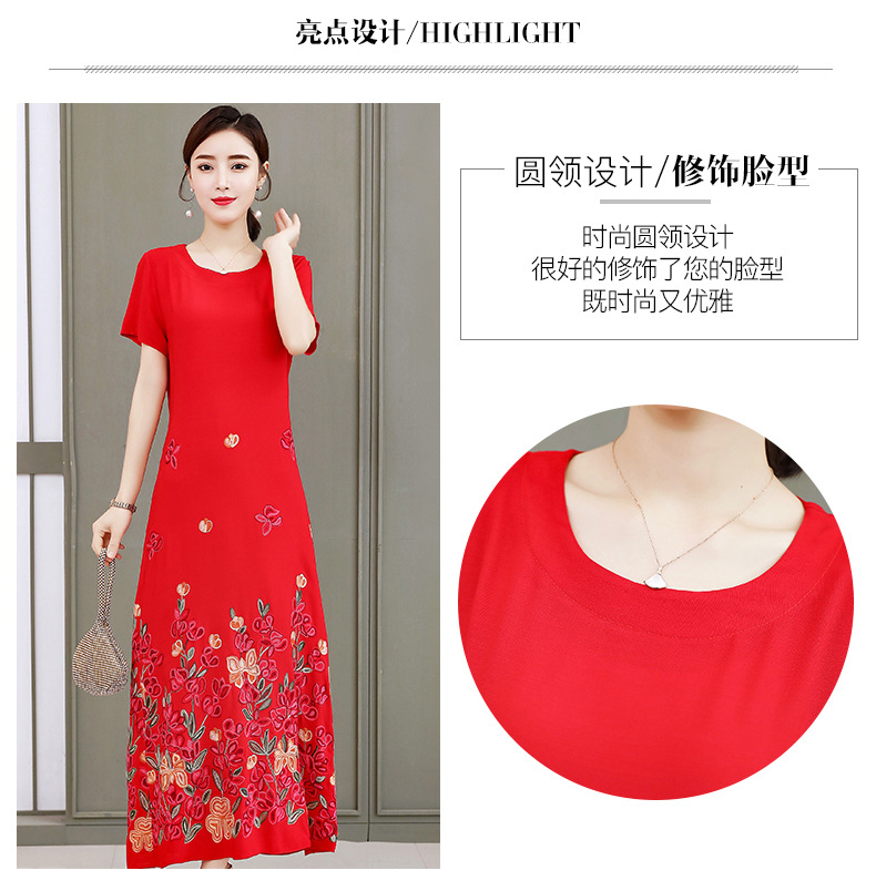 TZX-夏新款时尚显瘦棉麻刺绣阔太太连衣裙