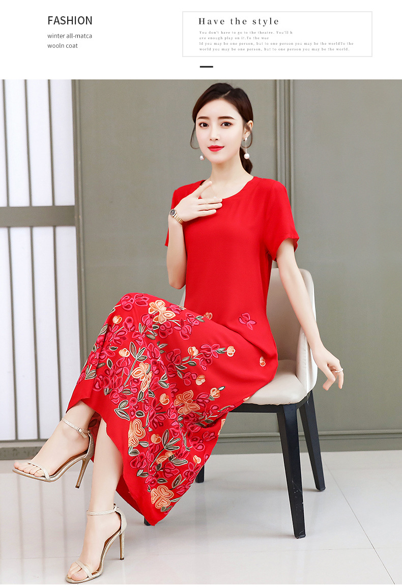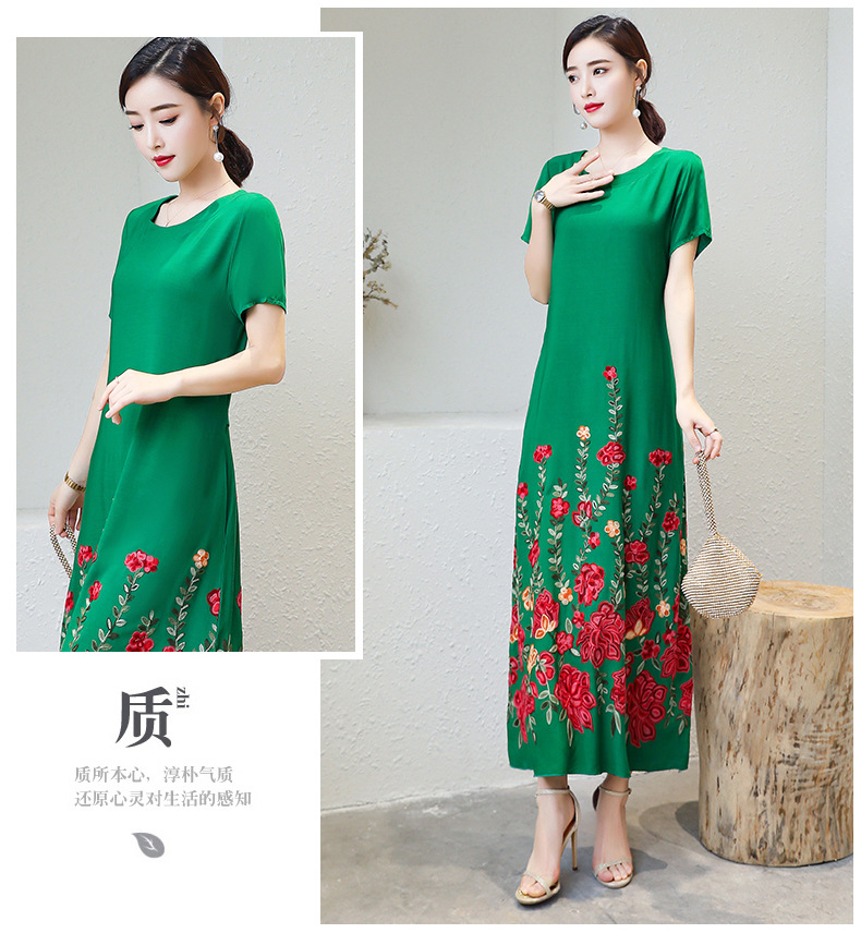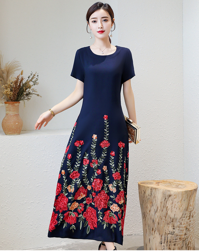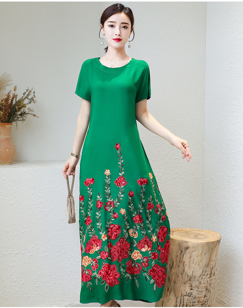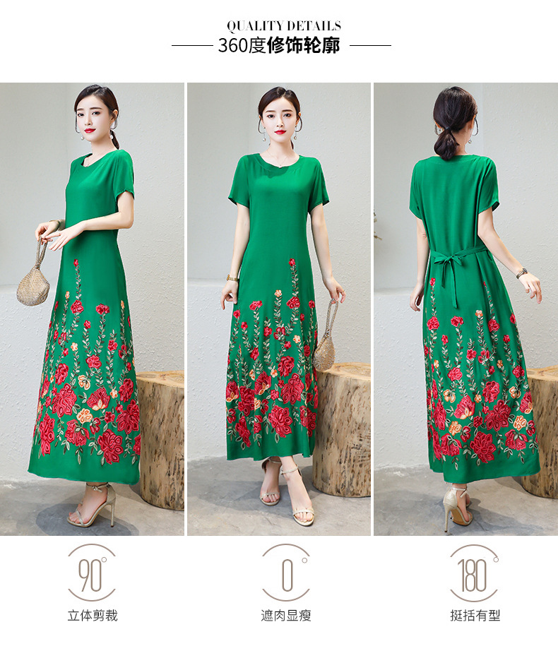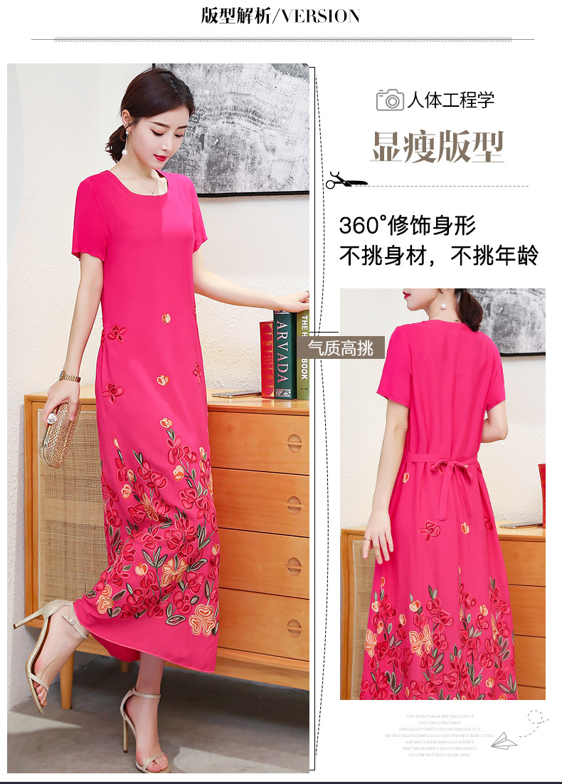 TZX-夏新款时尚显瘦棉麻刺绣阔太太连衣裙
