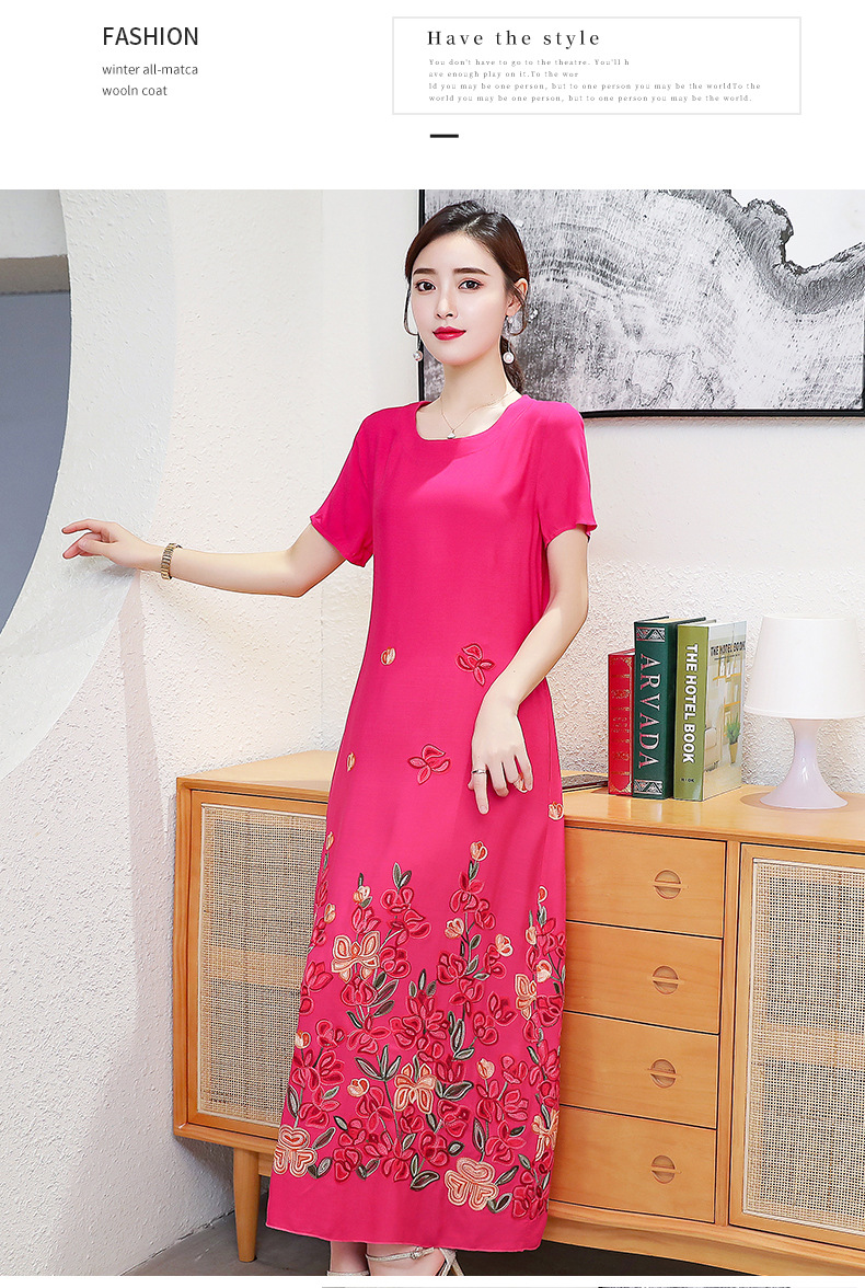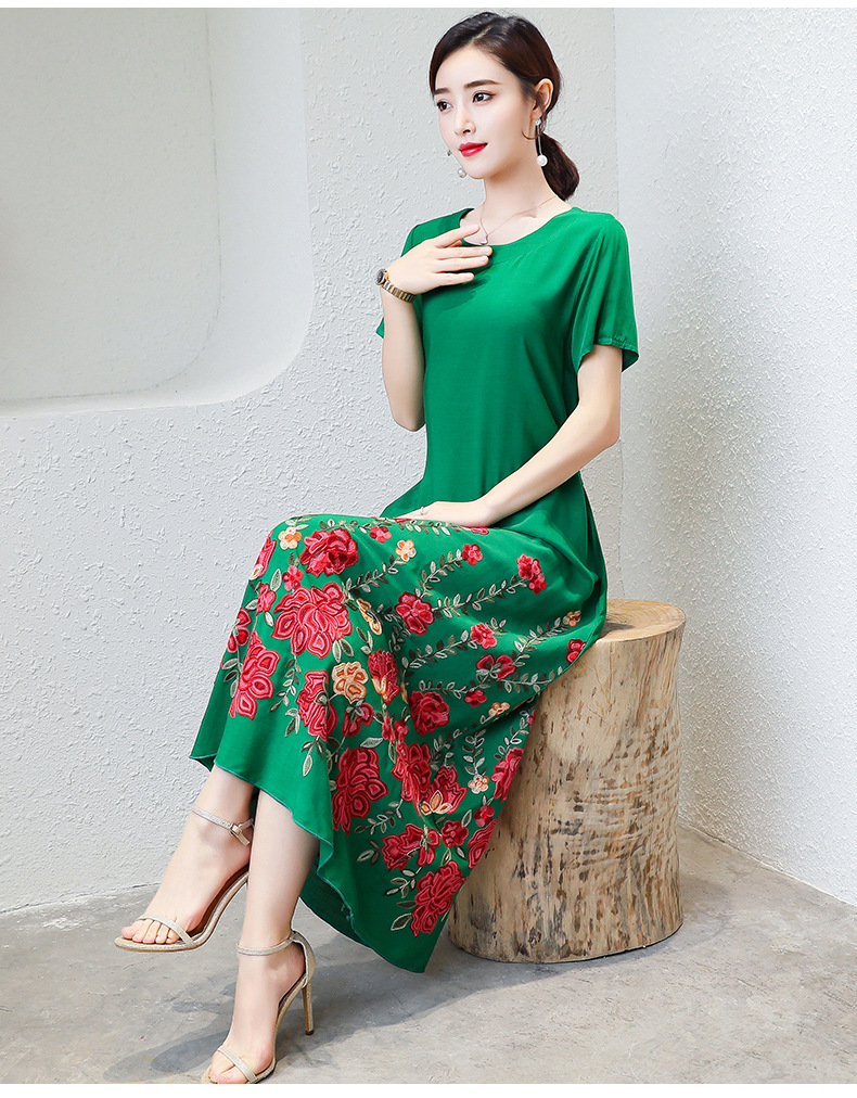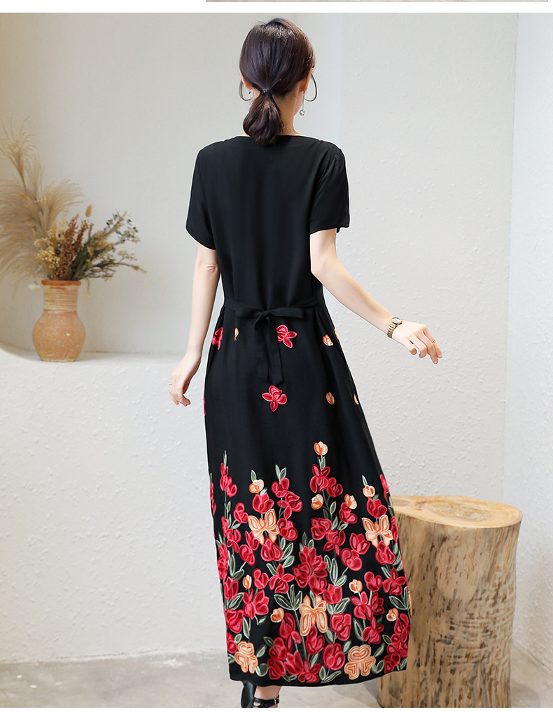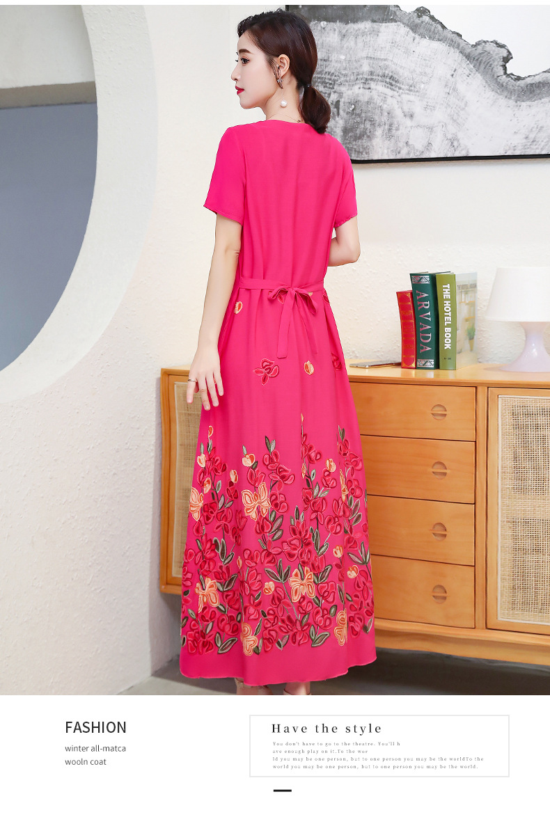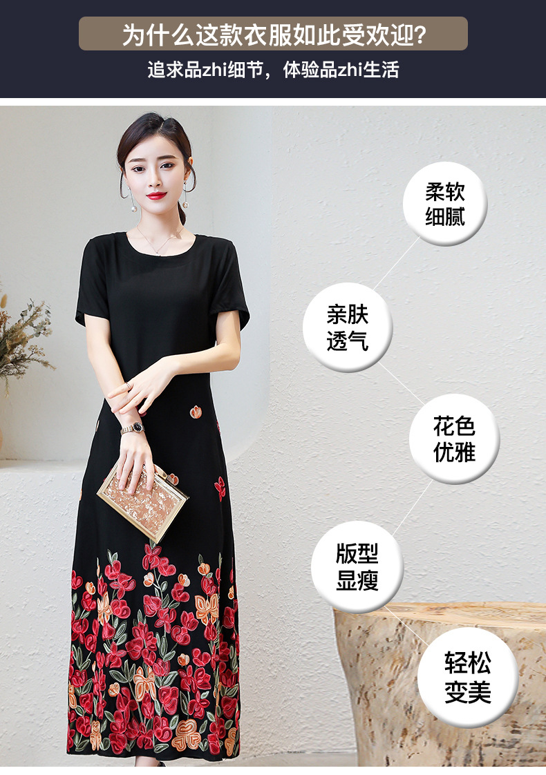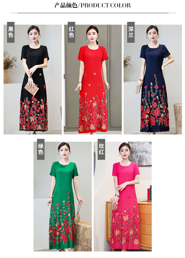 TZX-夏新款时尚显瘦棉麻刺绣阔太太连衣裙