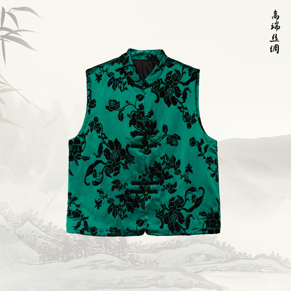 NANSONGSILK/NS新中式国风立领时尚提花盘扣新中式羽绒马甲上衣F10D54836Z南宋