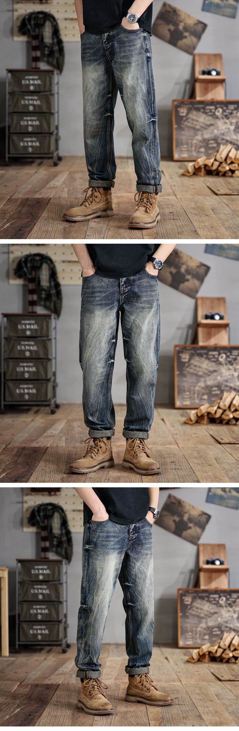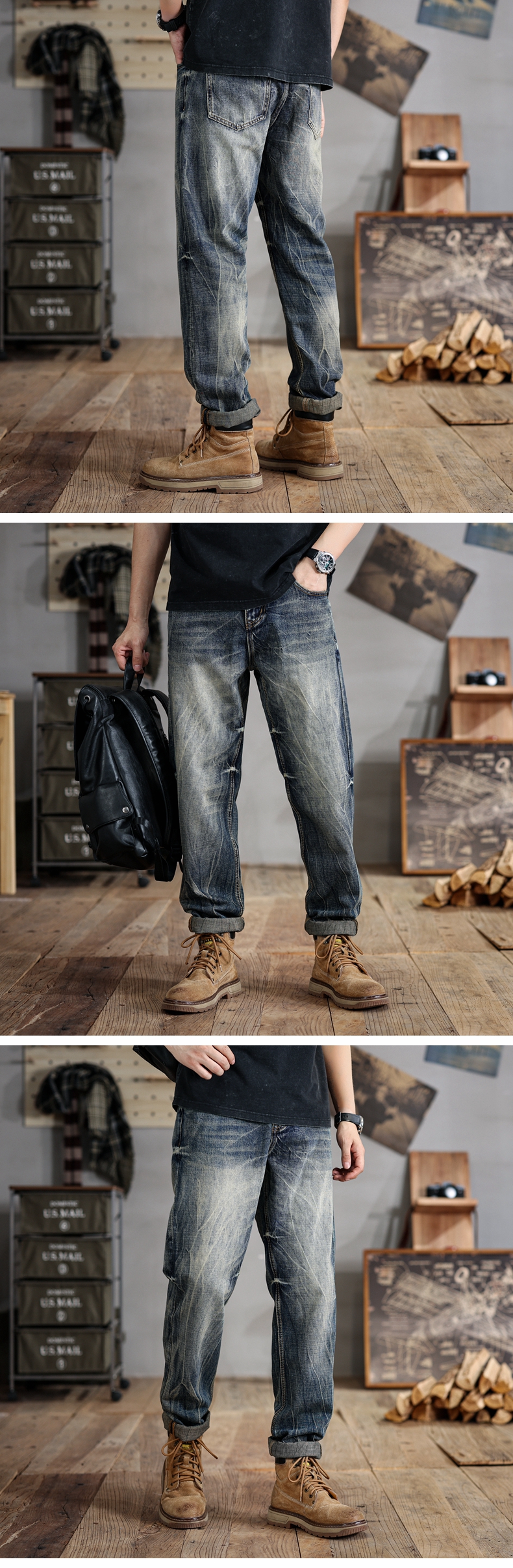 【夏季薄款】【新款DDJ】大依优型大码潮款直筒牛仔裤长裤男舒适休闲简约百搭加肥加大男装裤子纯棉