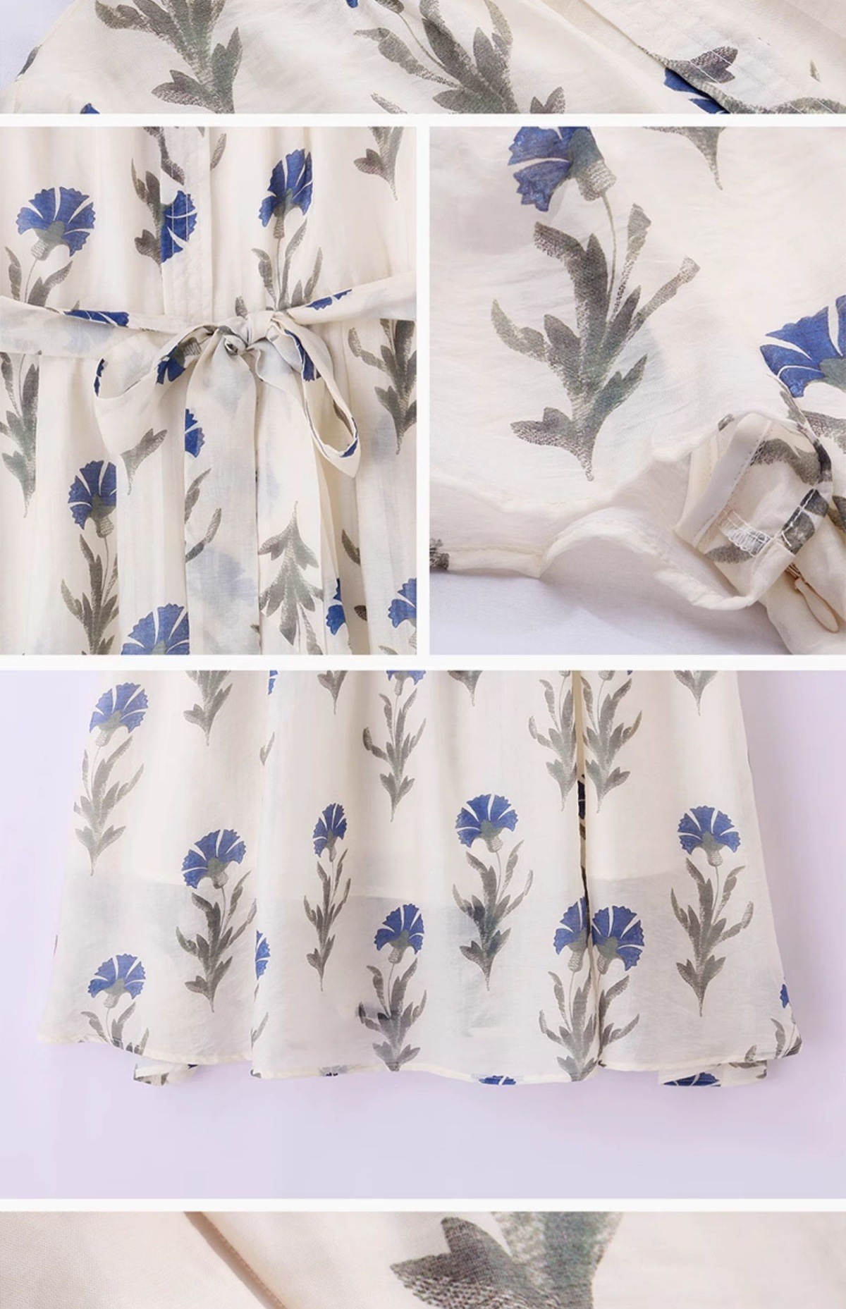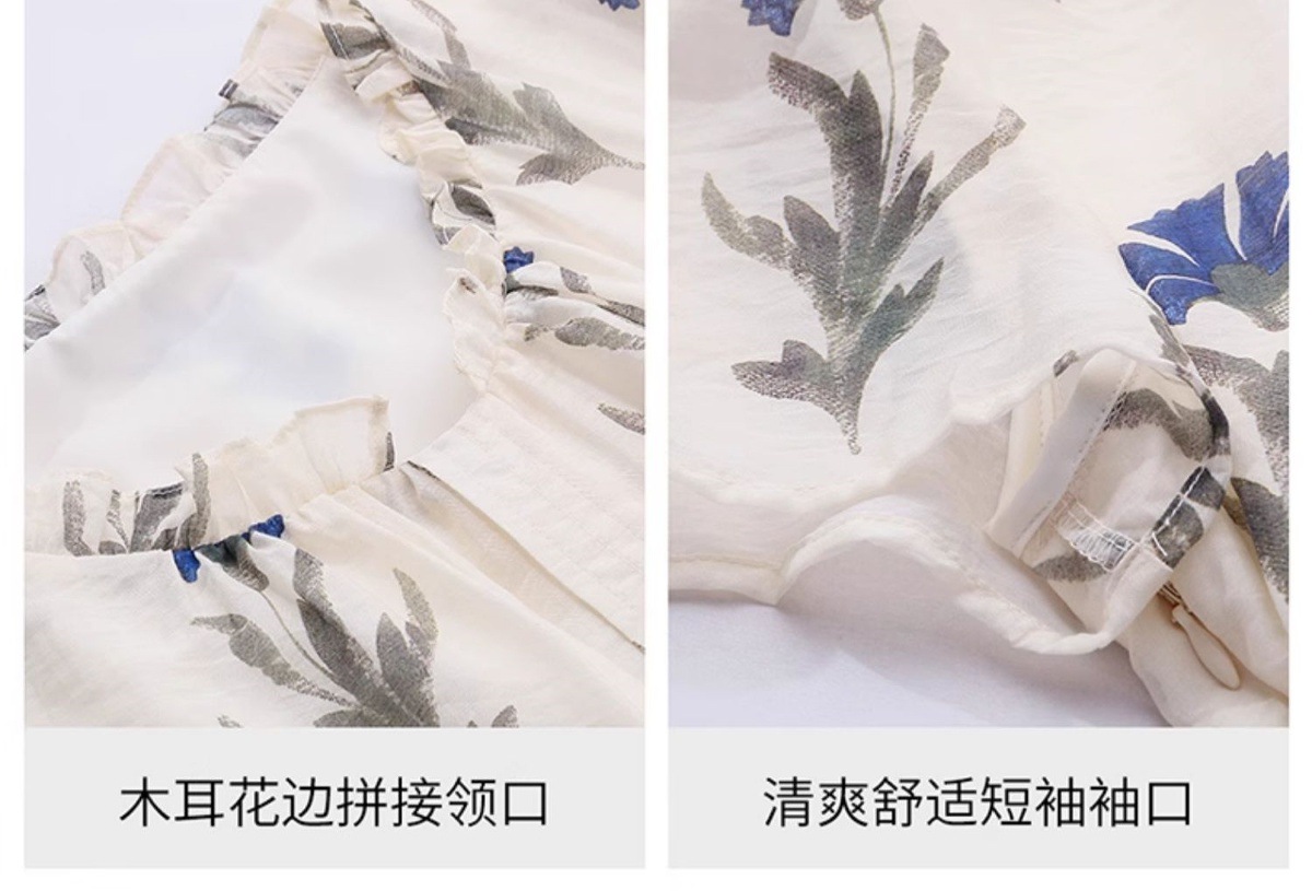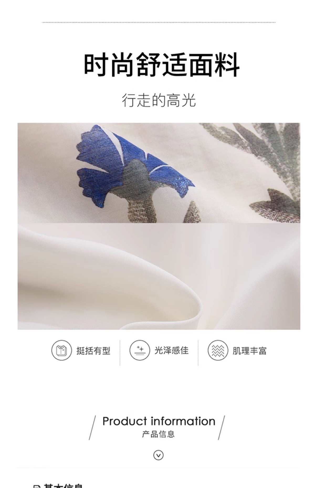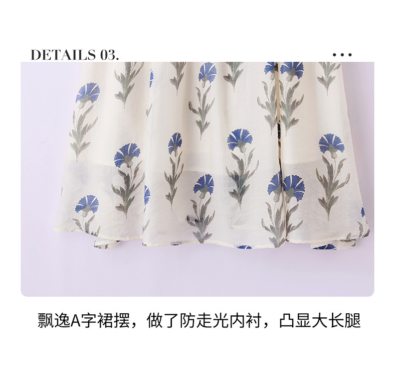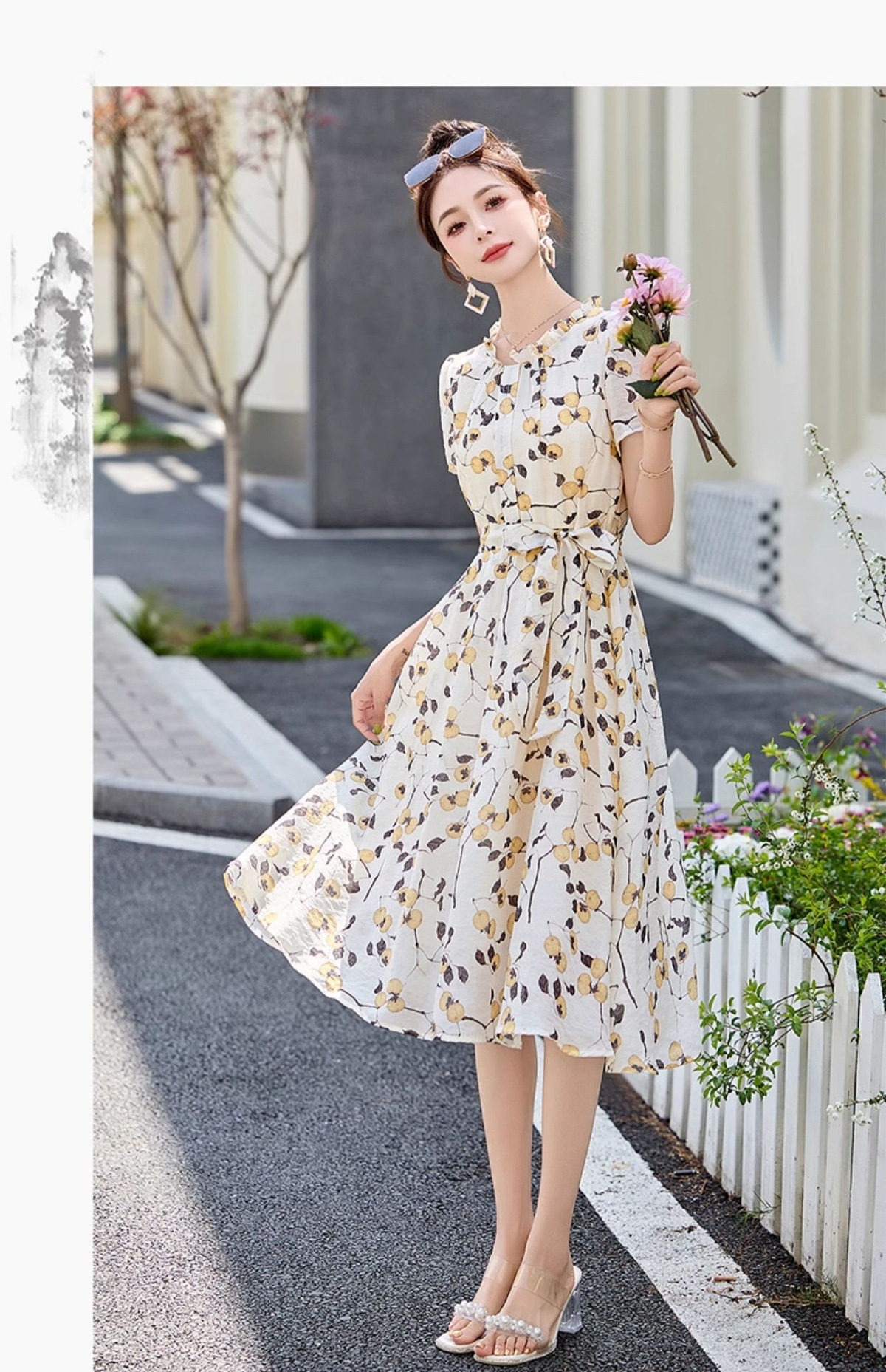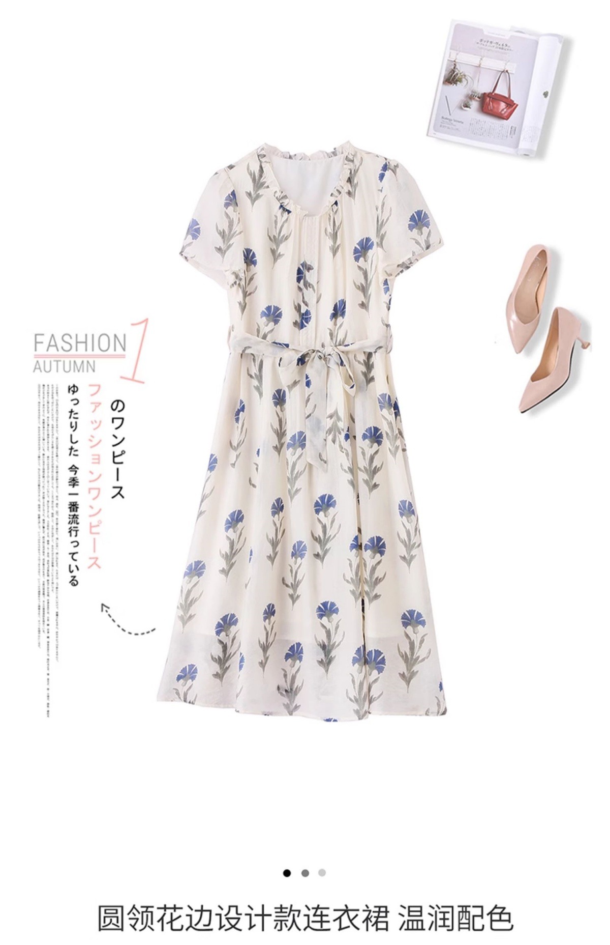 温柔风法式气质收腰短袖长裙,女神范印花显瘦连衣裙HR-6209