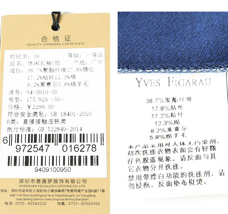 YvesFigarau伊夫·费嘉罗秋冬新款休闲长袖T恤940910