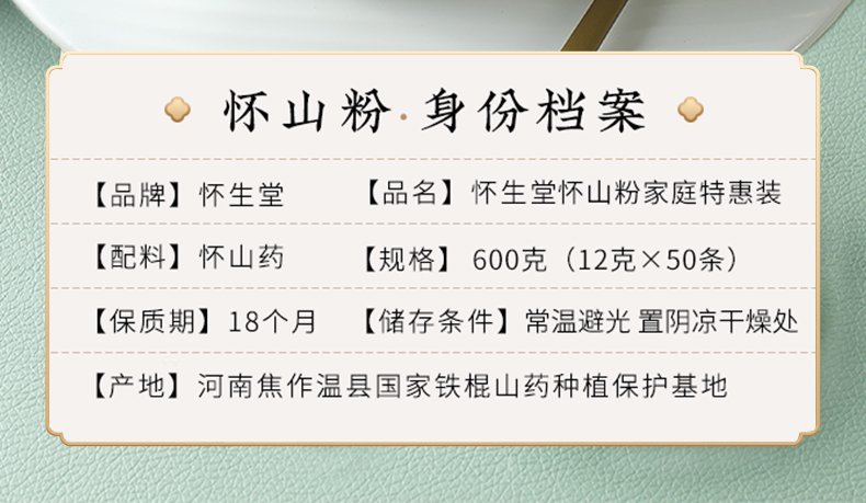 怀生堂 怀山粉家庭特惠装600克(12克*50条)