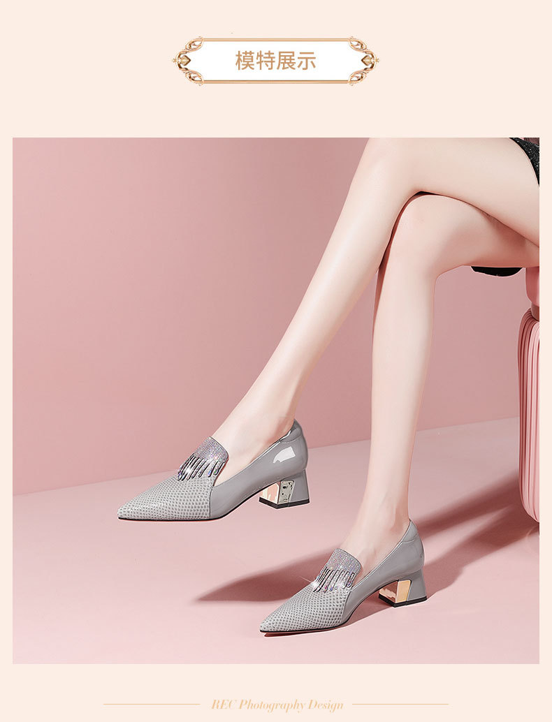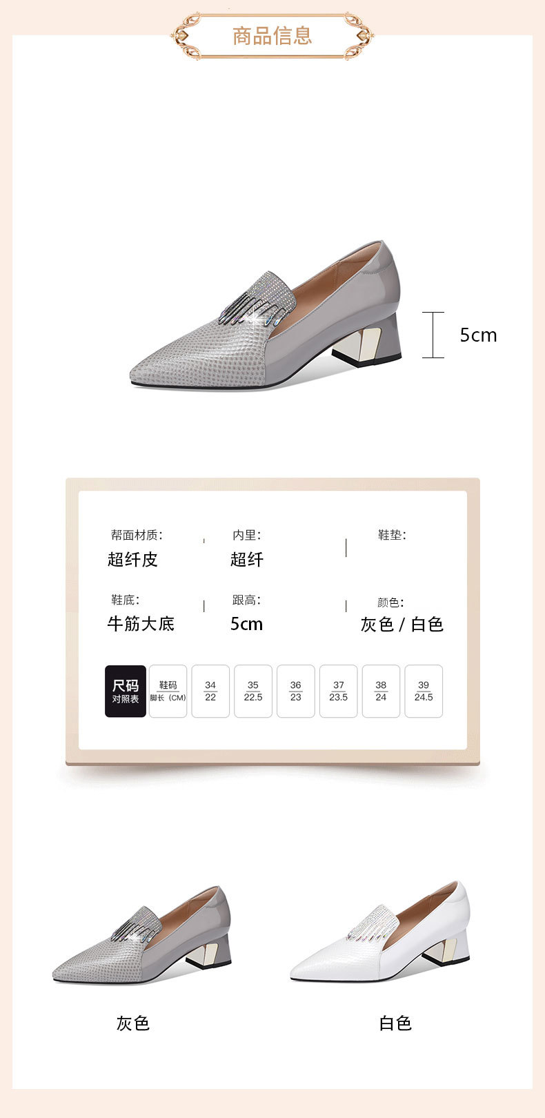 法式粗跟流苏单鞋,通勤拼色中高跟鞋YSML-A056-K733