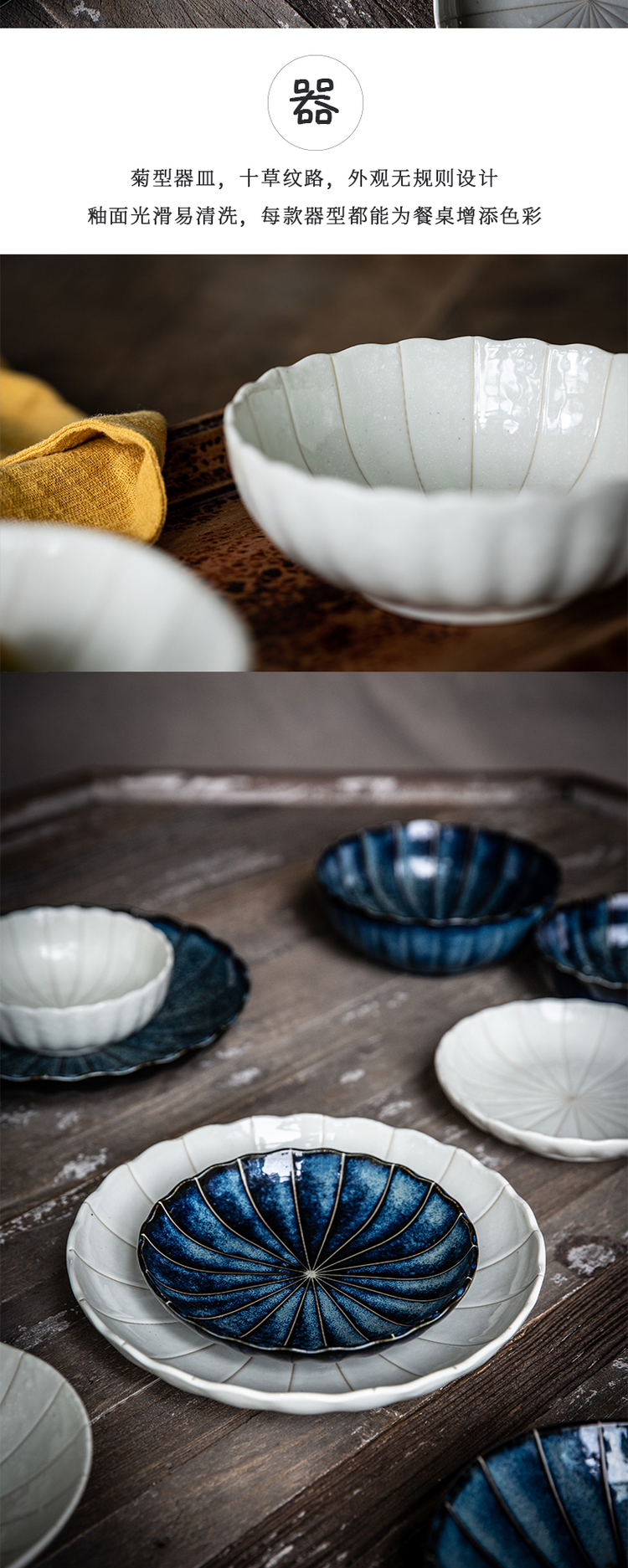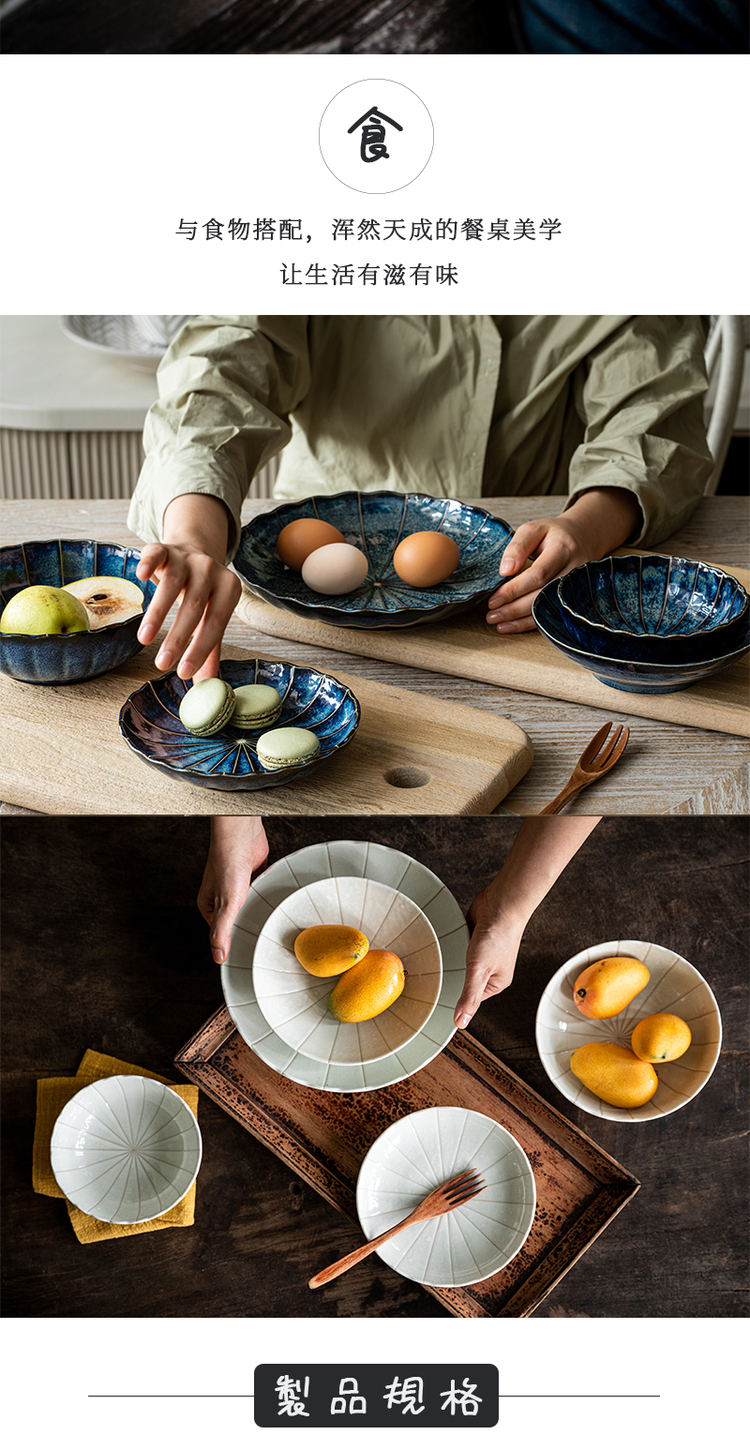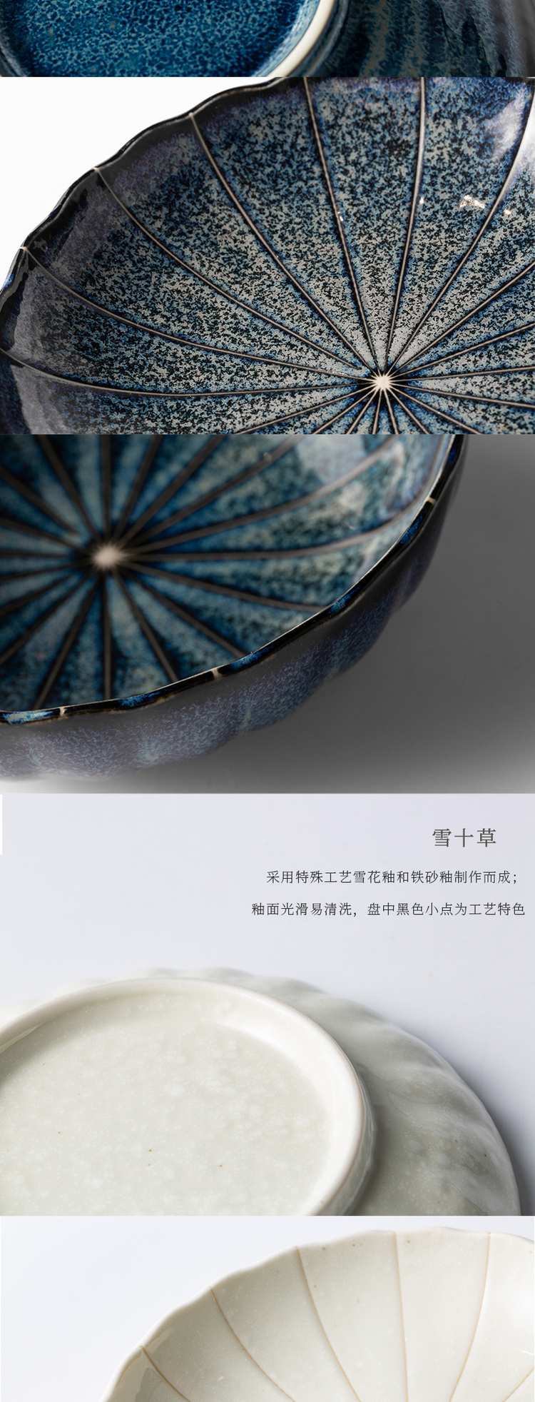 【文怡】日本原产舍米蓝十草餐盘餐碗菊型餐具