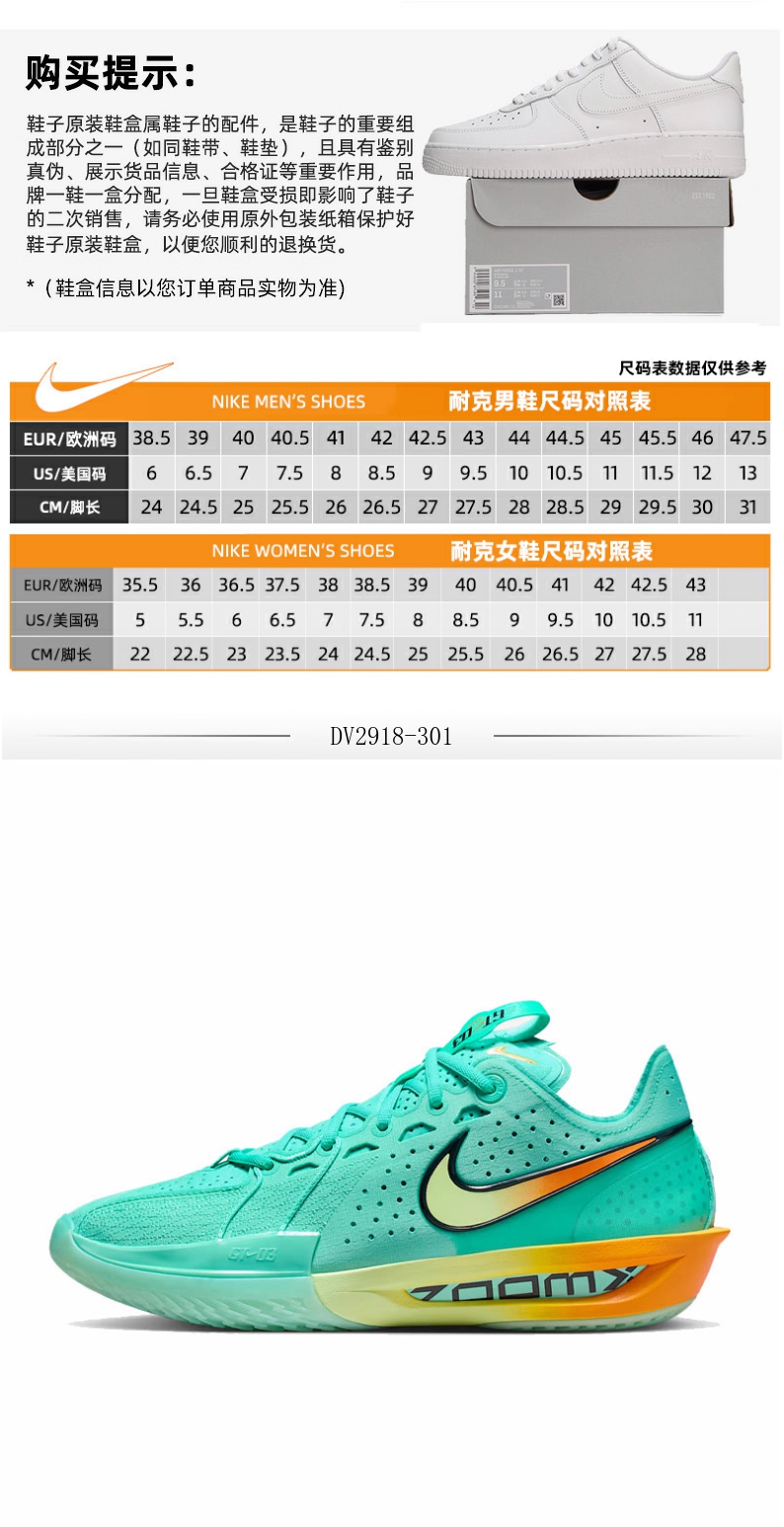 nike耐克冬季男鞋G.T. CUT 3 EP运动鞋训练篮球鞋DV2918-301