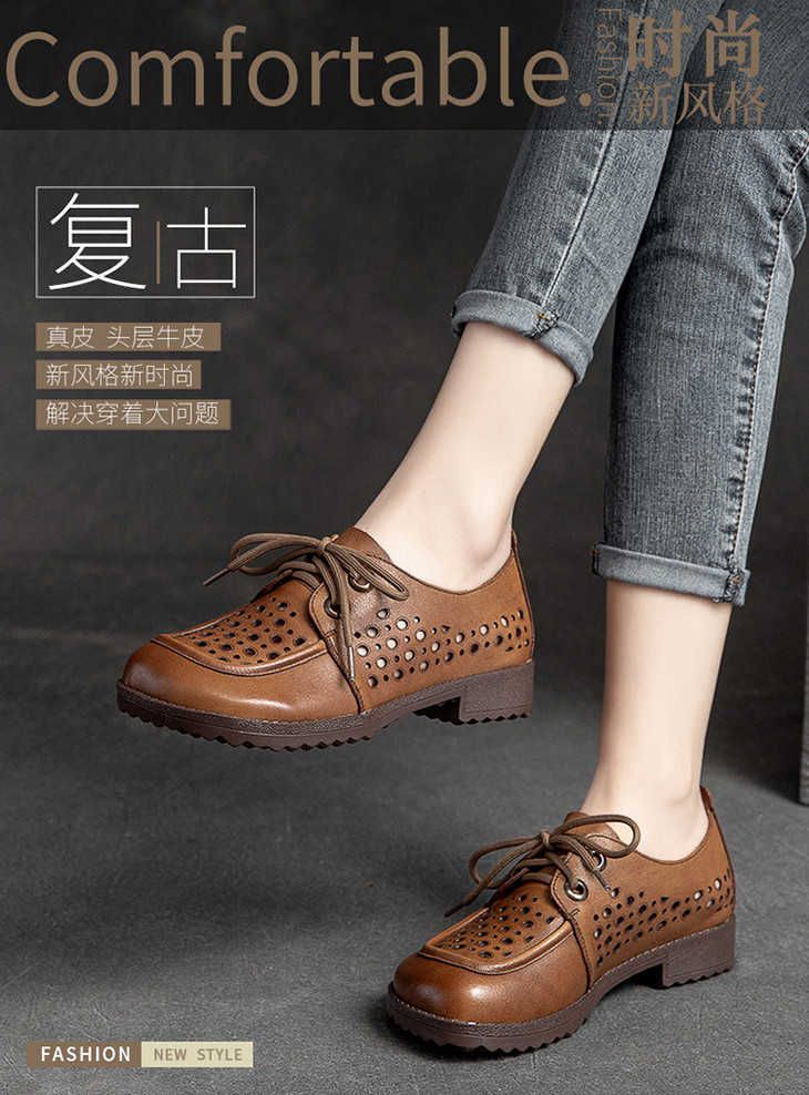 JZ 6830平底豆豆鞋镂空复古懒人鞋时尚百搭小皮鞋