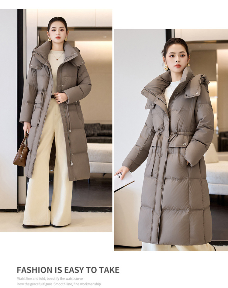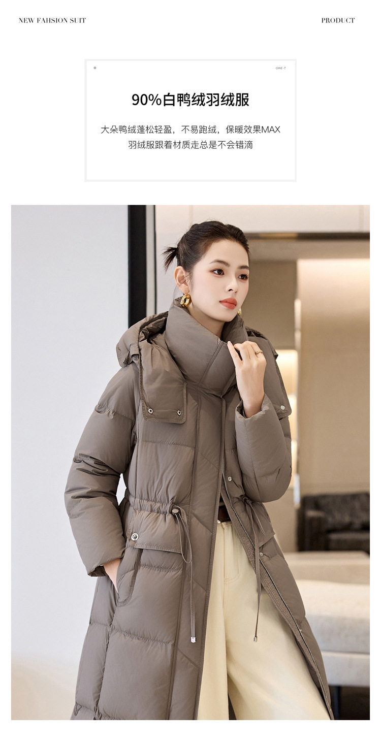 ASE 7767纯色长款羽绒服厚过膝时尚洋气收腰显瘦外套 商品图1