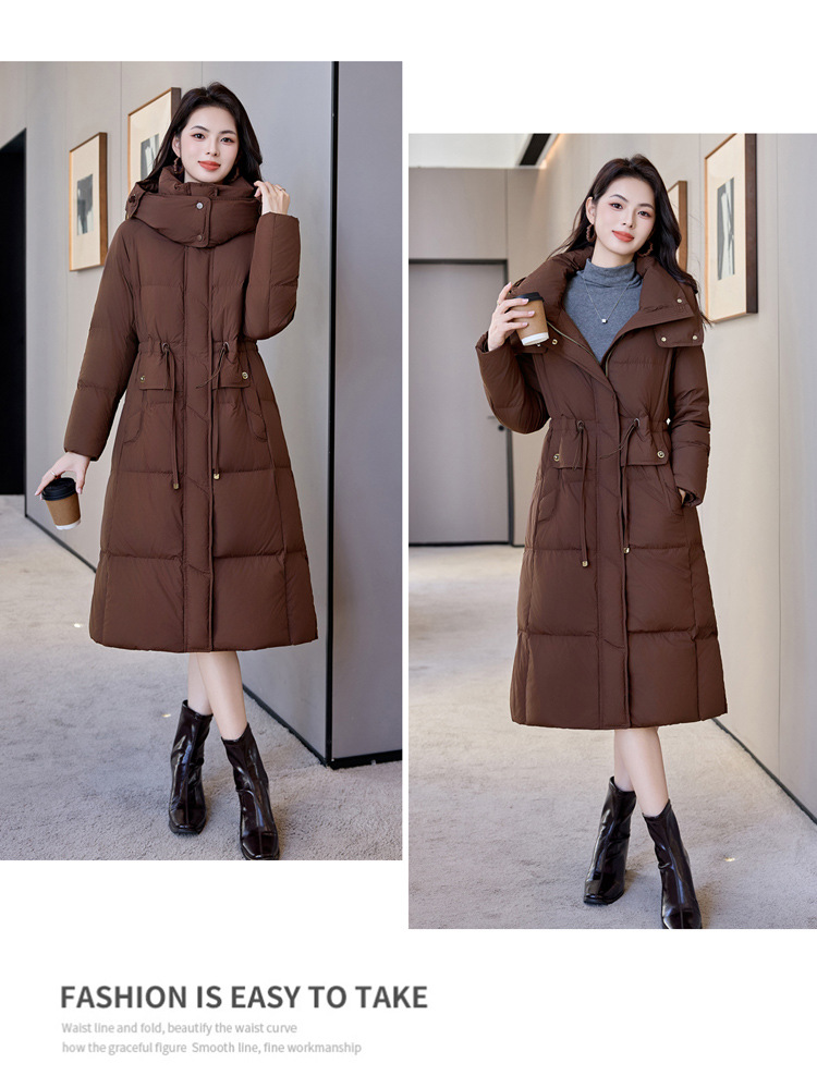 ASE 7767纯色长款羽绒服厚过膝时尚洋气收腰显瘦外套 商品图0