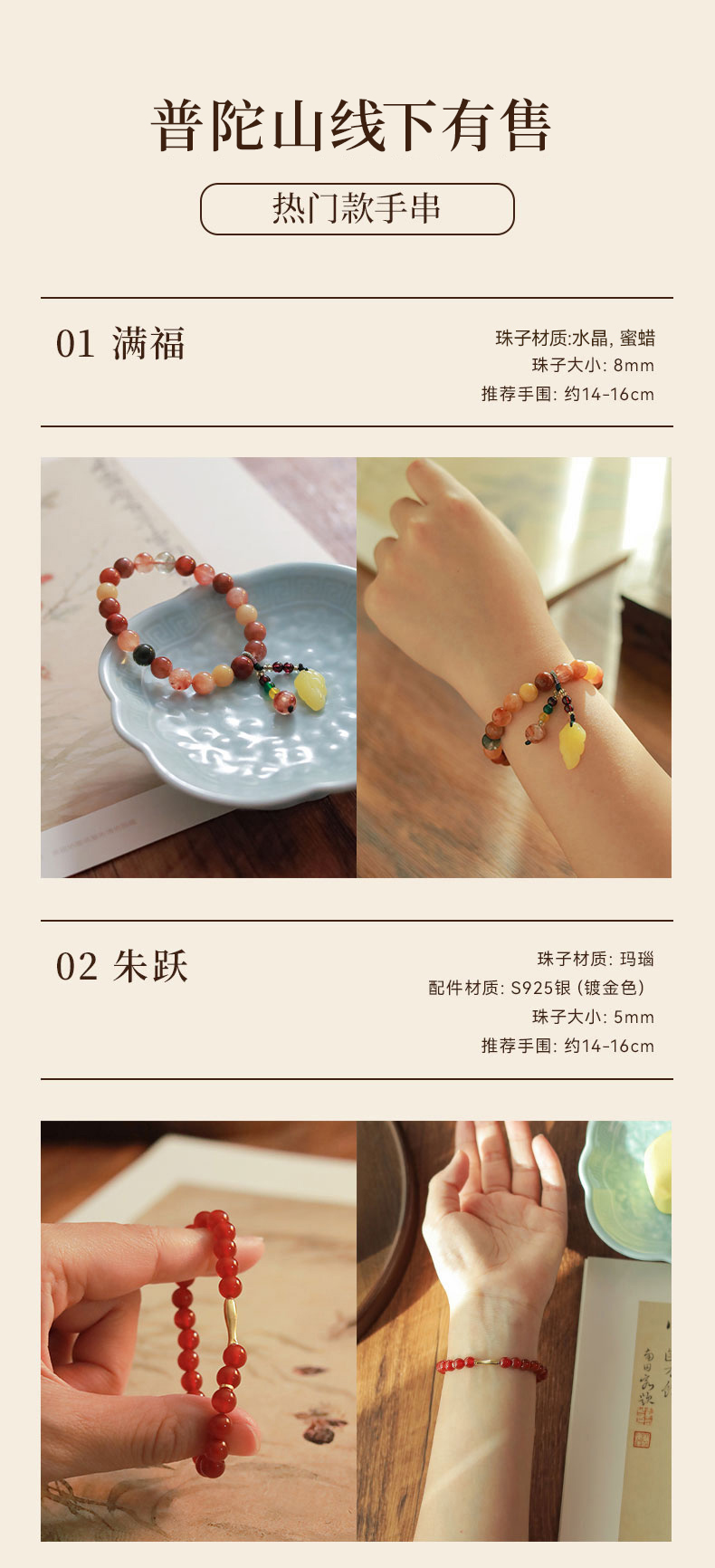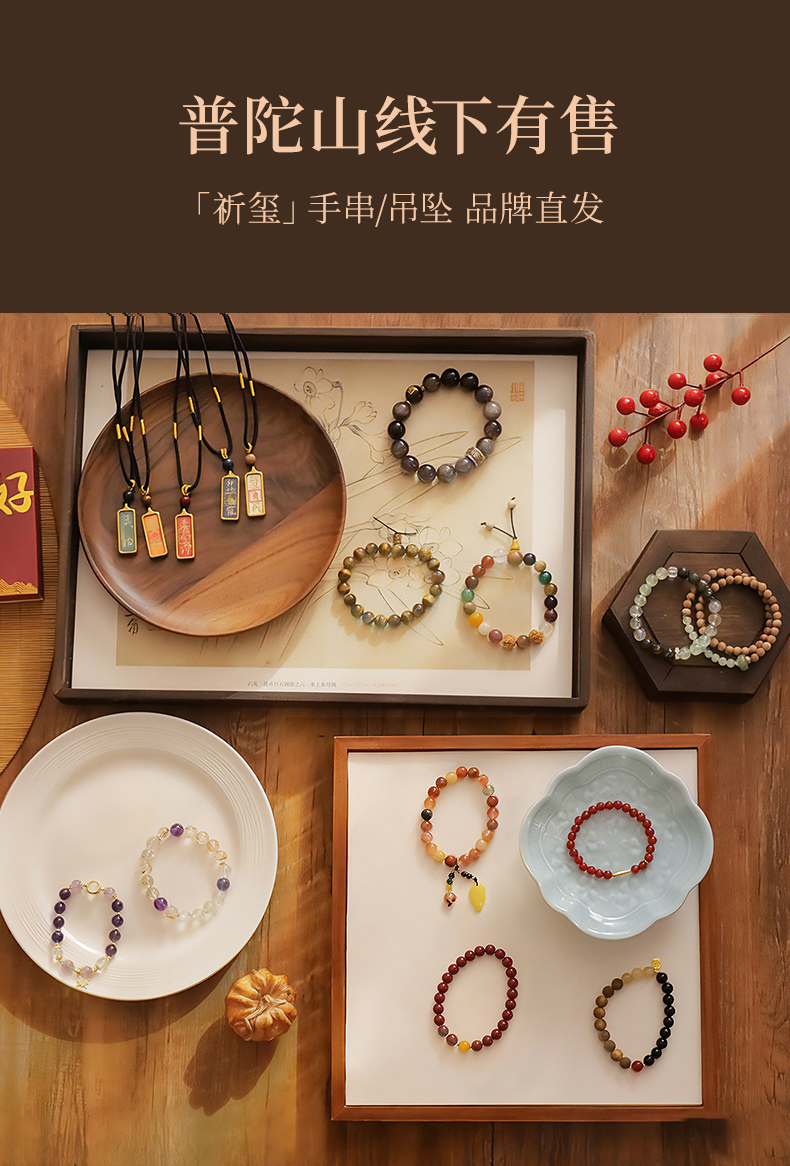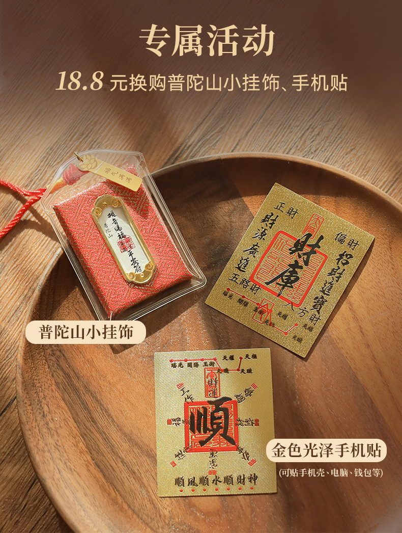 下单任一手串/项链/吊坠,可以用18.8元低价加购原价39元的普陀山小挂饰和手机贴。