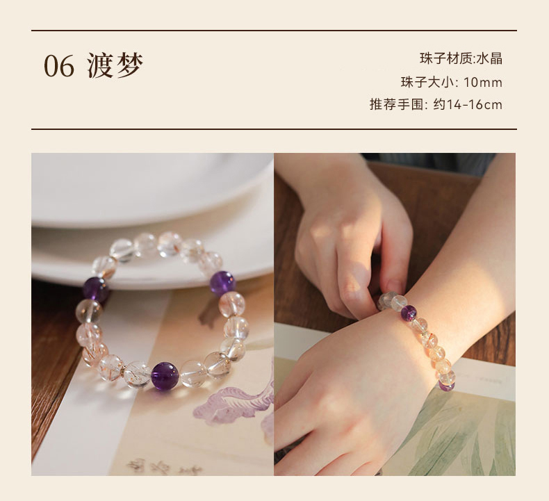 2.手串可能存在一些冰裂、棉絮、矿坑、共生纹路,并非质量问题,而是自然的印记,敬请包容~