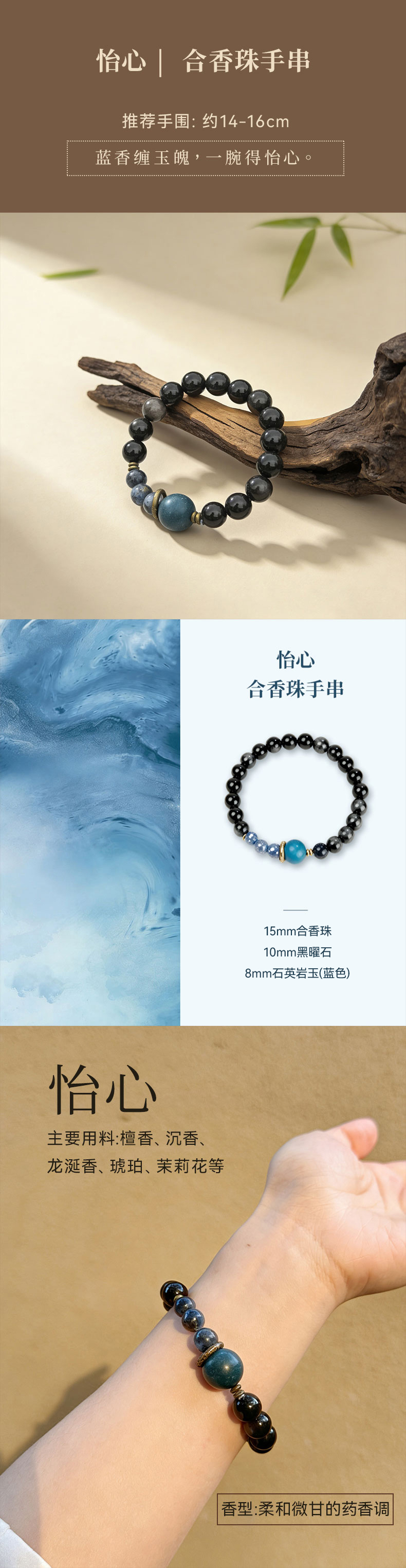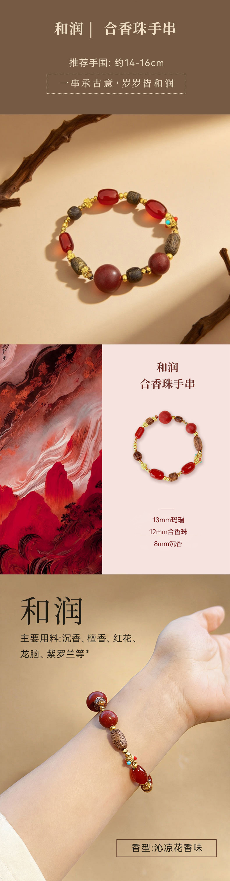 3.合香珠由香料、植物等原料制成,其中包含如玫瑰等含有自然色素的原料,请注意避免沾水,可能导致自然色素掉落。