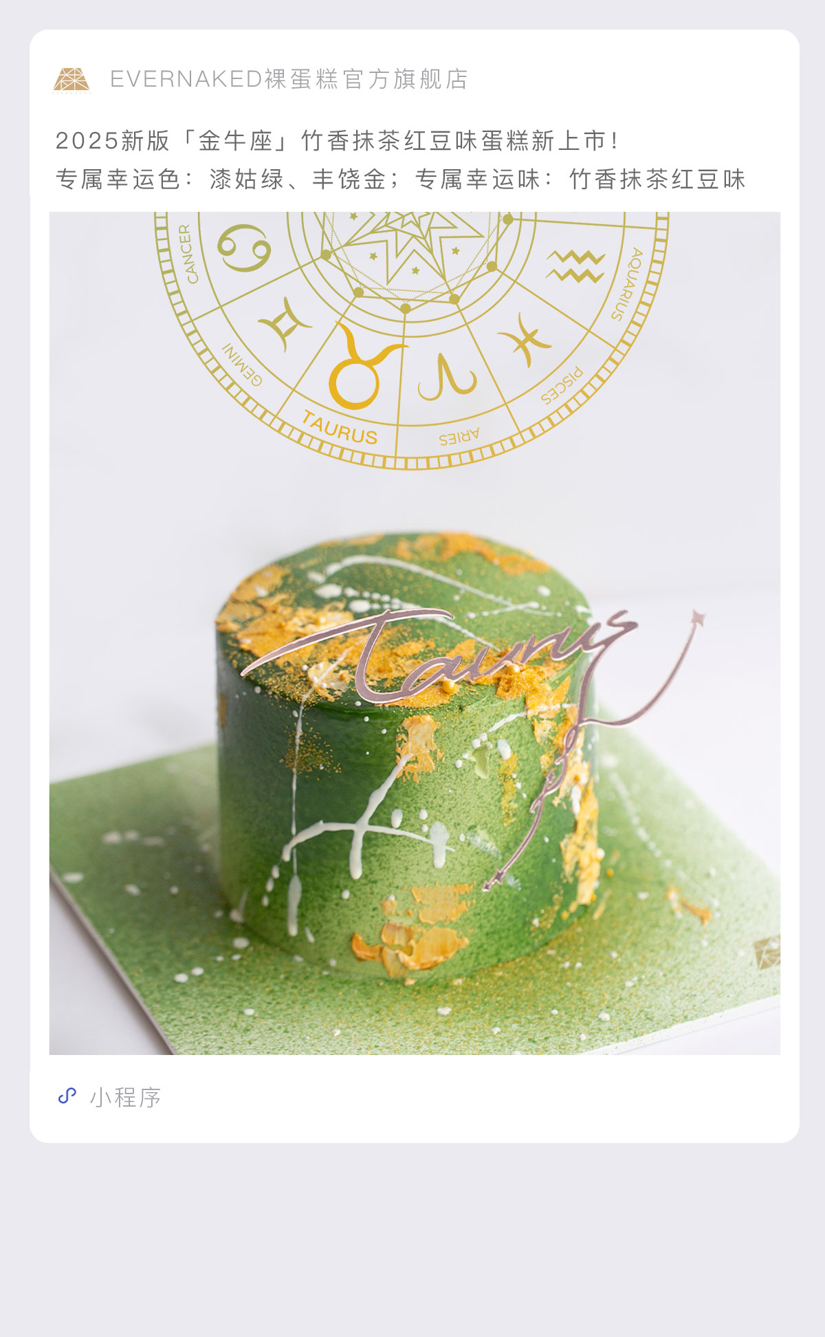即将下架!2025新版「金牛座」竹香抹茶红豆味蛋糕|十二星座唯美星空系列