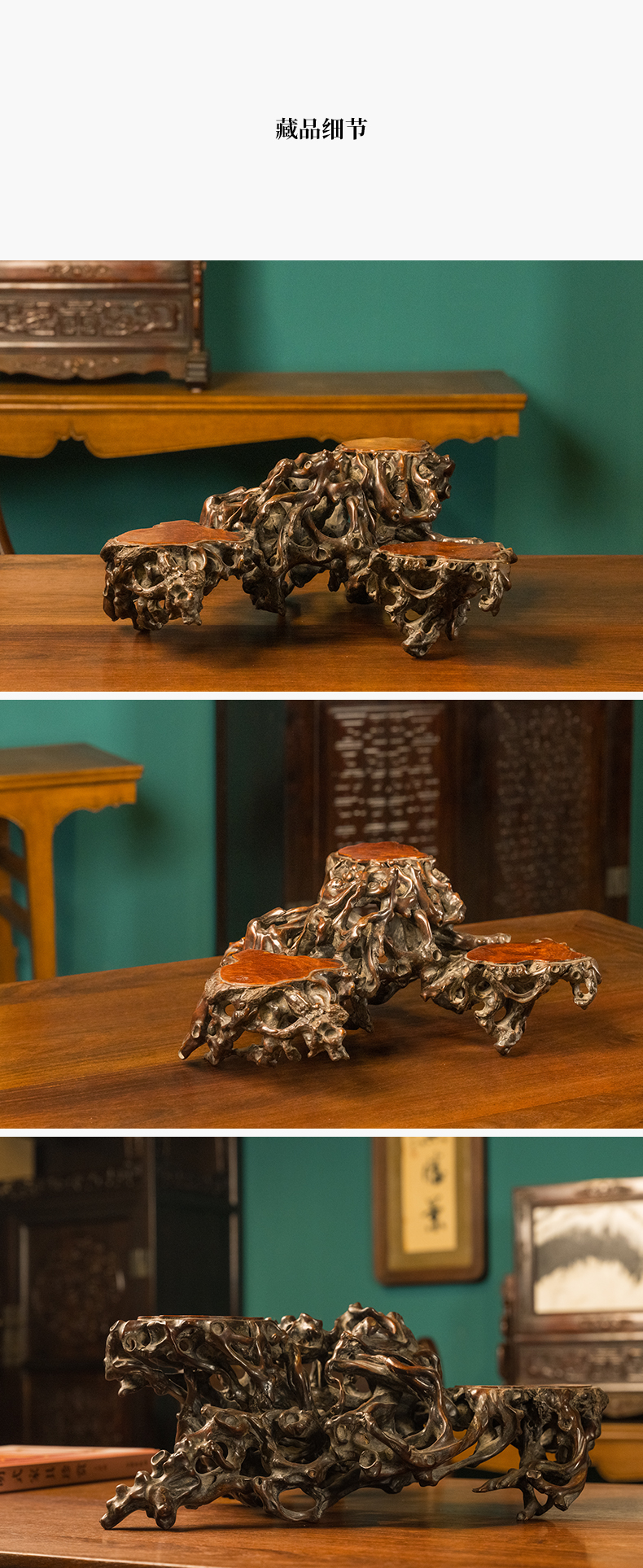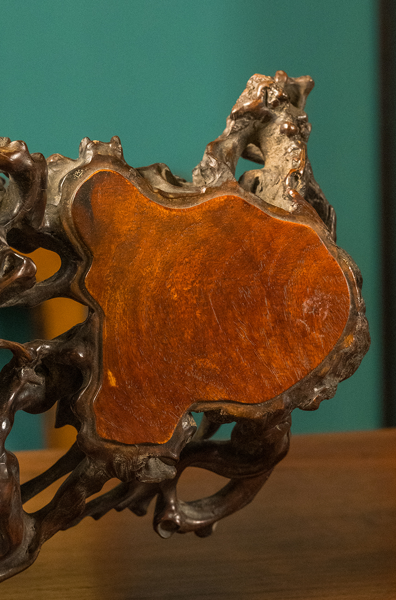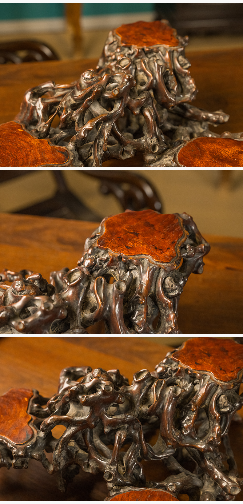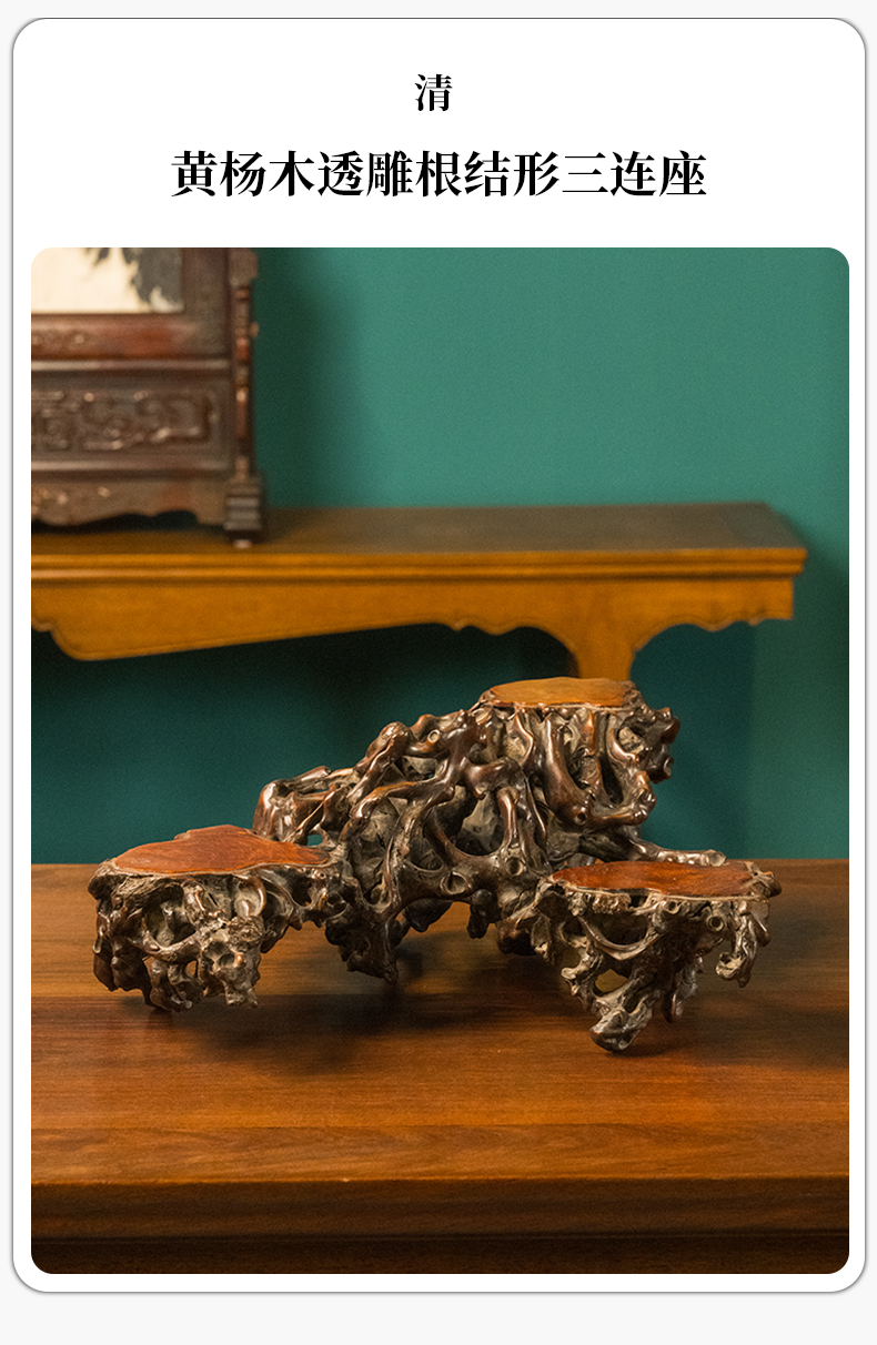 清 黄杨木透雕根结形三连座