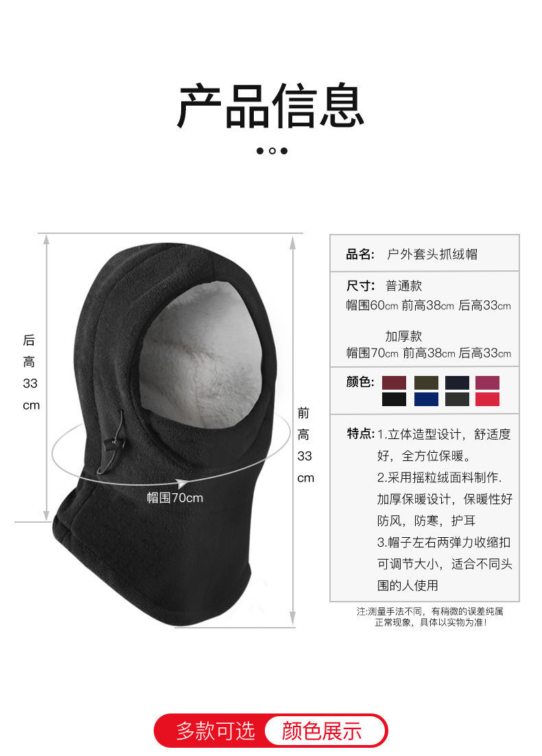 冬季户外骑行防风飞虎帽抓绒头套CS帽子面罩加厚保暖滑雪帽口罩