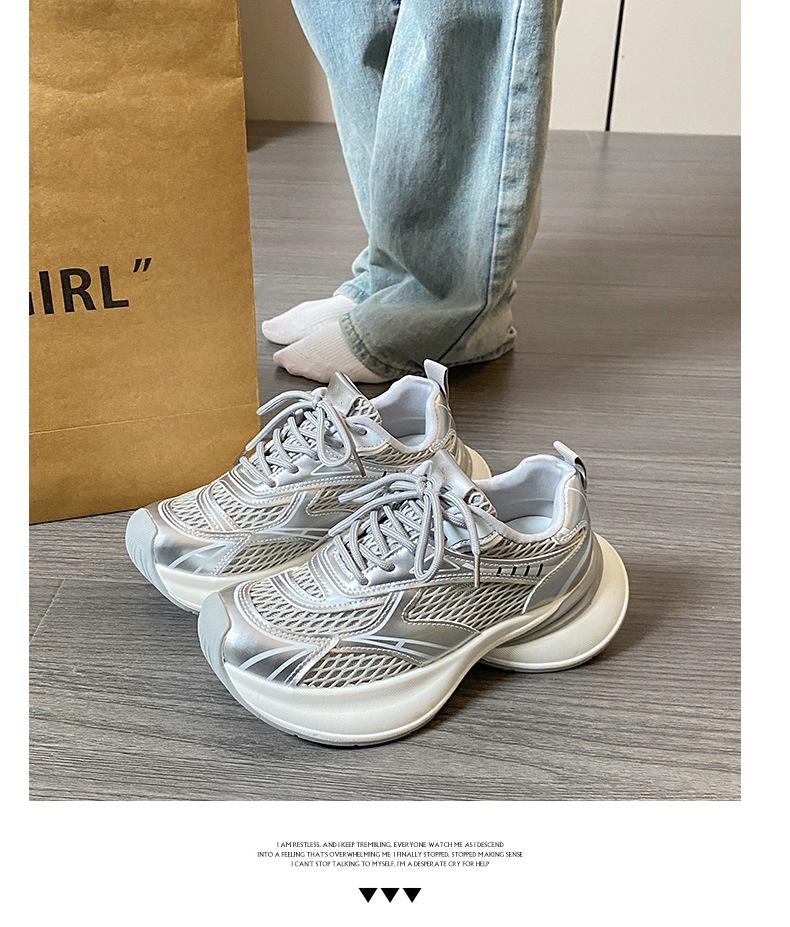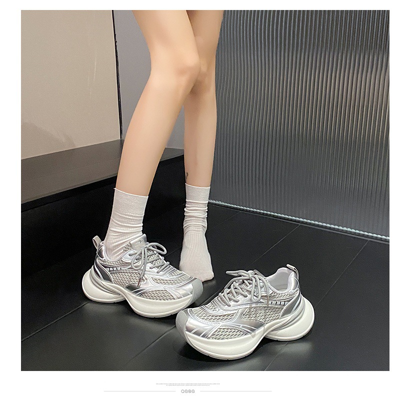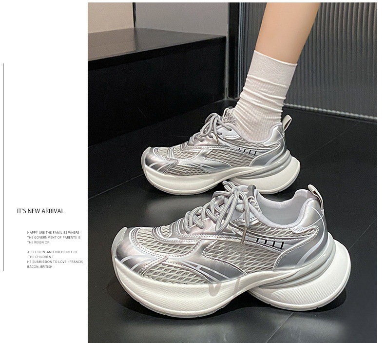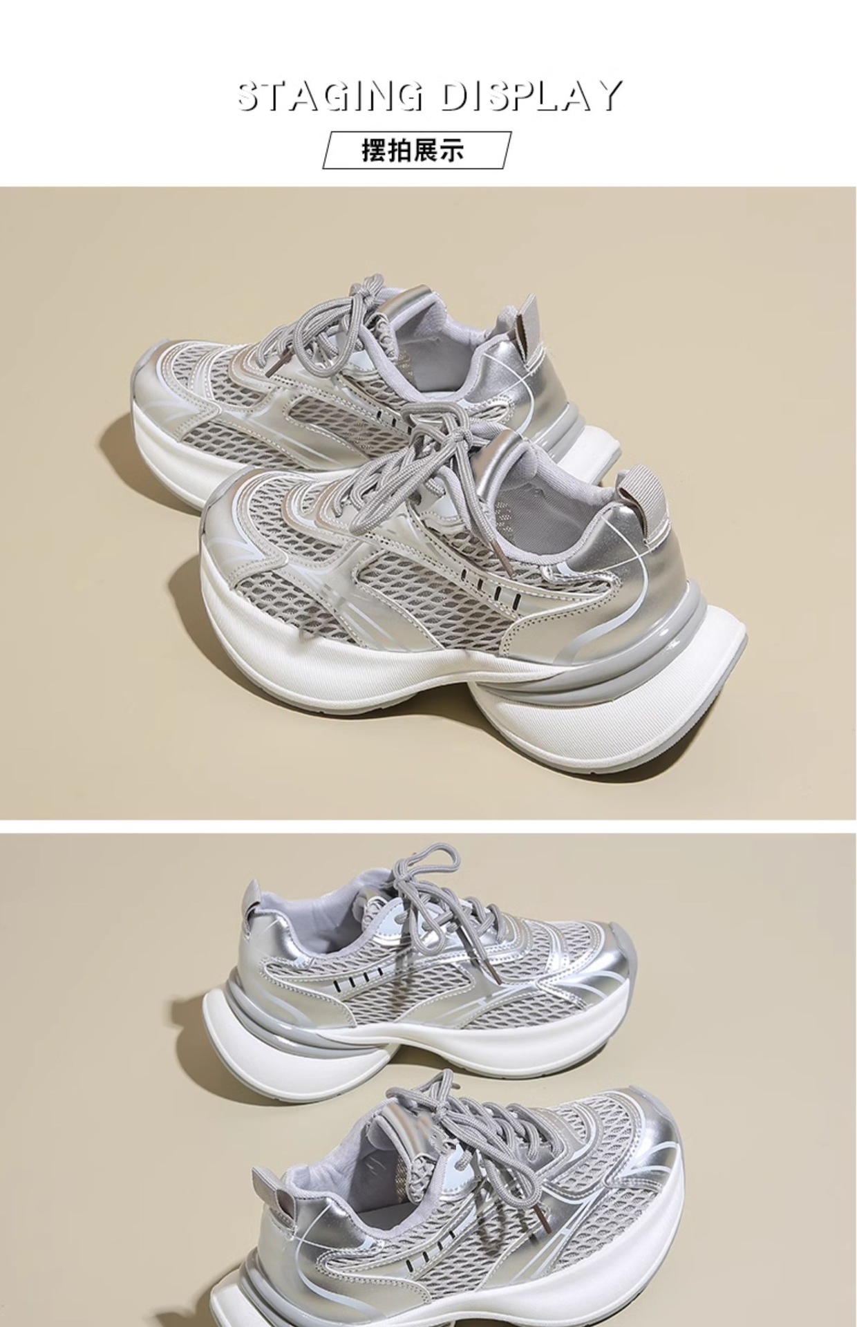 【轻软脚感❗️显高显瘦】欧洲厚底银色老爹鞋2025新款时尚百搭夏季网面透气女士运动潮鞋子。jb