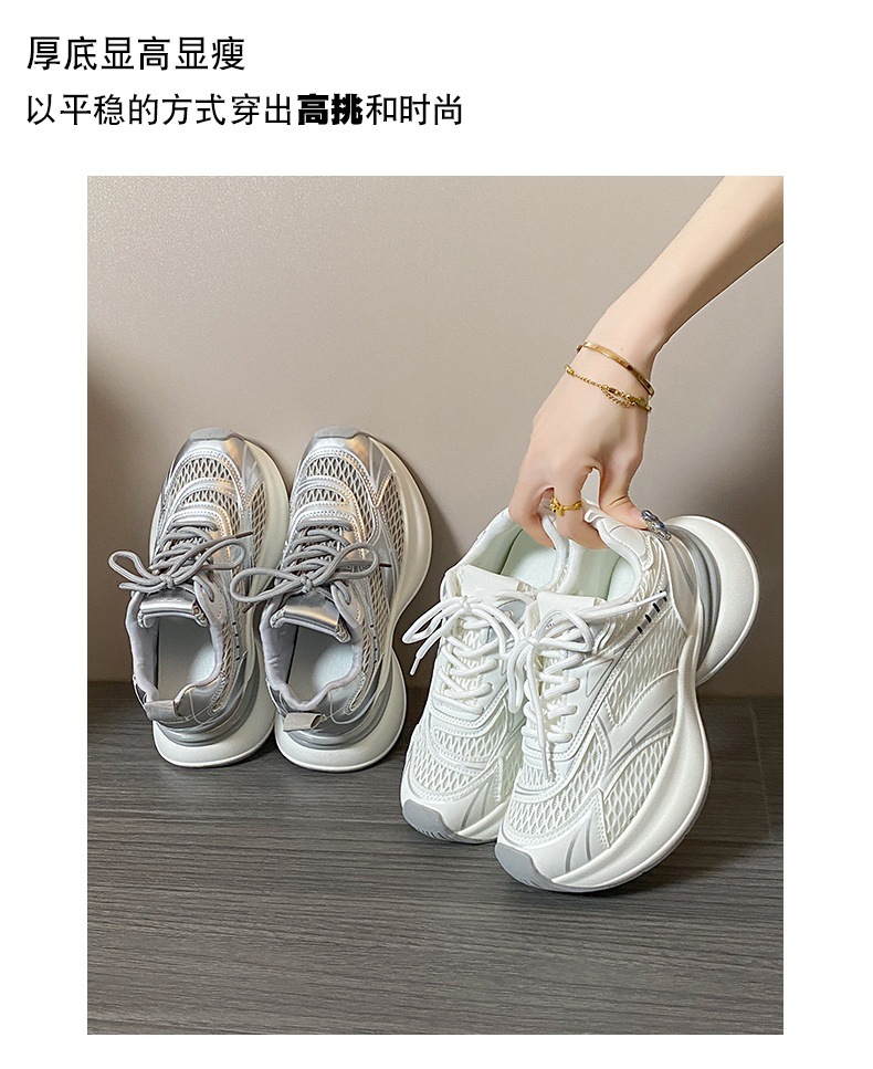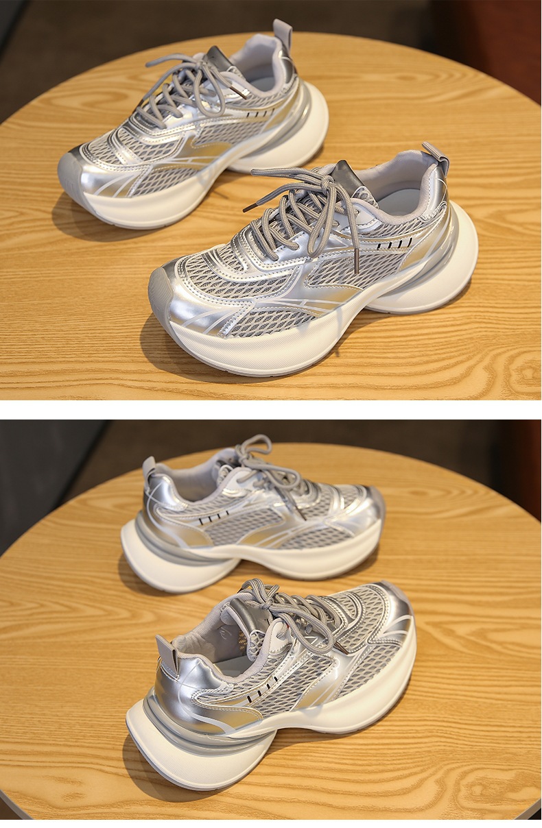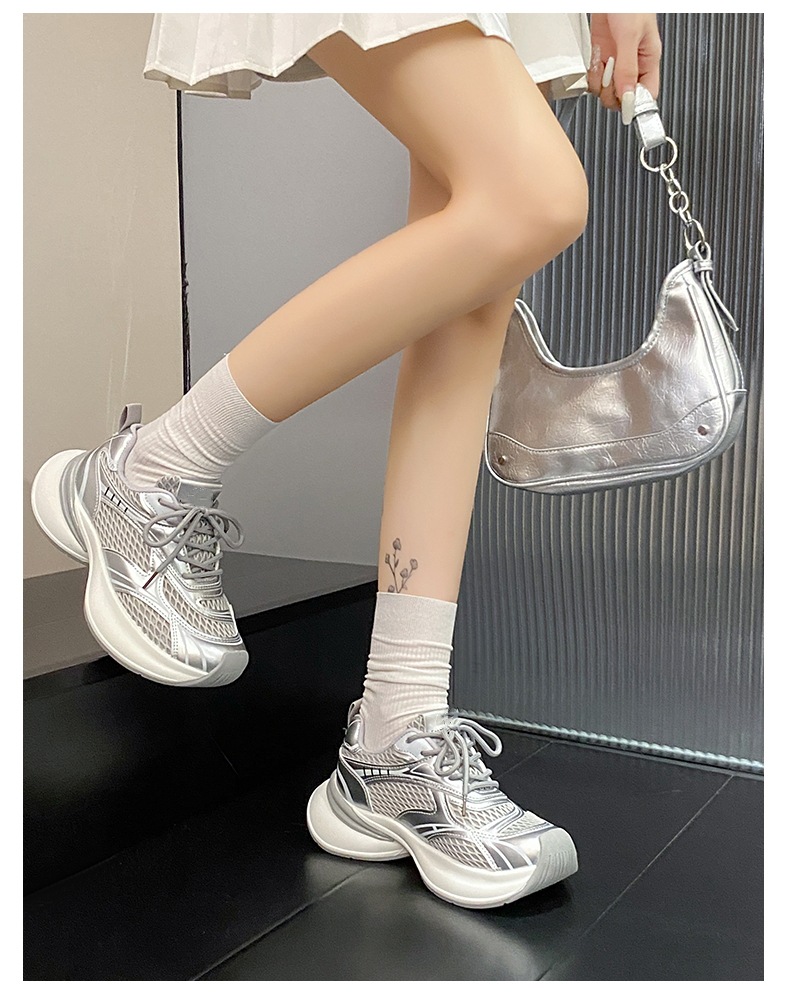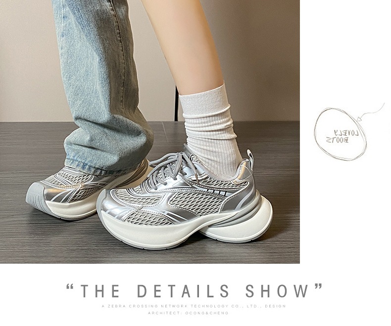 【轻软脚感❗️显高显瘦】欧洲厚底银色老爹鞋2025新款时尚百搭夏季网面透气女士运动潮鞋子。jb