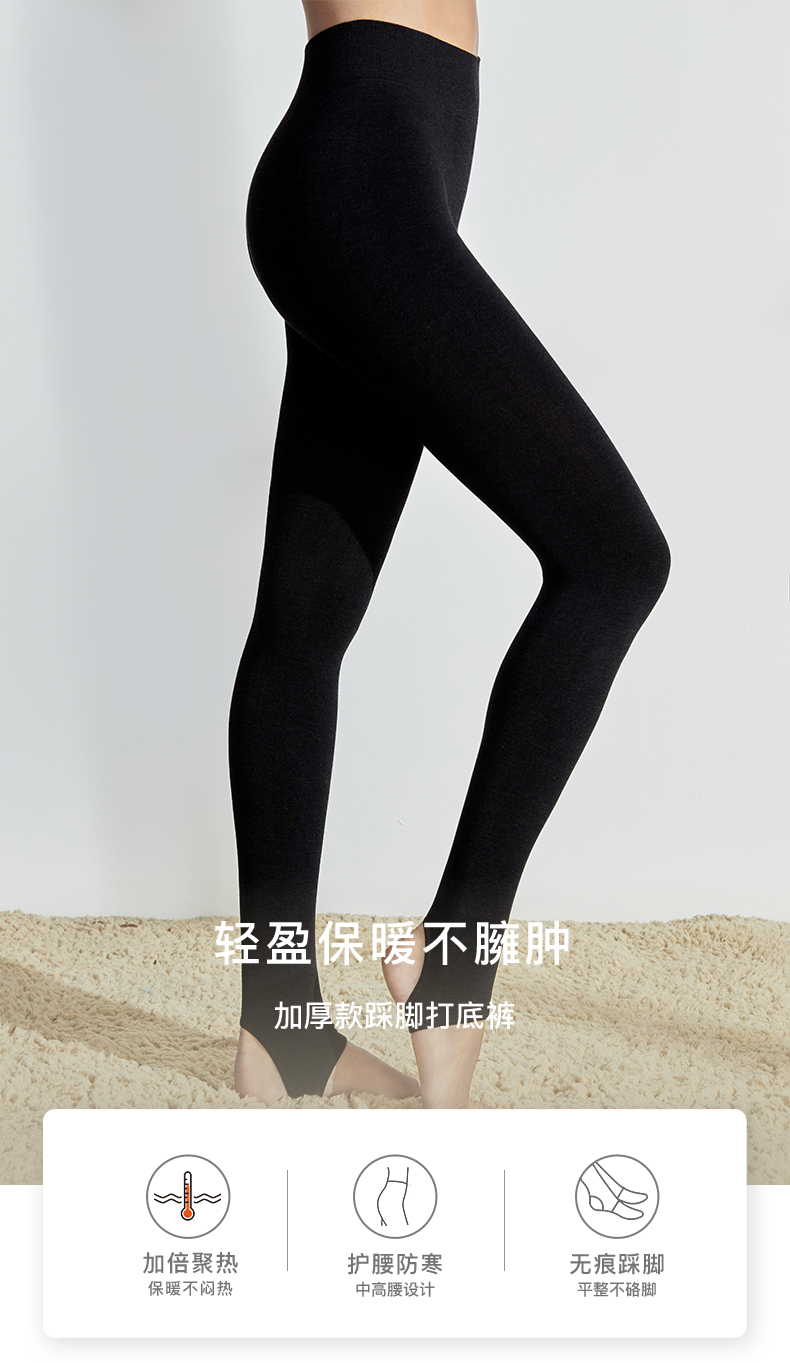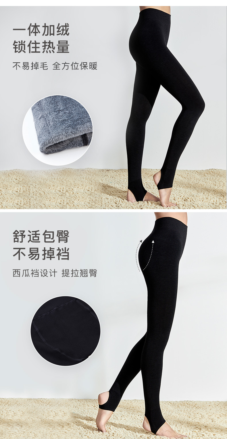 Ubras加厚款踩脚打底裤吸湿发热加绒2800D保暖裤女黑高腰裤