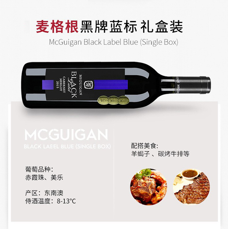 [红酒]中粮名庄荟澳大利亚麦格根黑牌干红葡萄酒13.5度750ml
