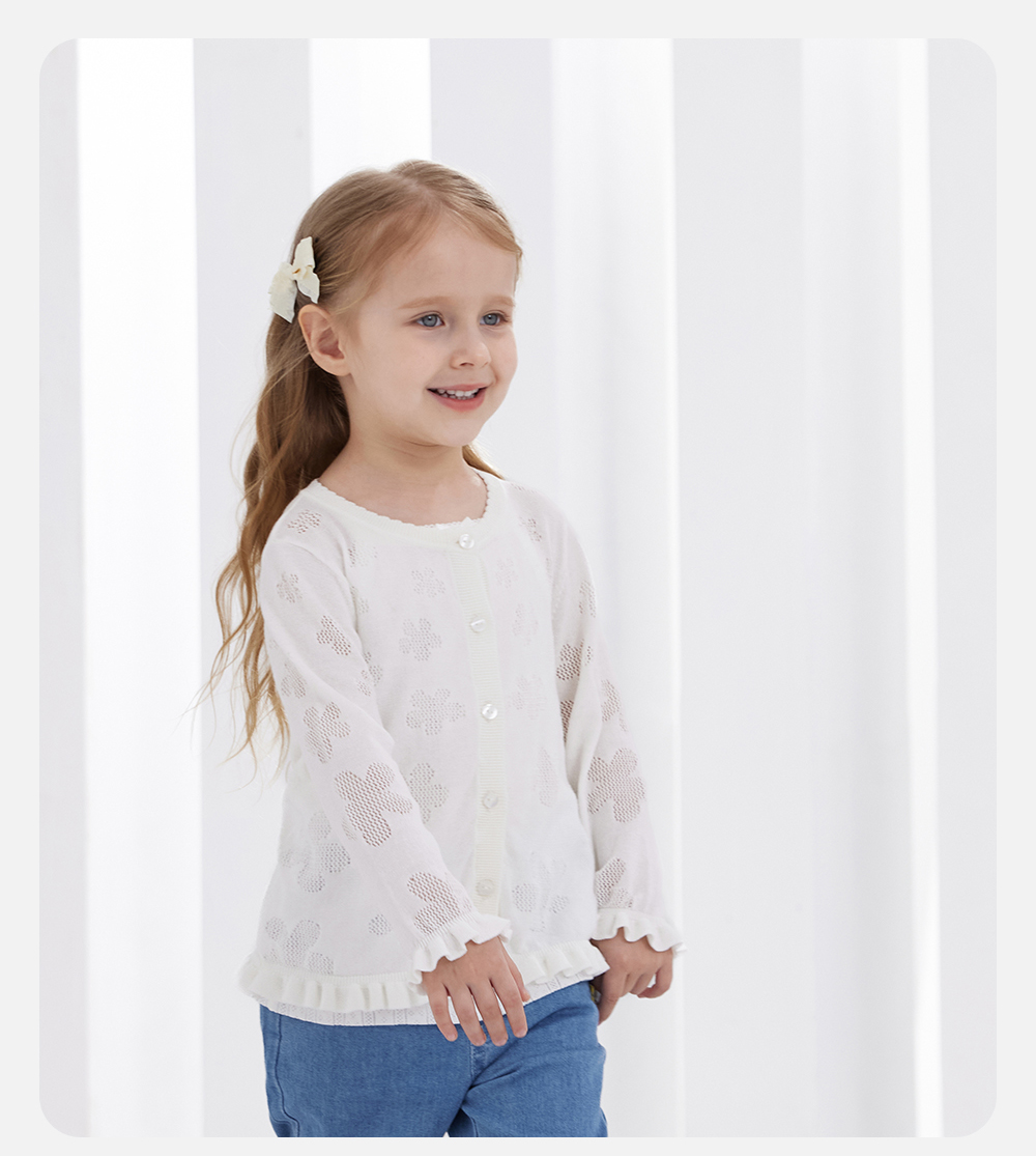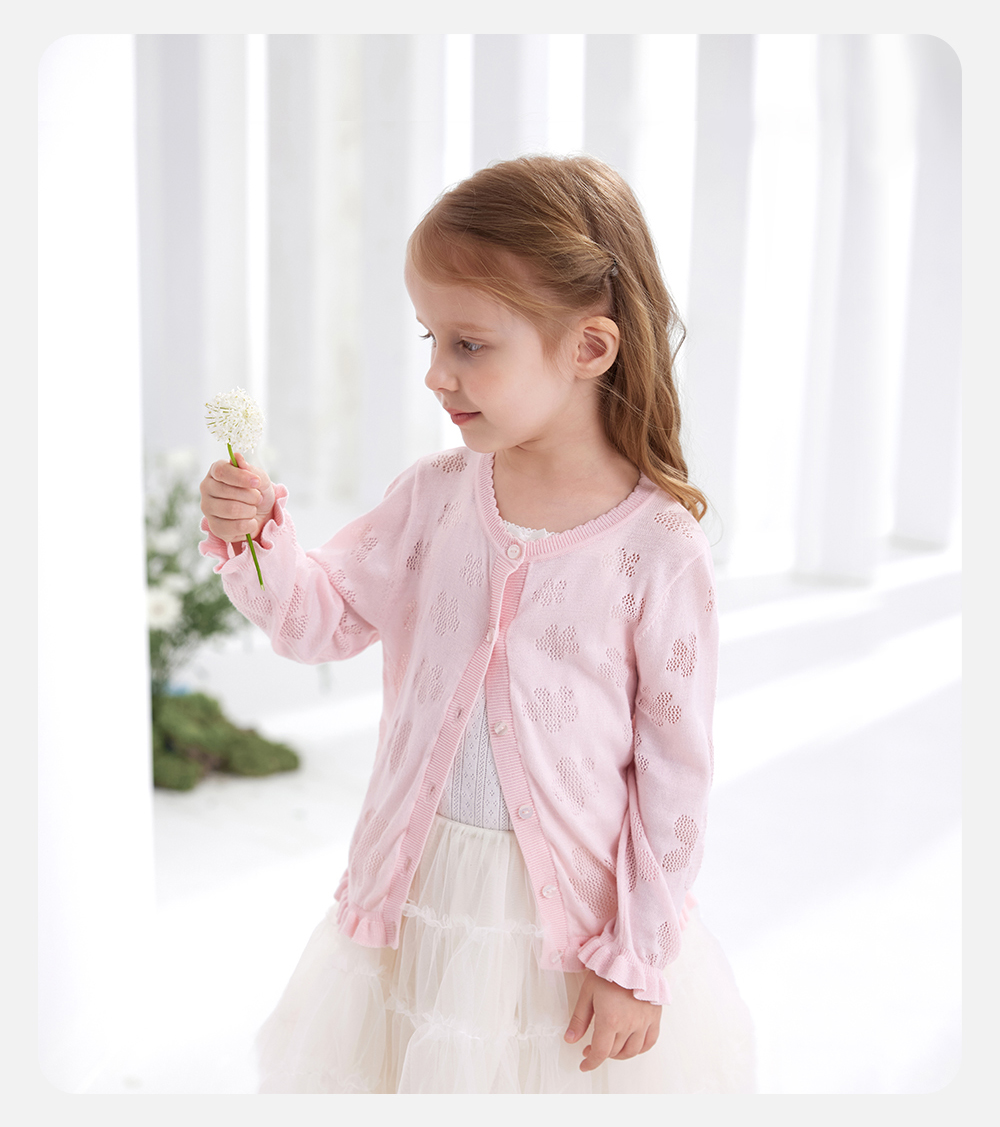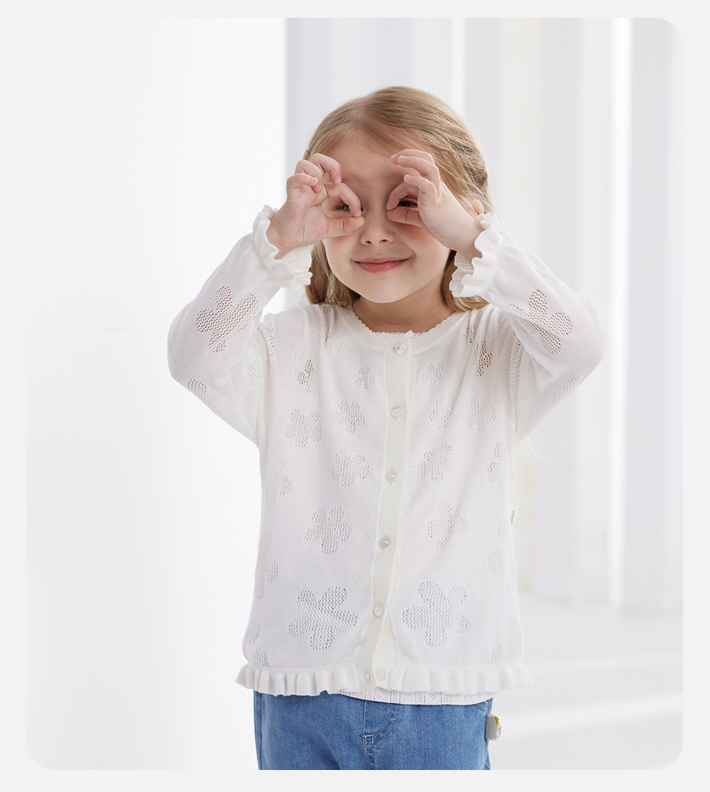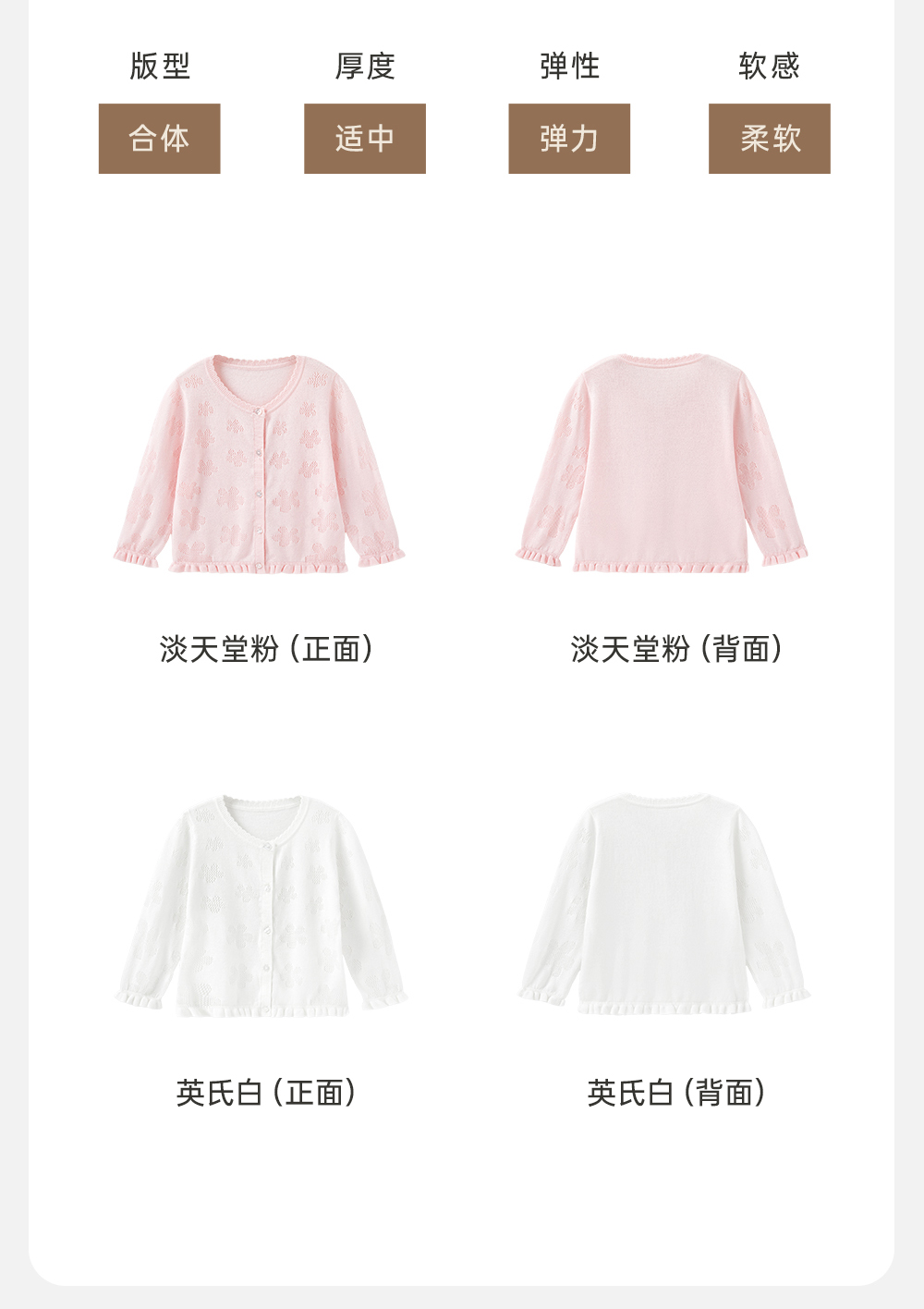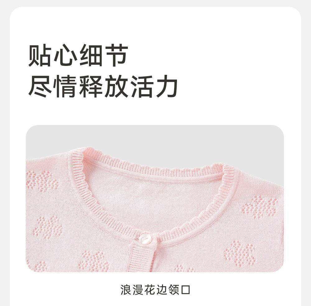 英氏儿童外套春夏轻薄开衫外套透气不闷女童针织衫新款衣服