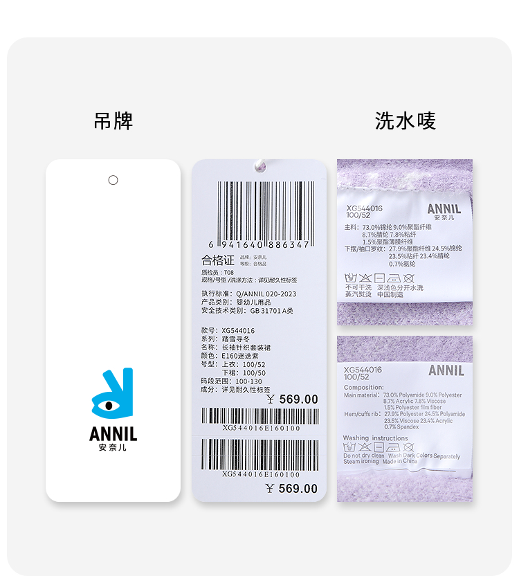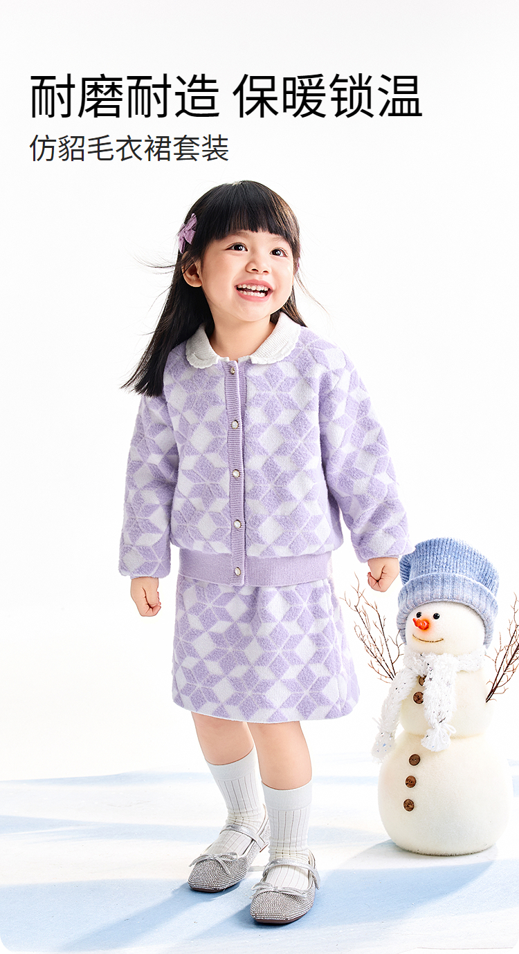 【实体店同款】女童长袖针织套装裙冬季新款安奈儿童装XG544016