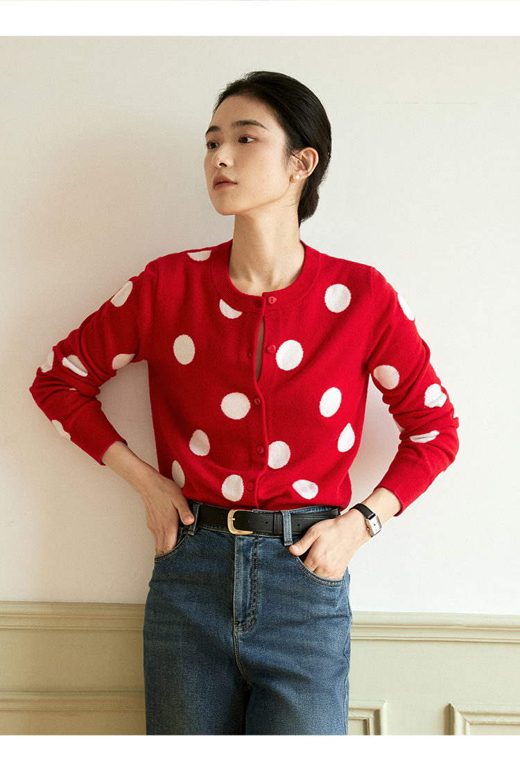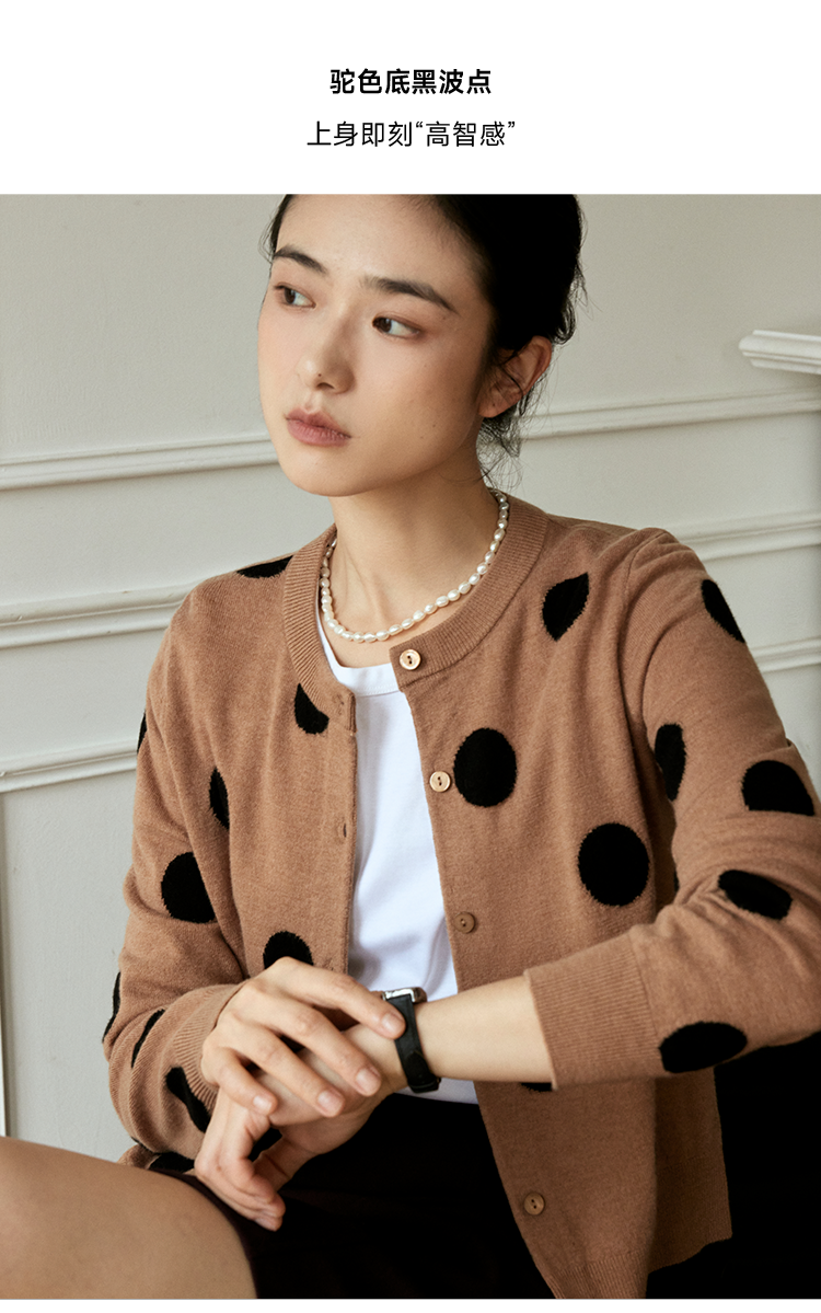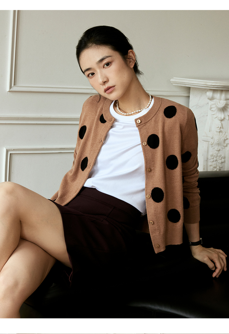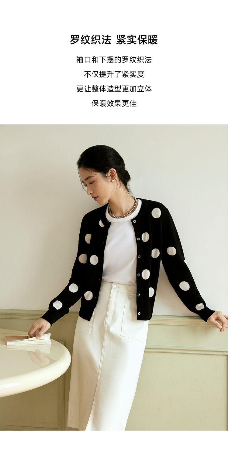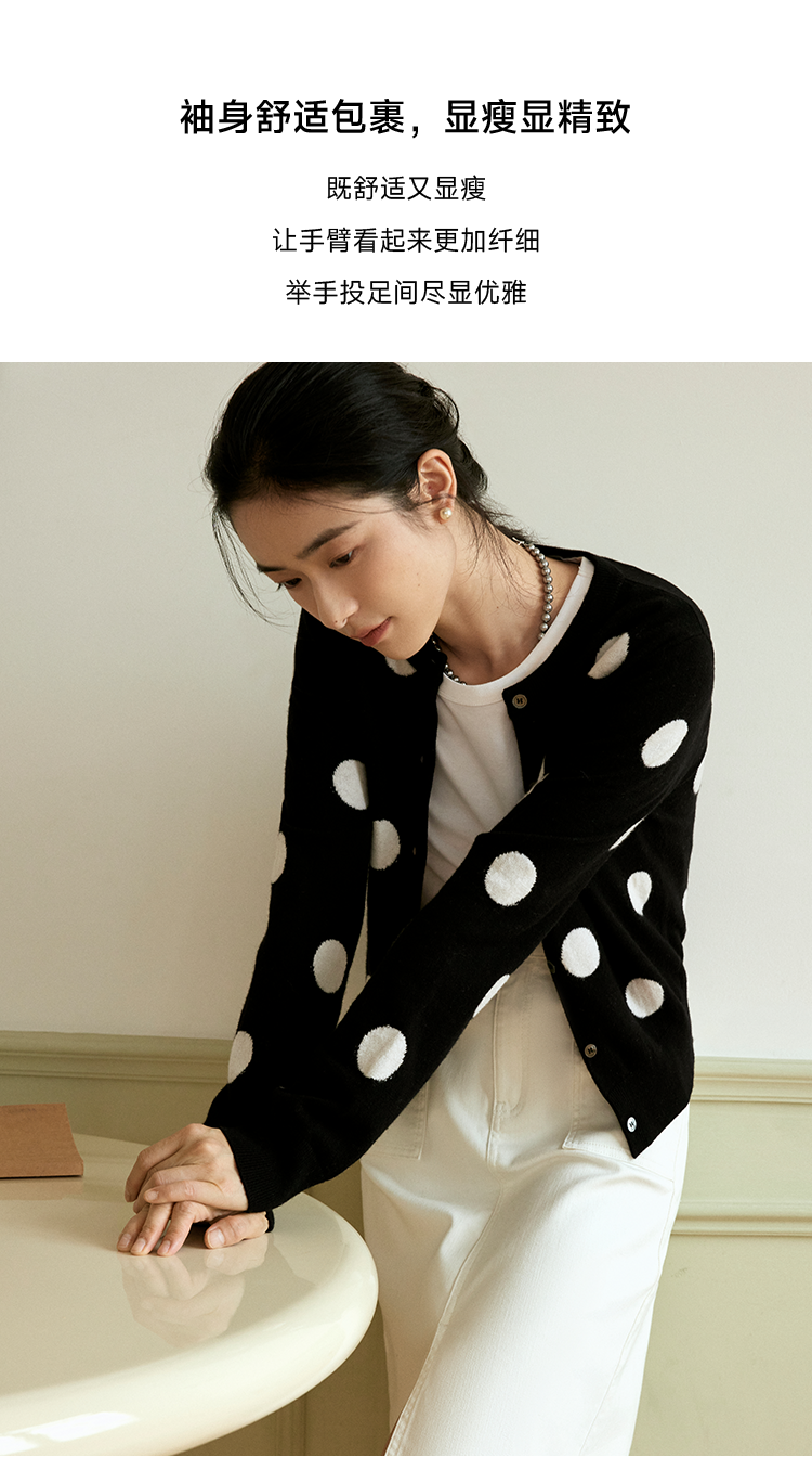小个子必入经典波点提花羊毛开衫FCE3WSC033