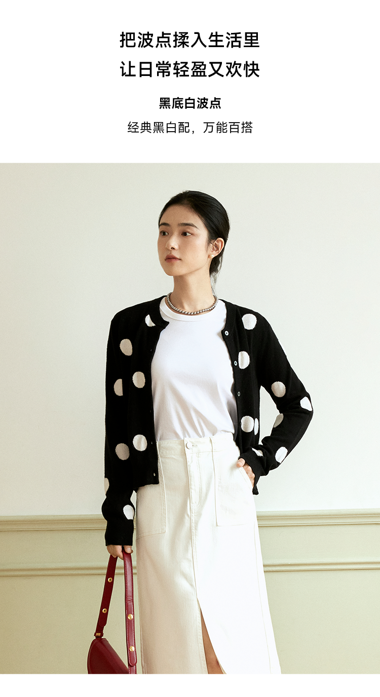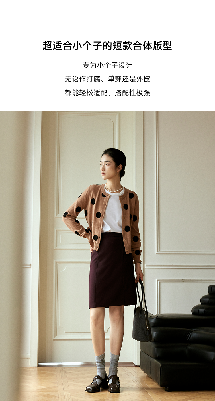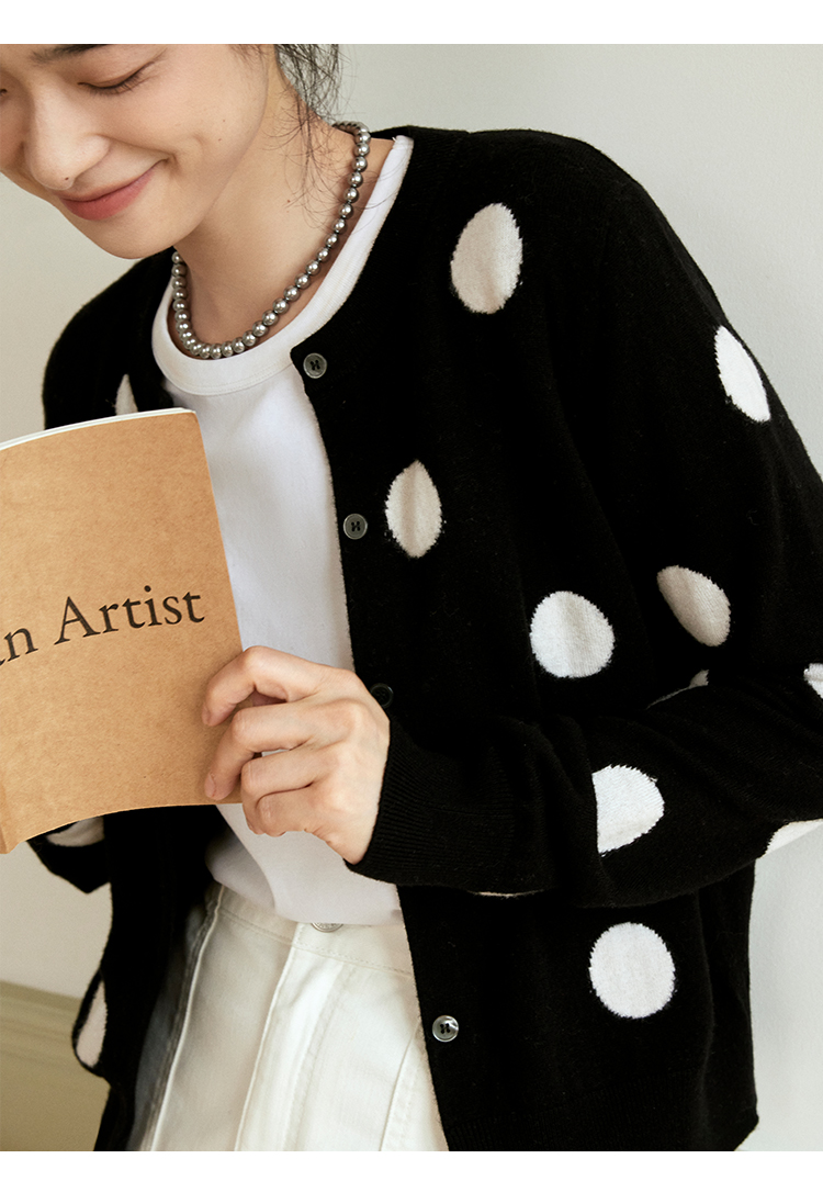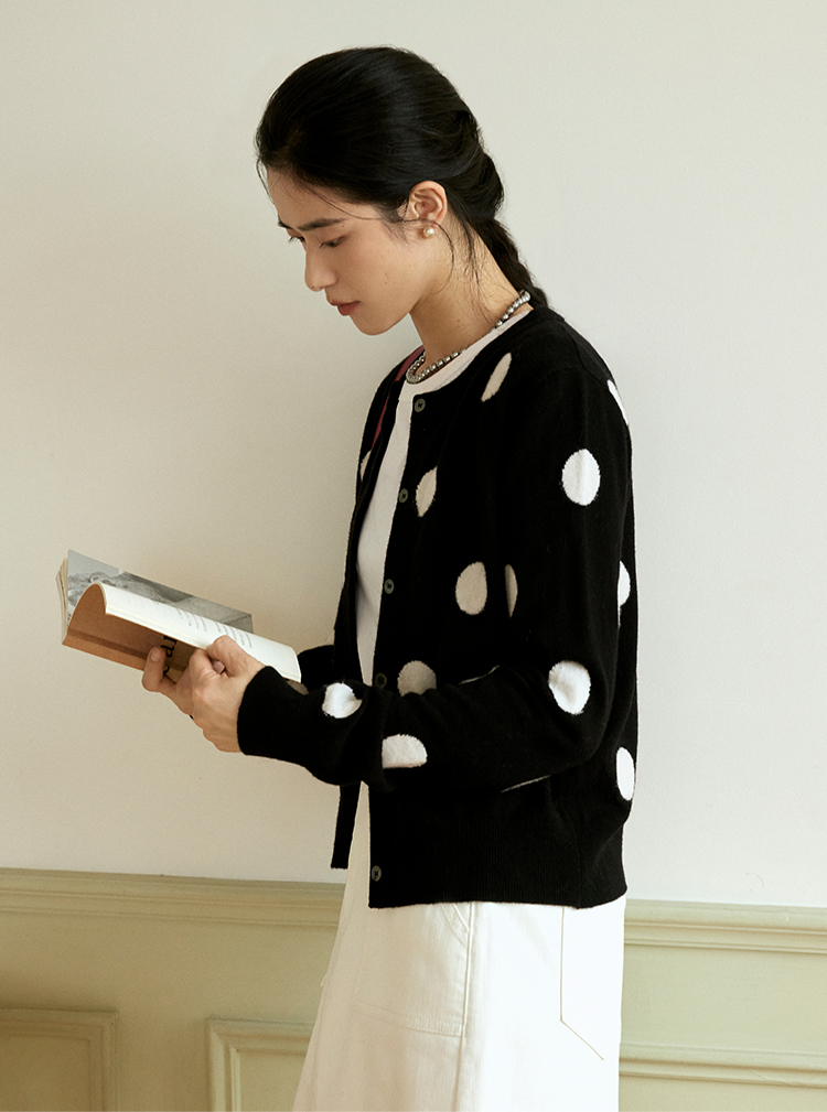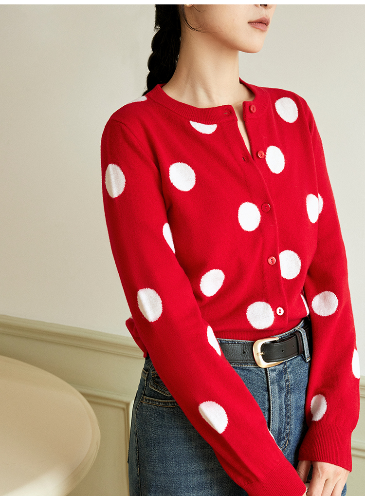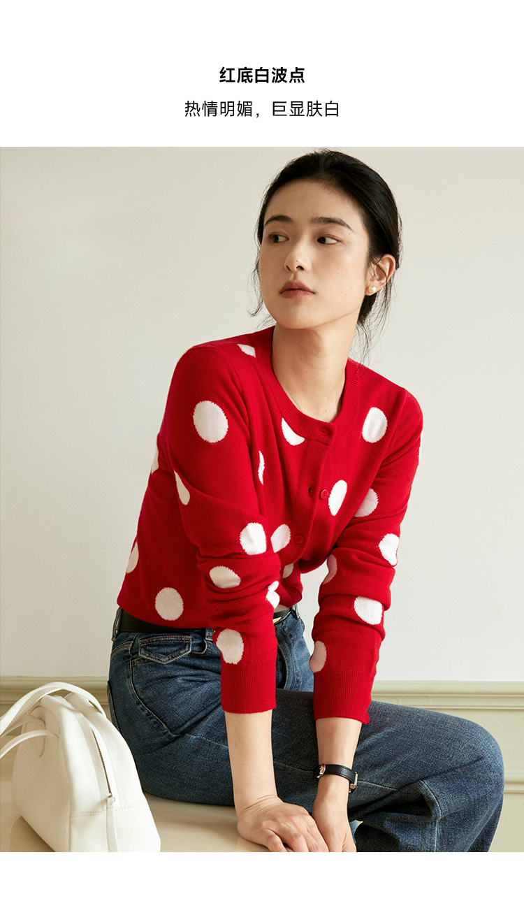 小个子必入经典波点提花羊毛开衫FCE3WSC033