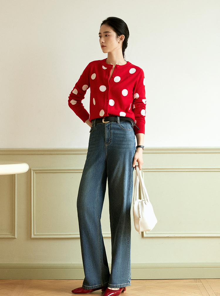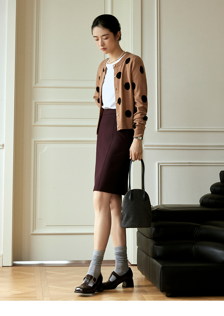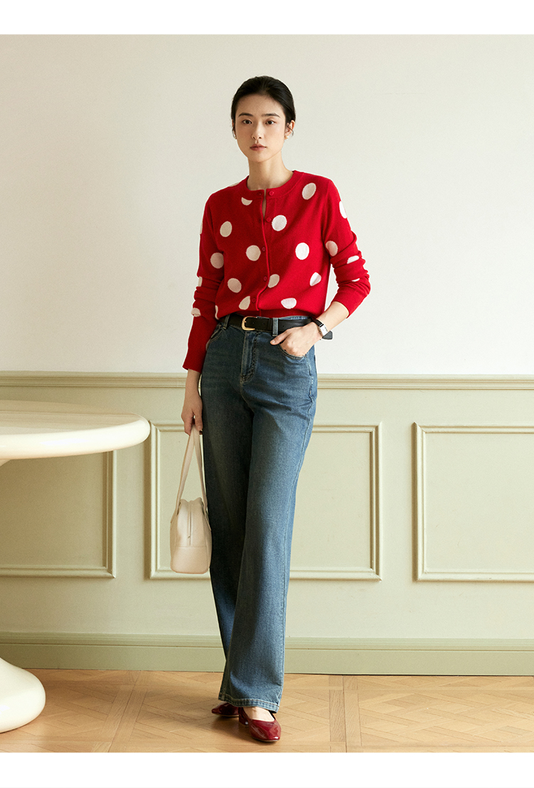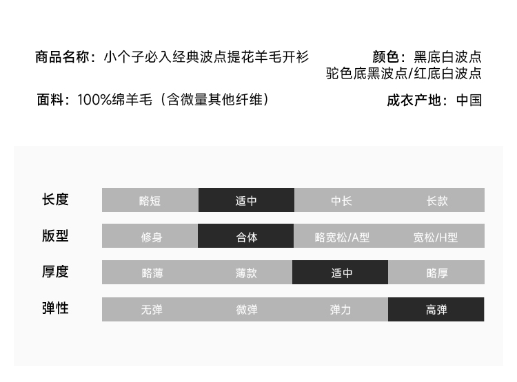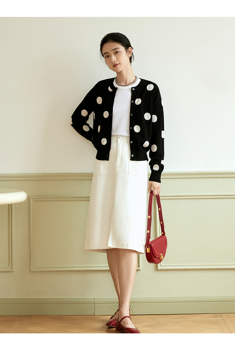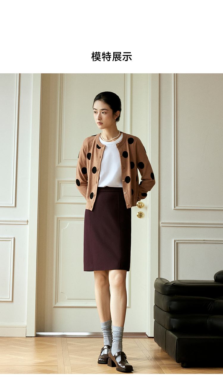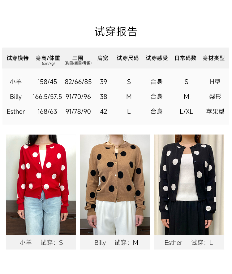 小个子必入经典波点提花羊毛开衫FCE3WSC033