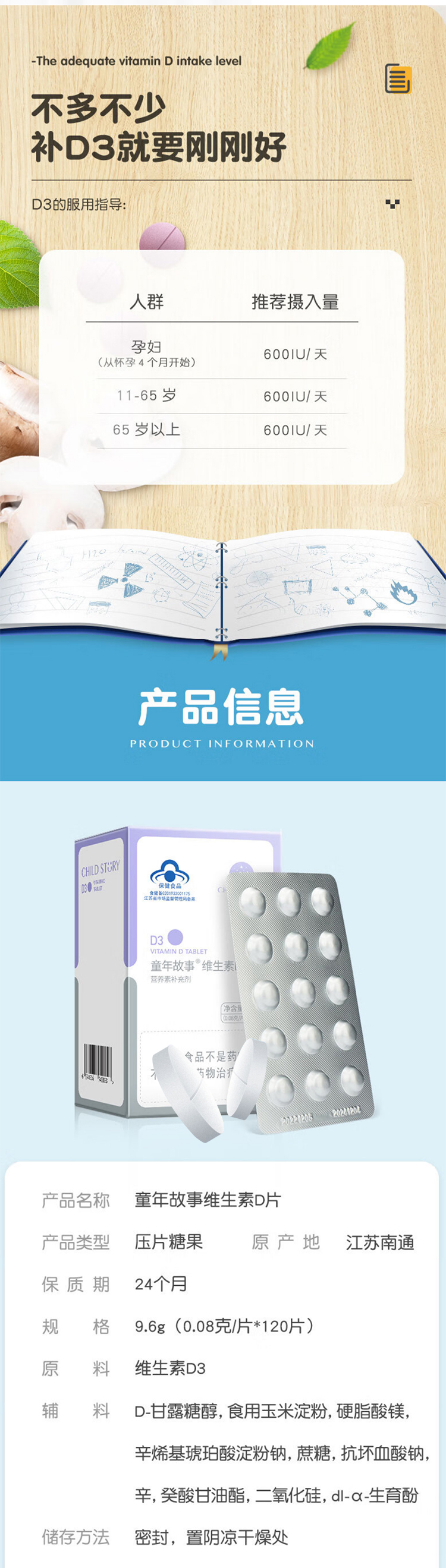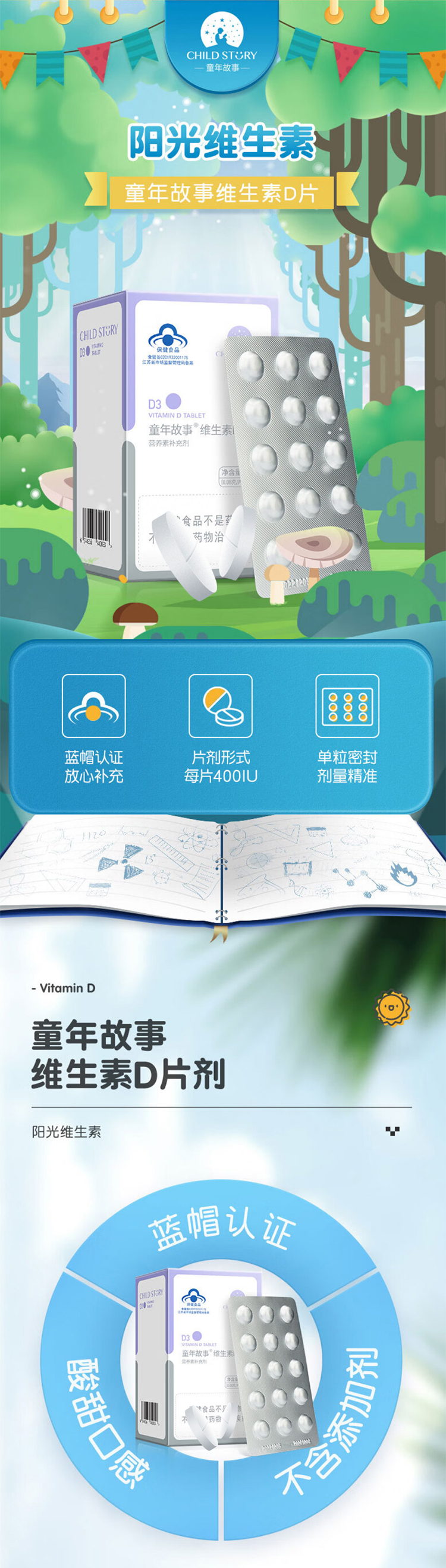 童年故事牌蘑菇粉复合压片糖果VD3咀嚼片120片