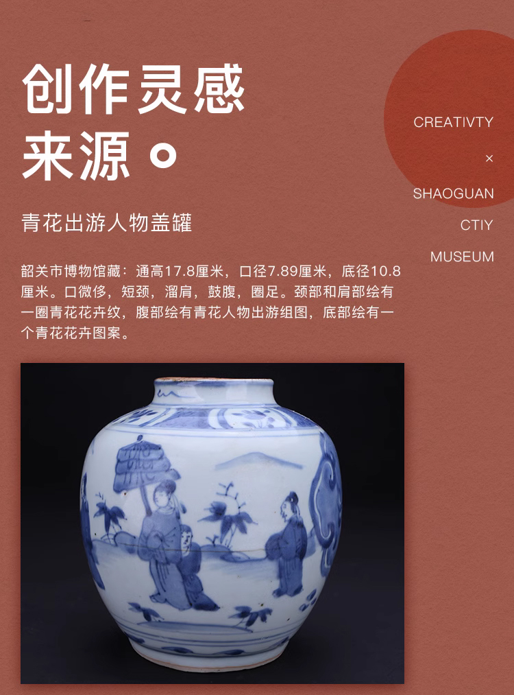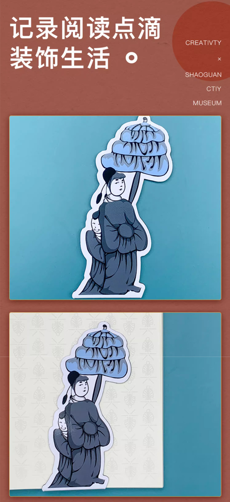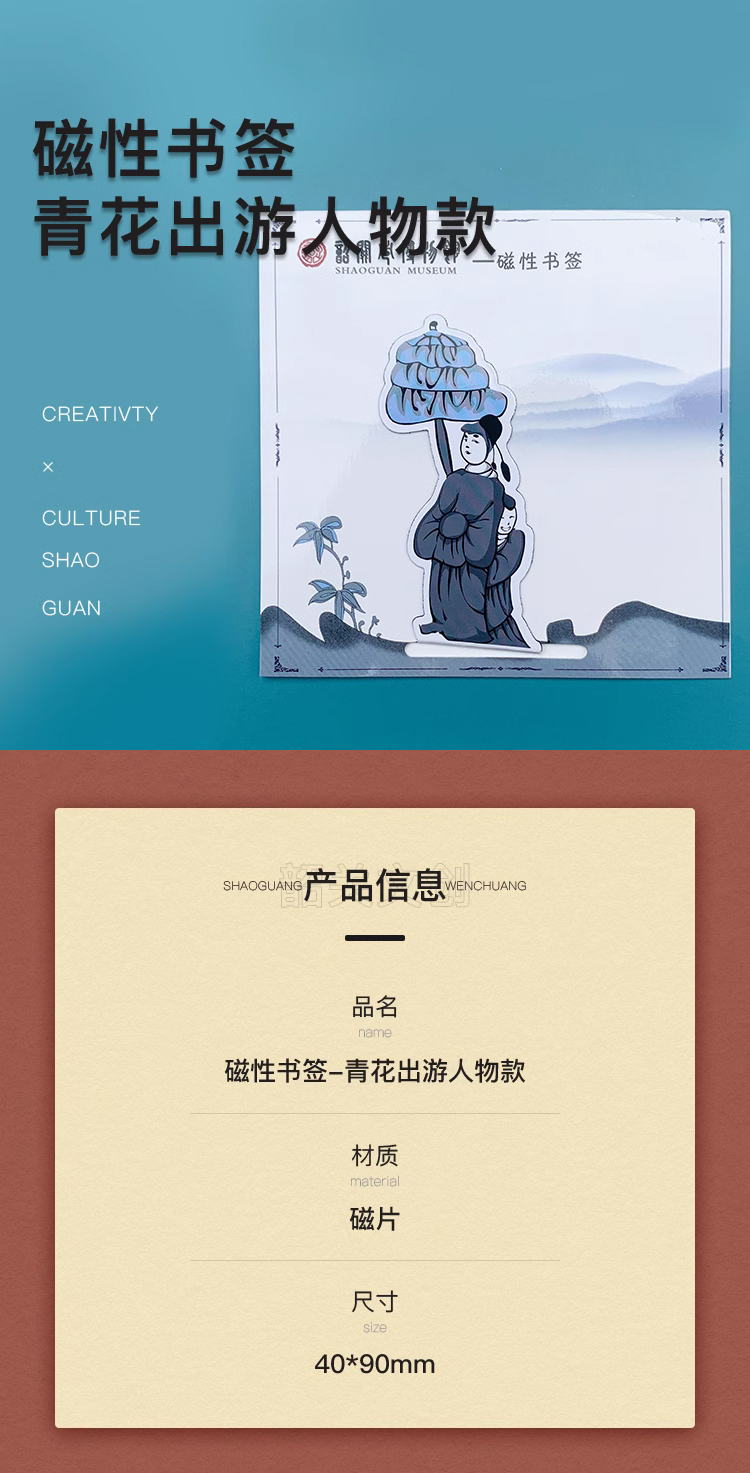 【韶关市博物馆文创】韶关博物馆文创青花出游人物双面款磁性书签吸磁清新卡通精美书签