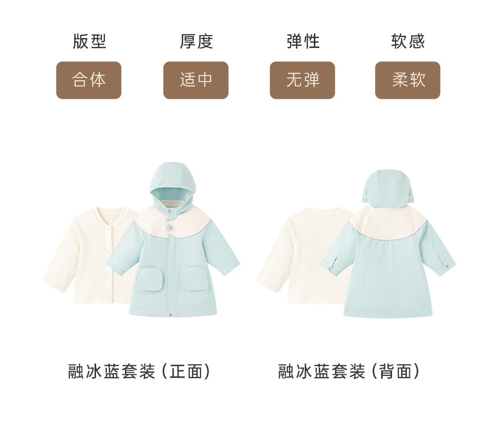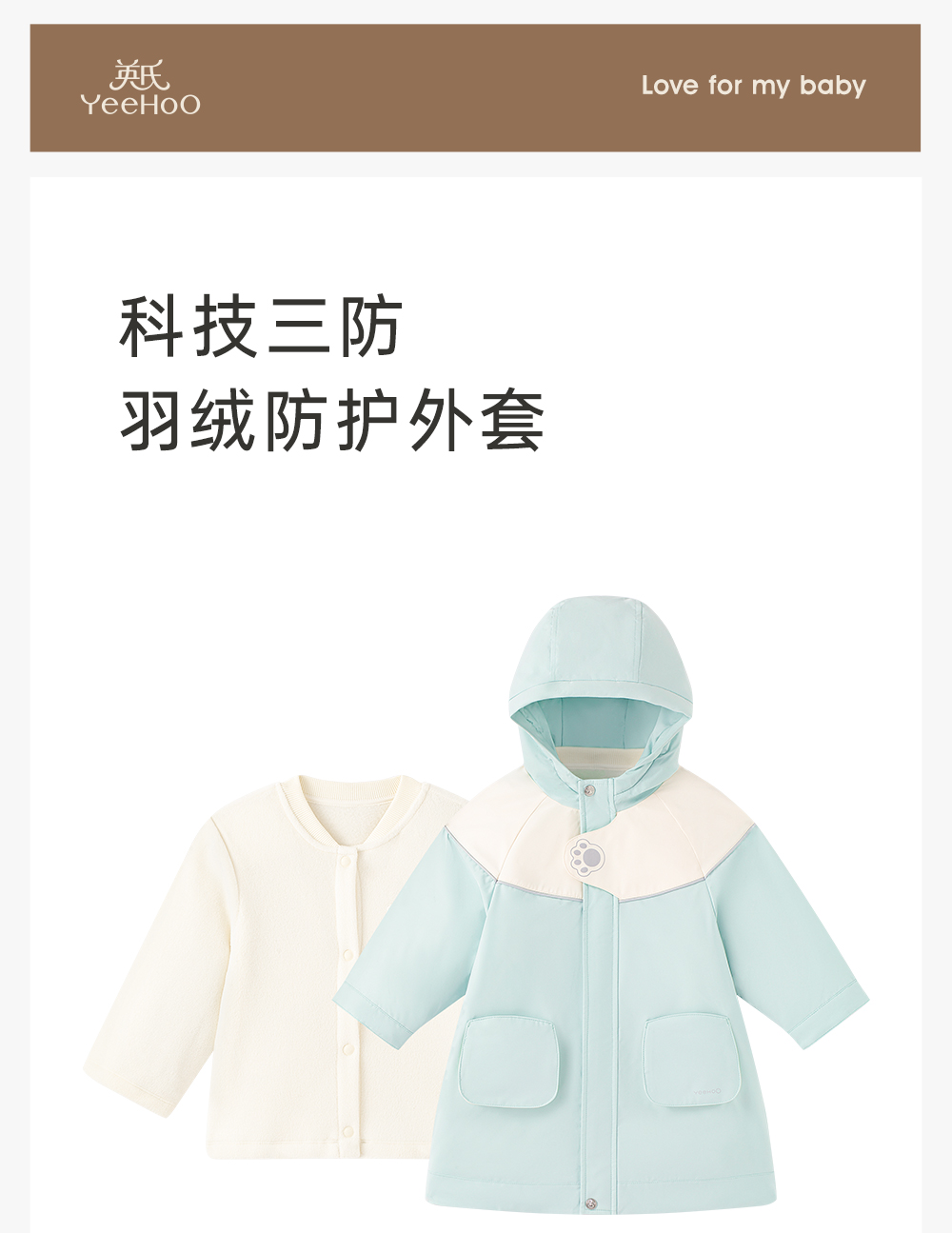 【商场同款】英氏儿童羽绒服三防风衣外套秋冬外出新二合一套装超韧绒