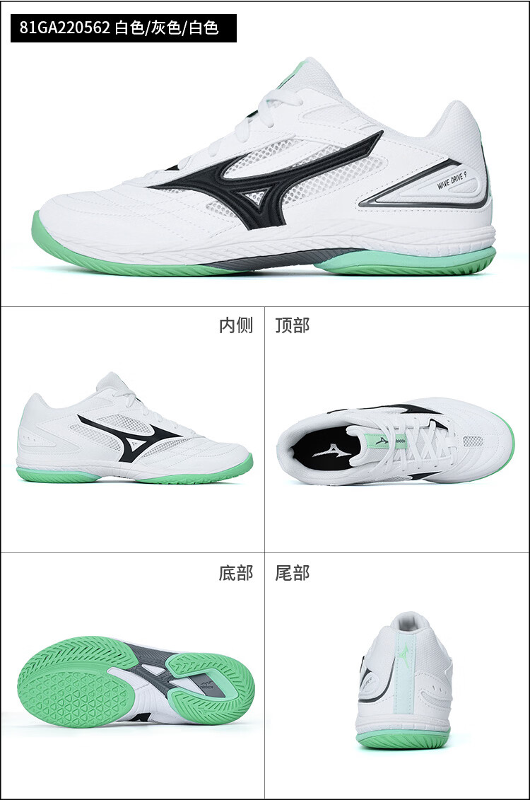 Mizuno美津浓乒乓球鞋81GA220562美津浓9代专业乒乓球运动鞋 白/青绿色
