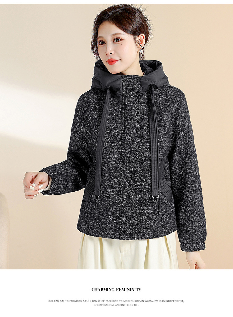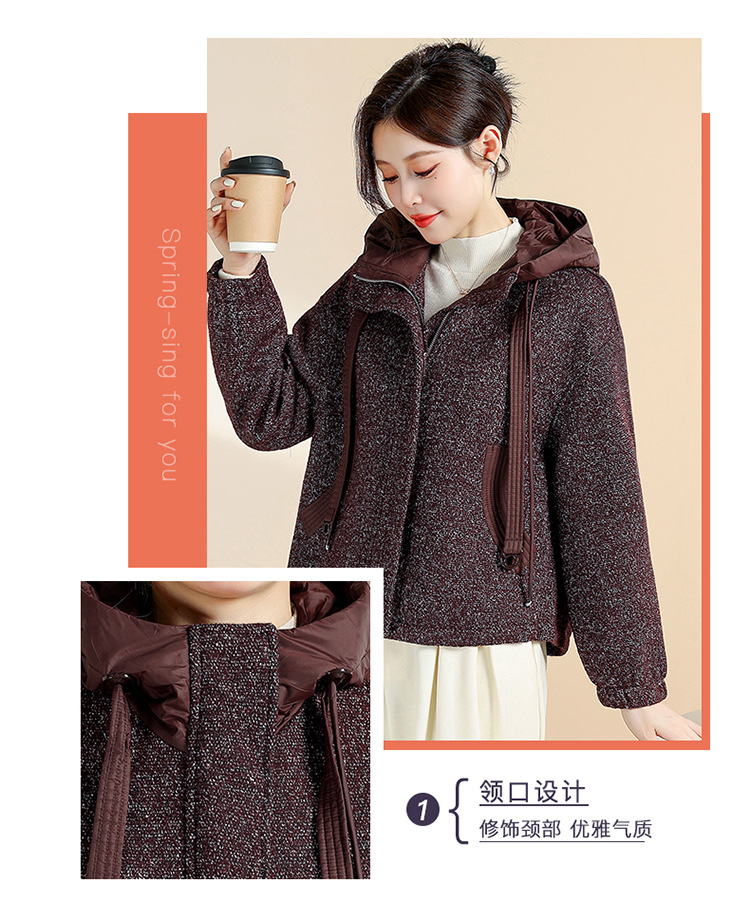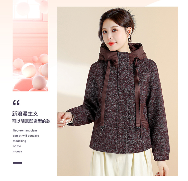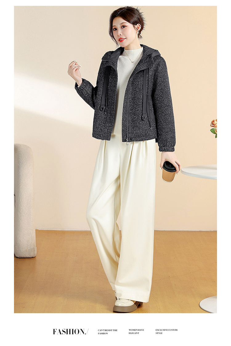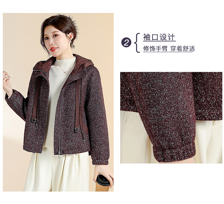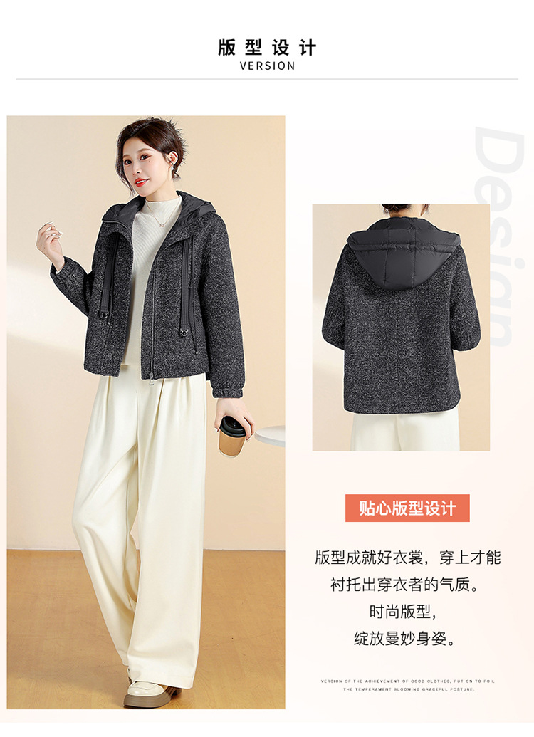 QYM CS25D76-Y时尚连帽毛呢外套呢子休闲上衣
