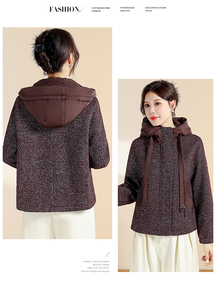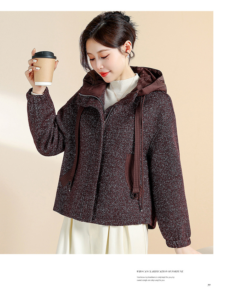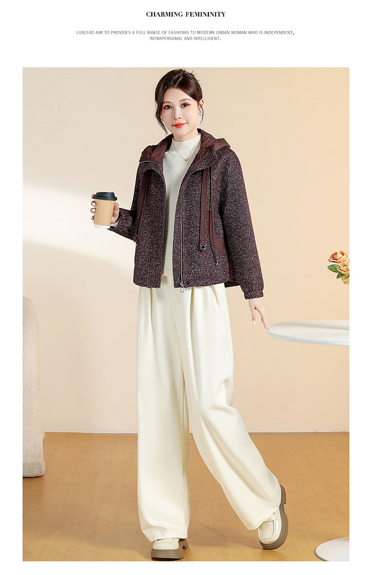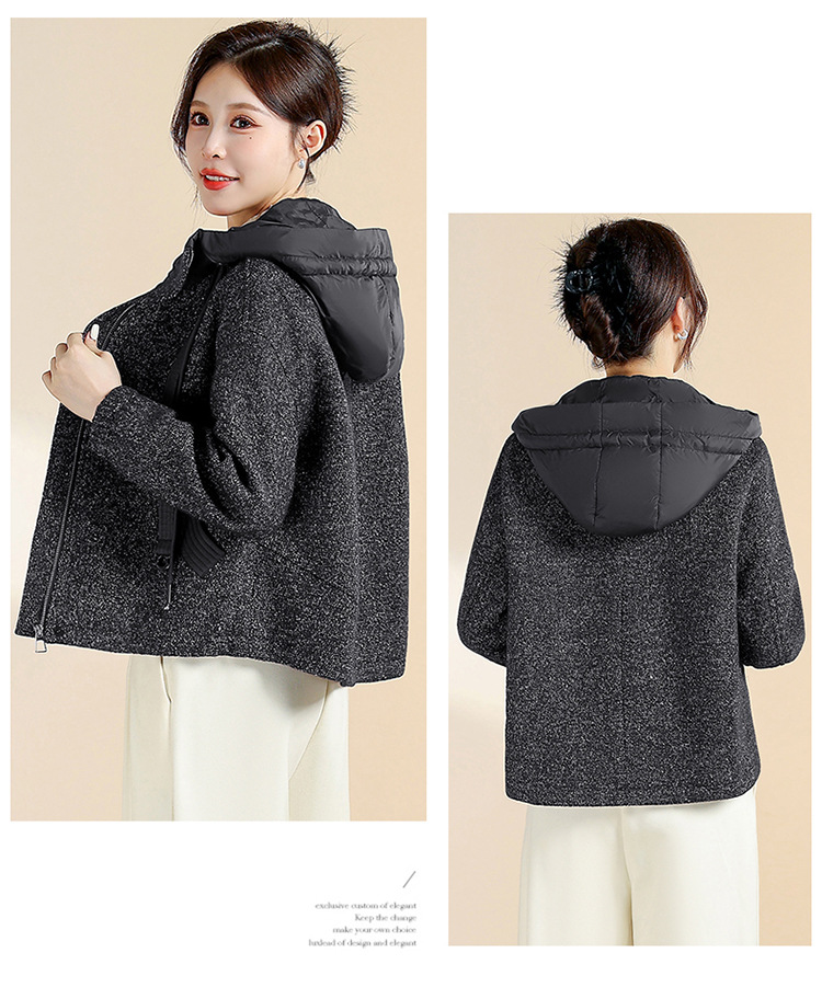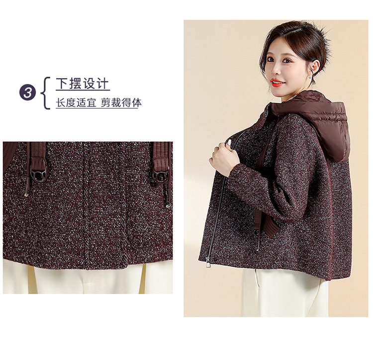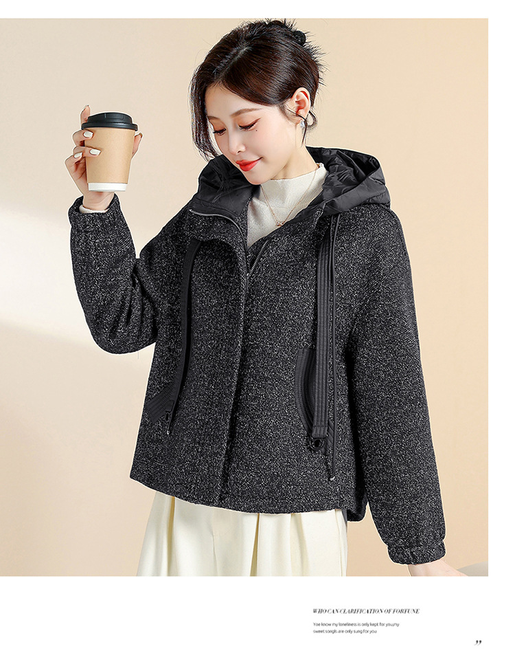 QYM CS25D76-Y时尚连帽毛呢外套呢子休闲上衣